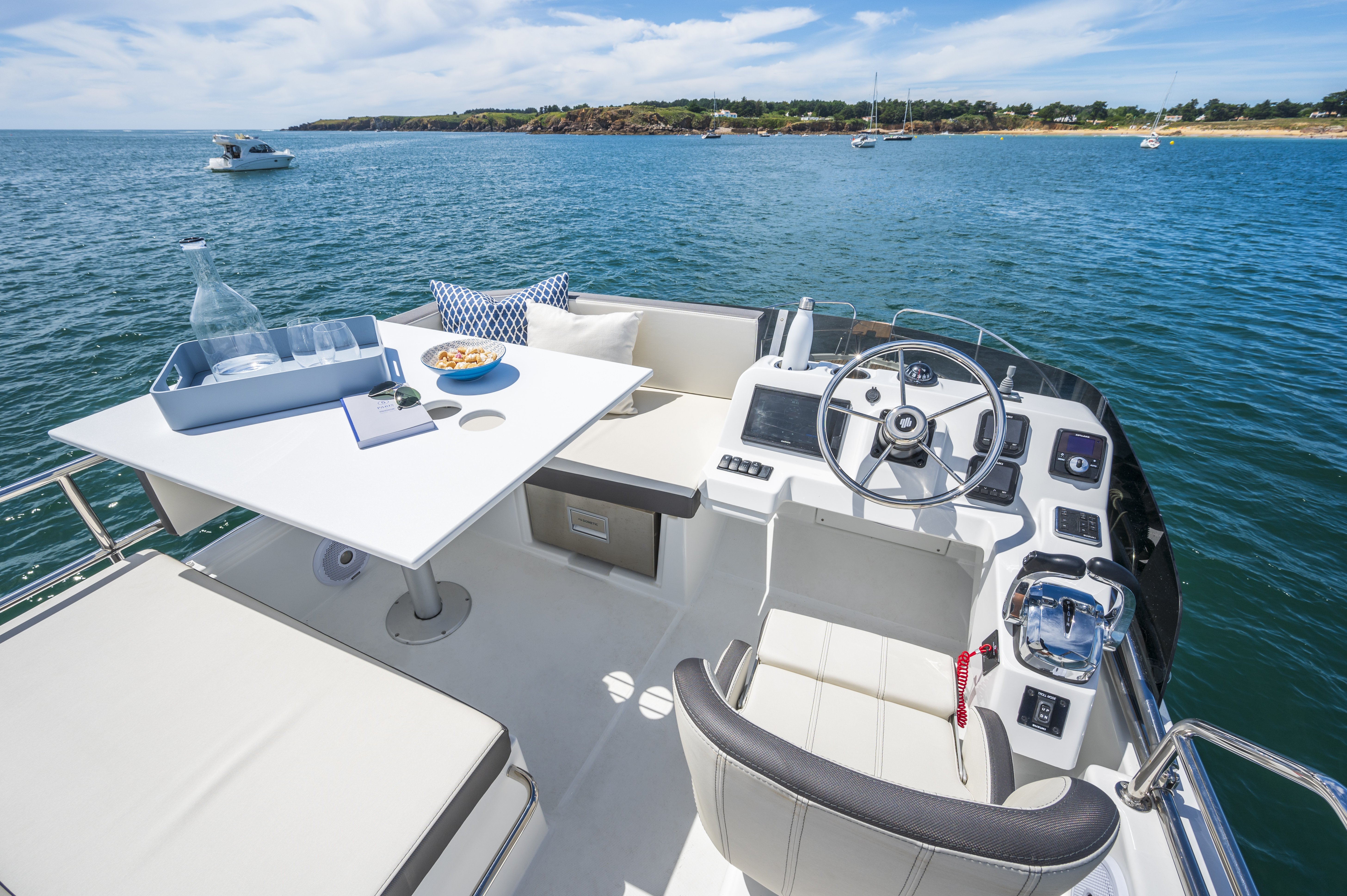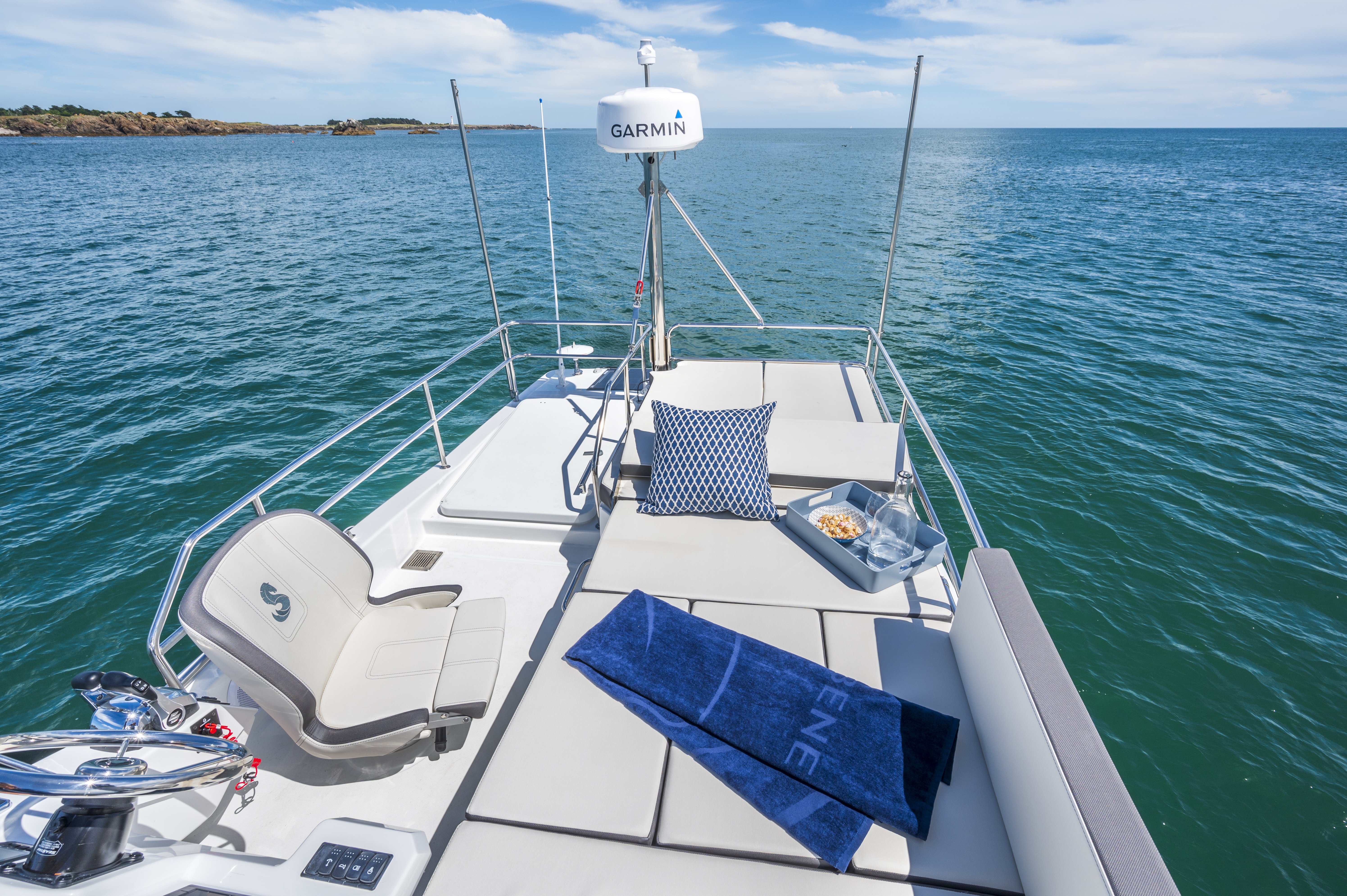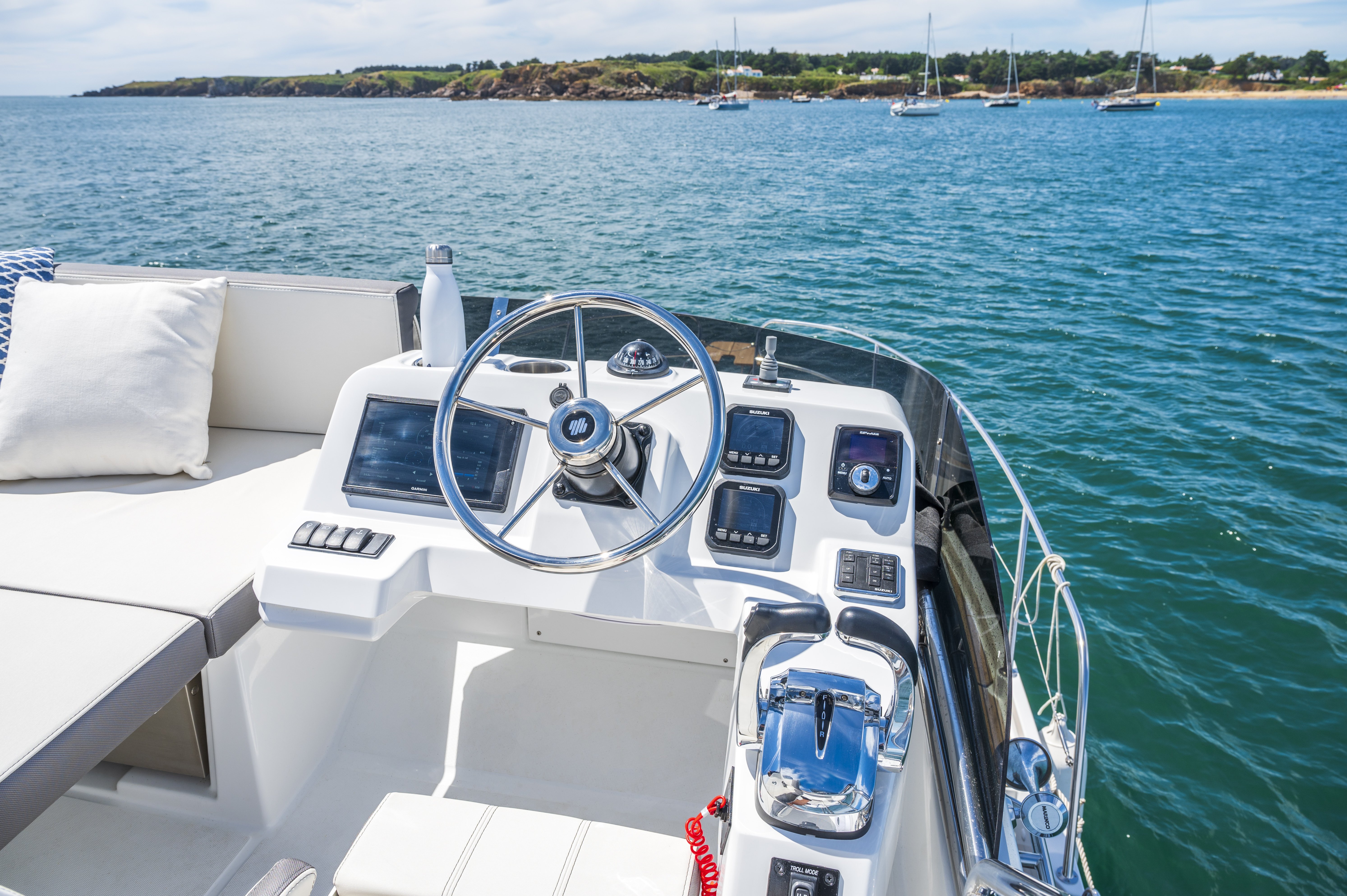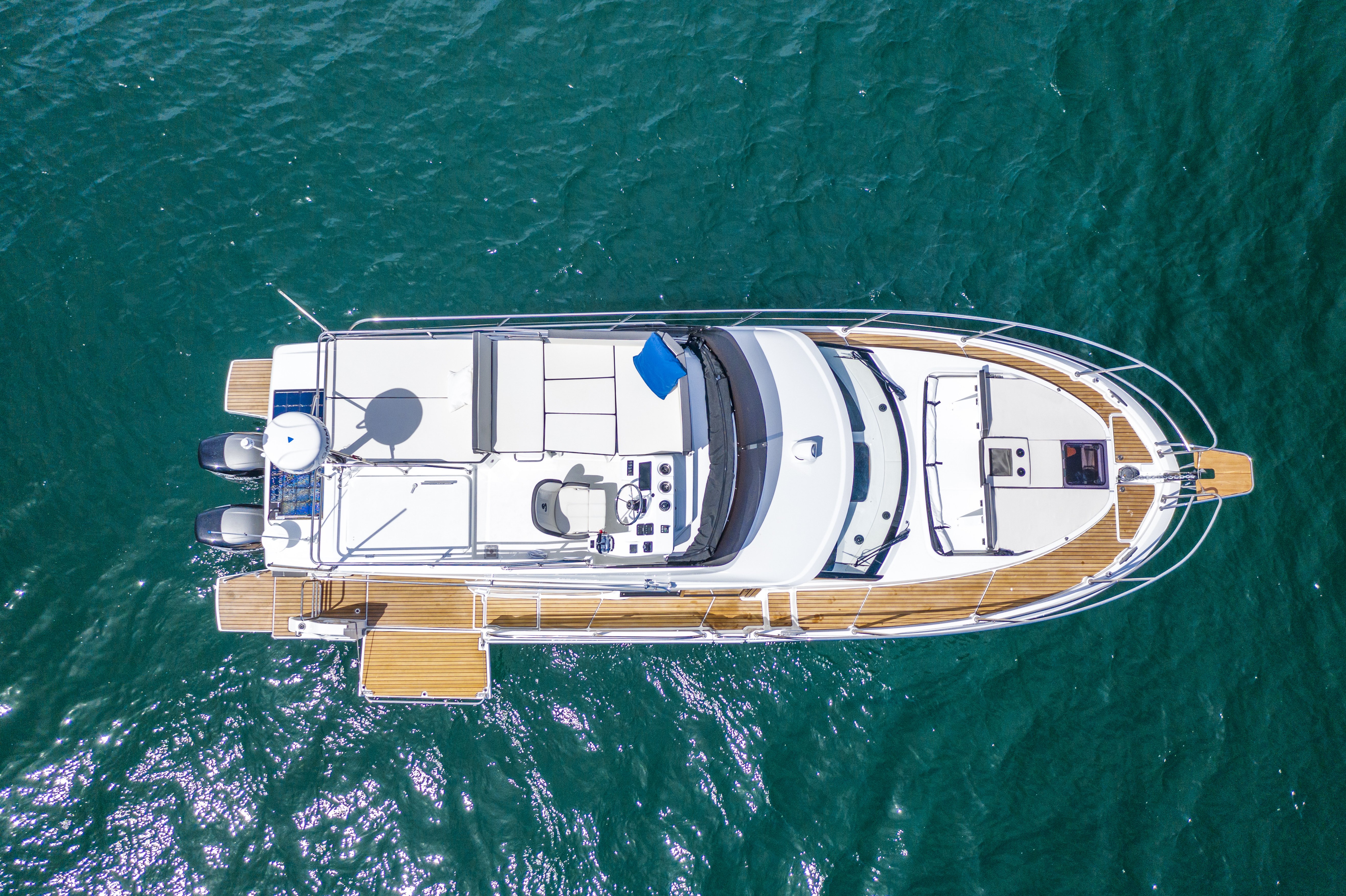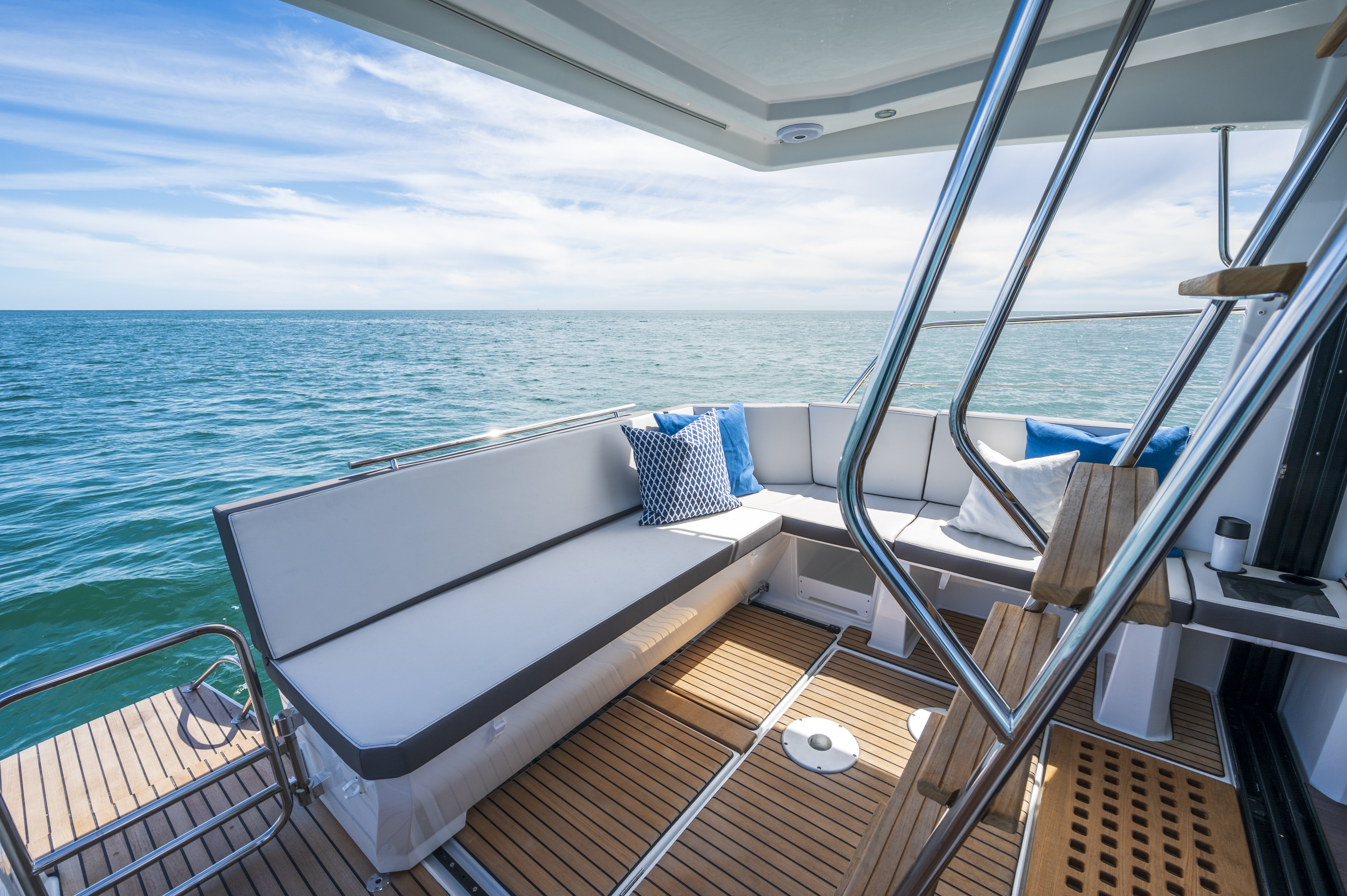 • Flybridge with helm station, seating, sundeck and optional fridge/bimini — ideal for outdoor living.