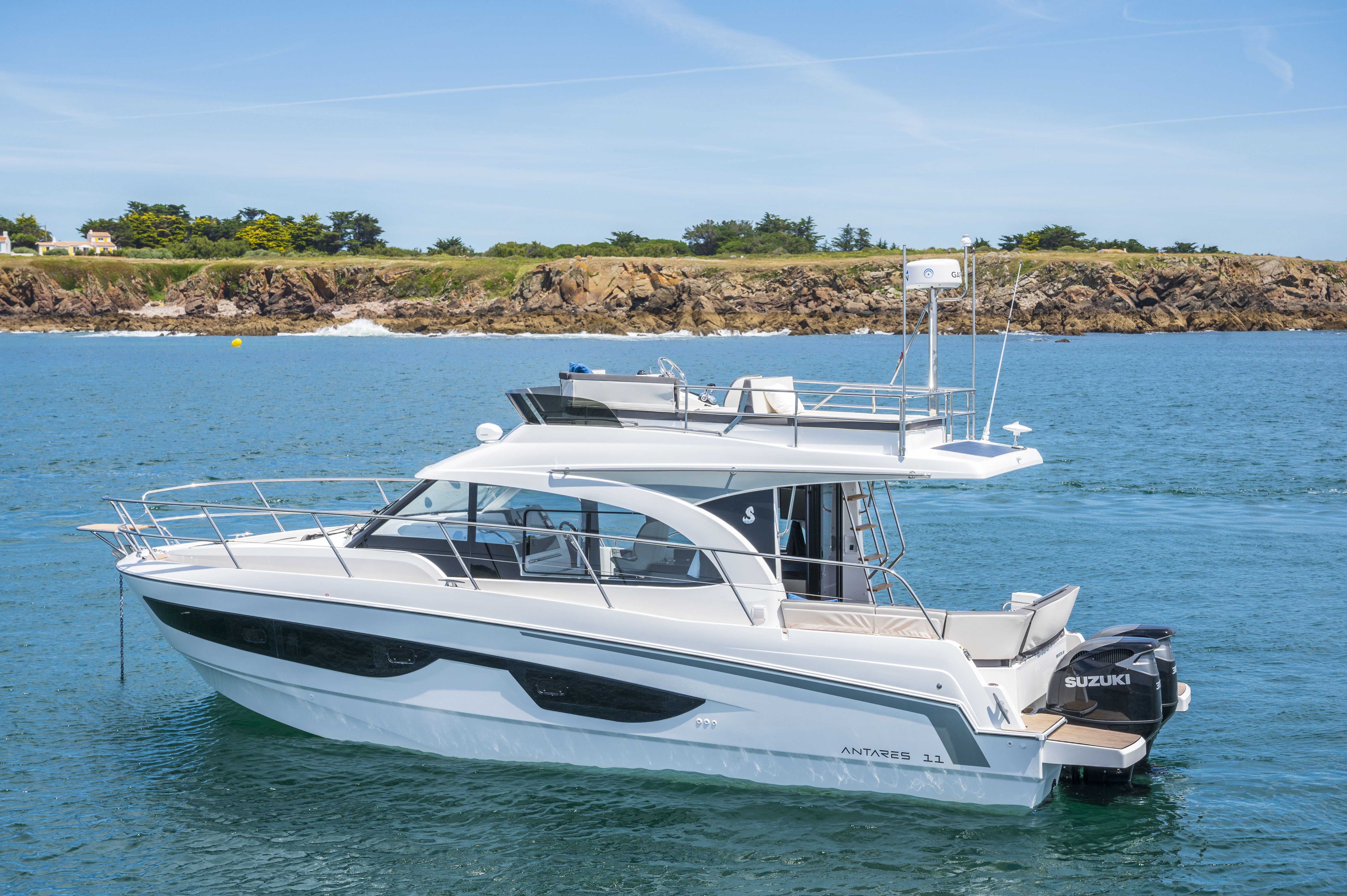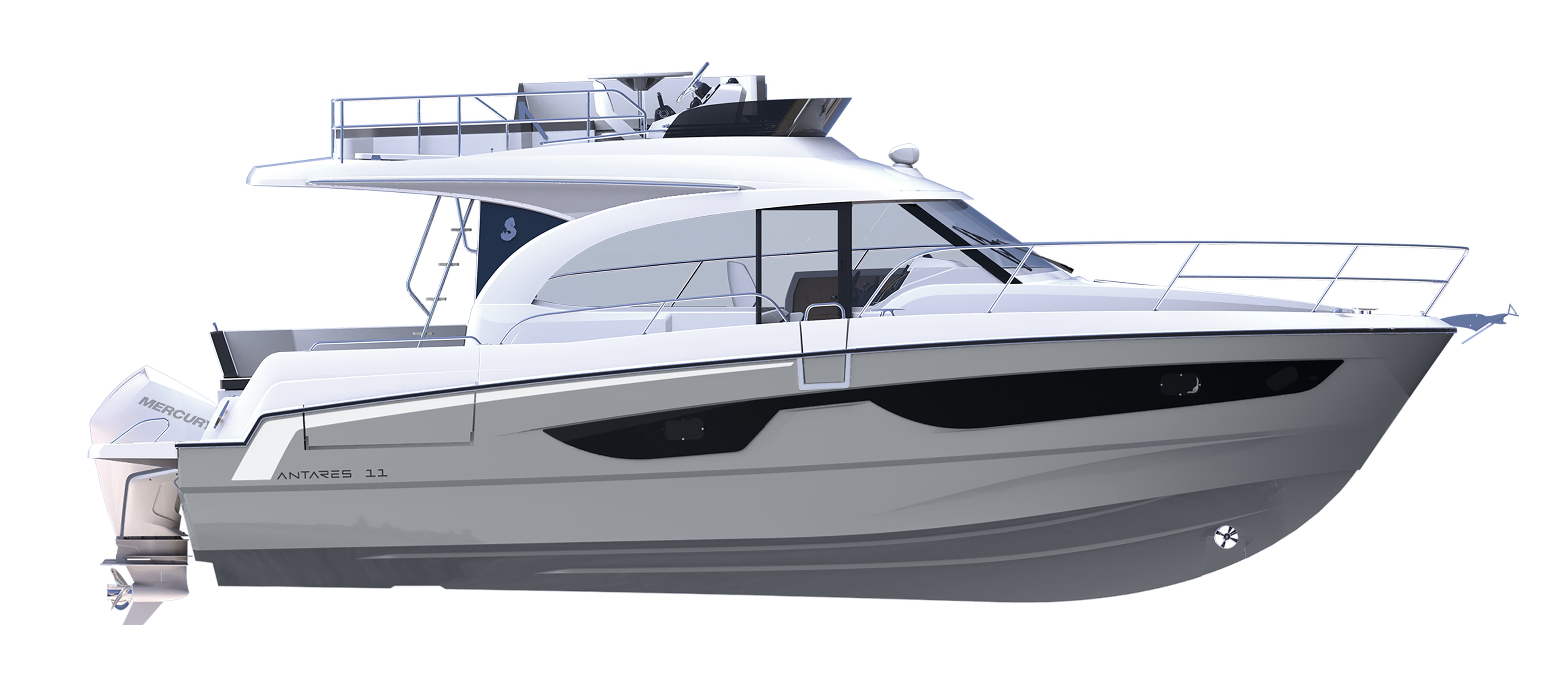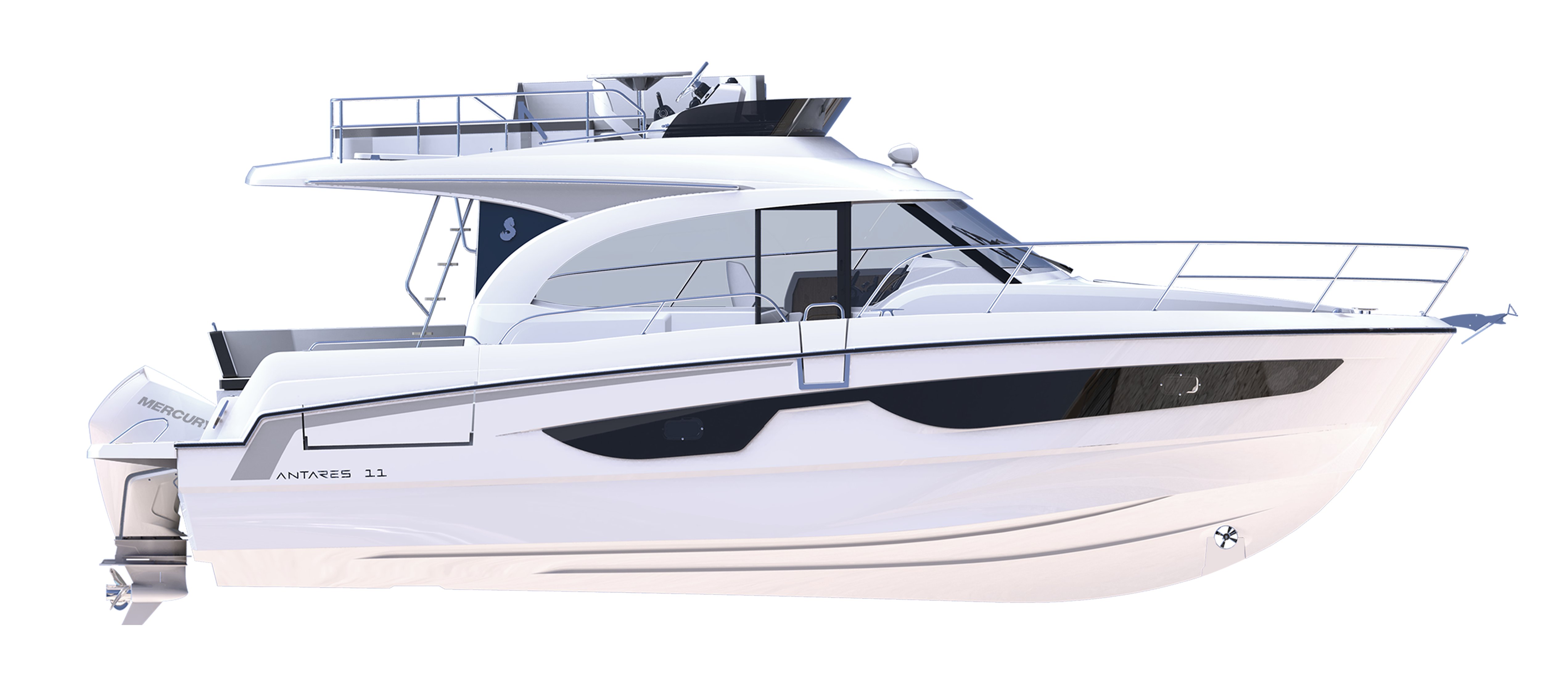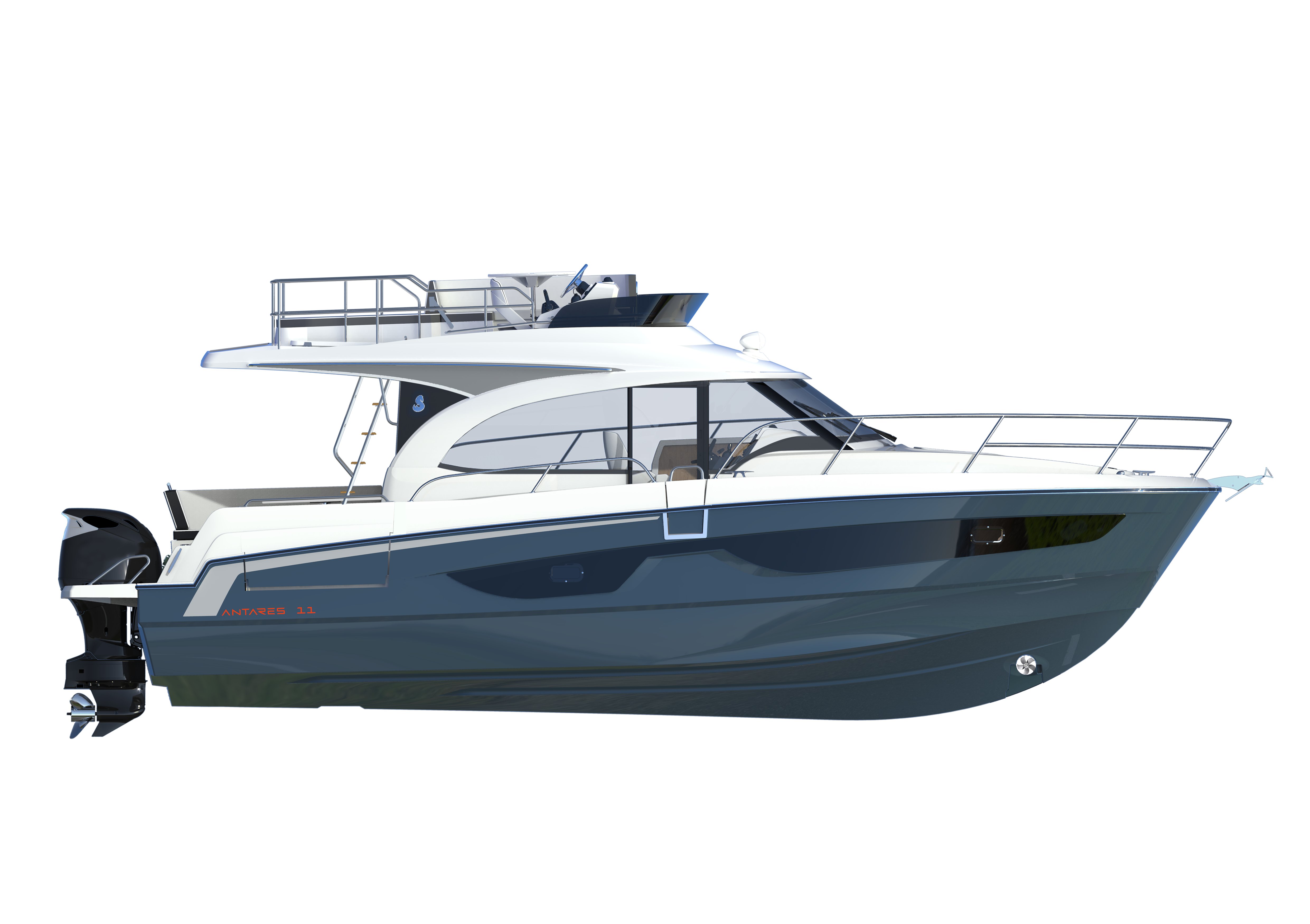 The Beneteau Antares 11 Fly is the flagship of the Antares outboard line — a contemporary 36-plus-foot flybridge cruiser that redefines comfort, style and versatility in its class. Designed for extended weekends, family cruising and coastal adventures, this boat pairs generous living spaces with refined performance and thoughtful ergonomic design.