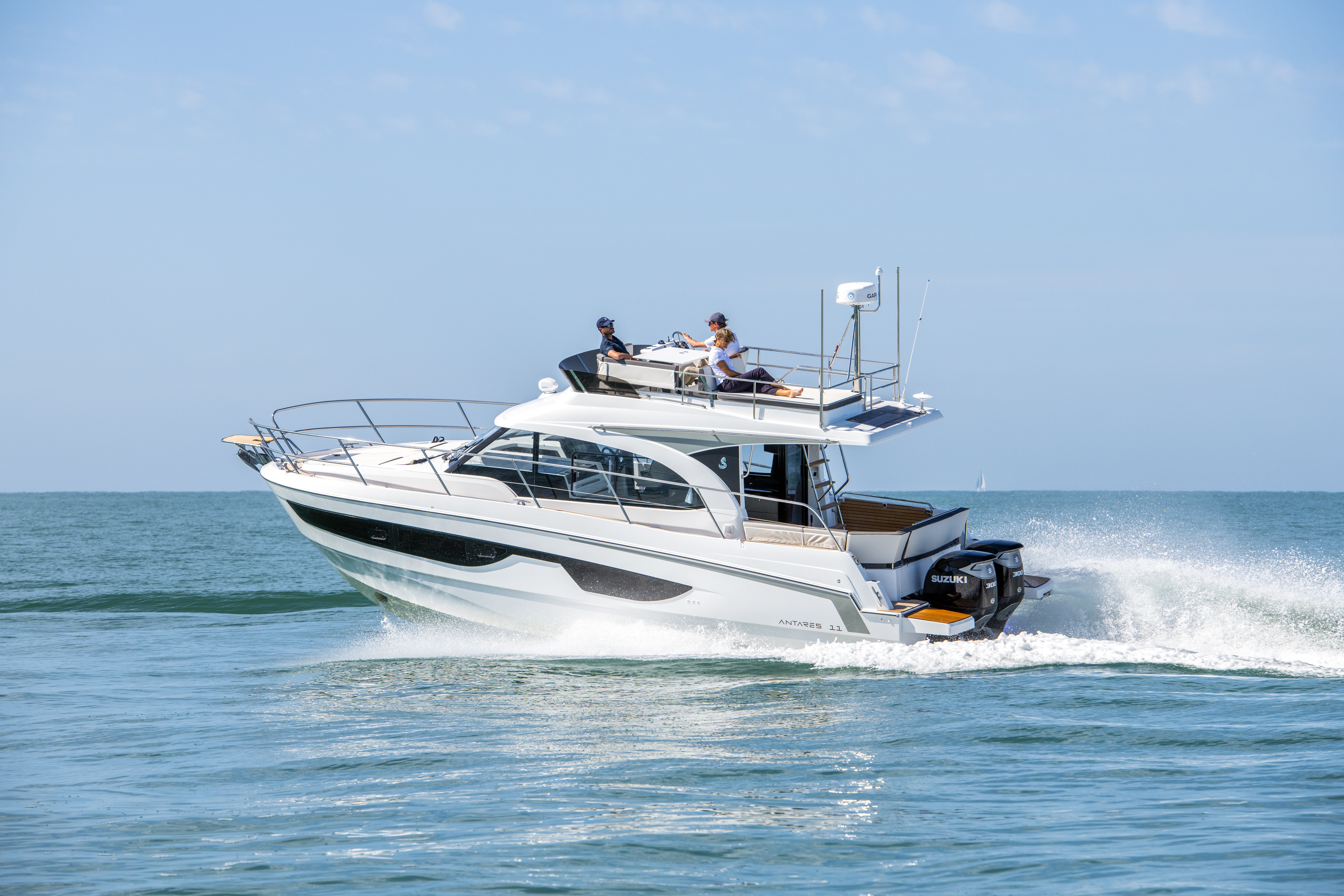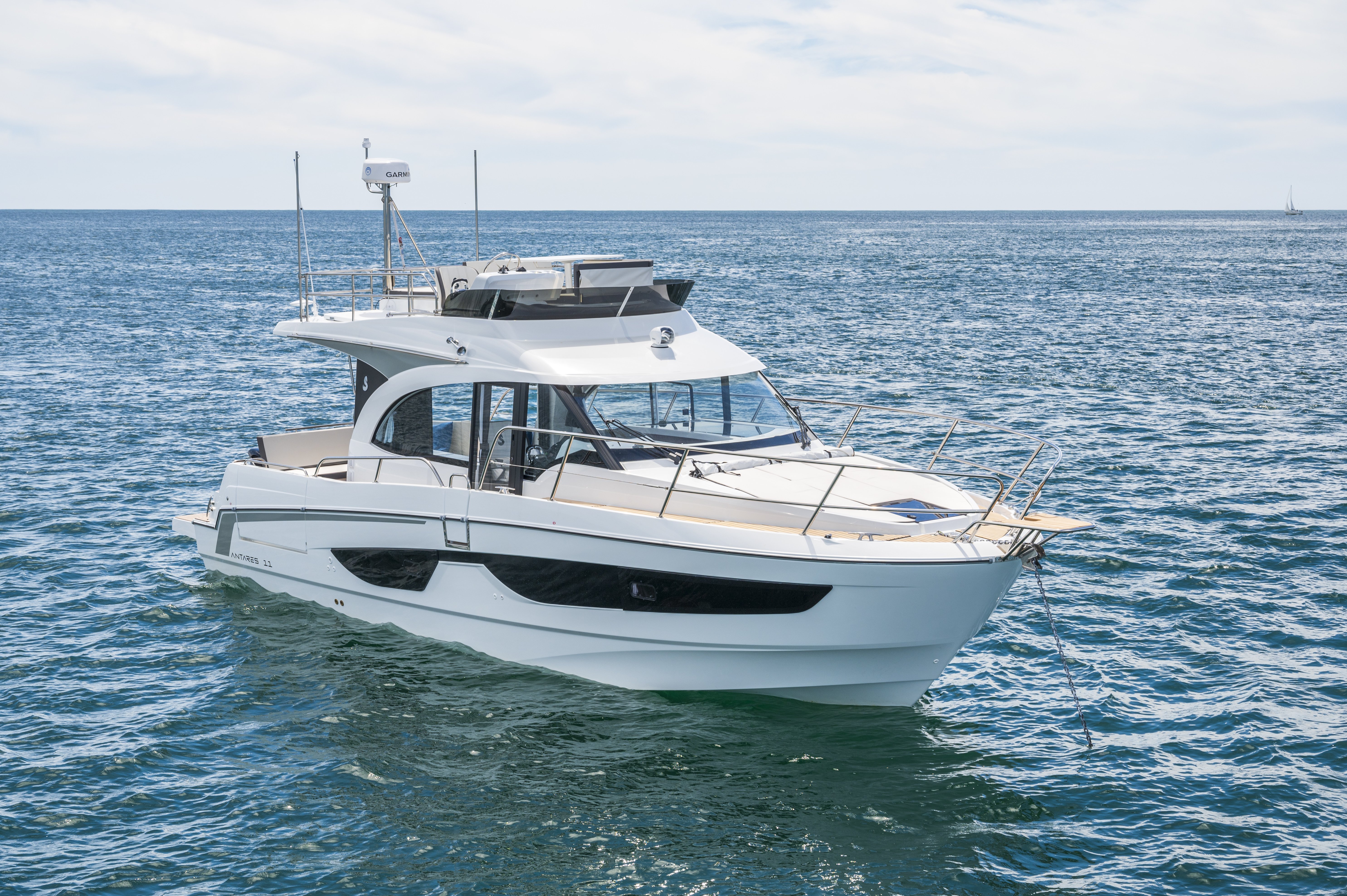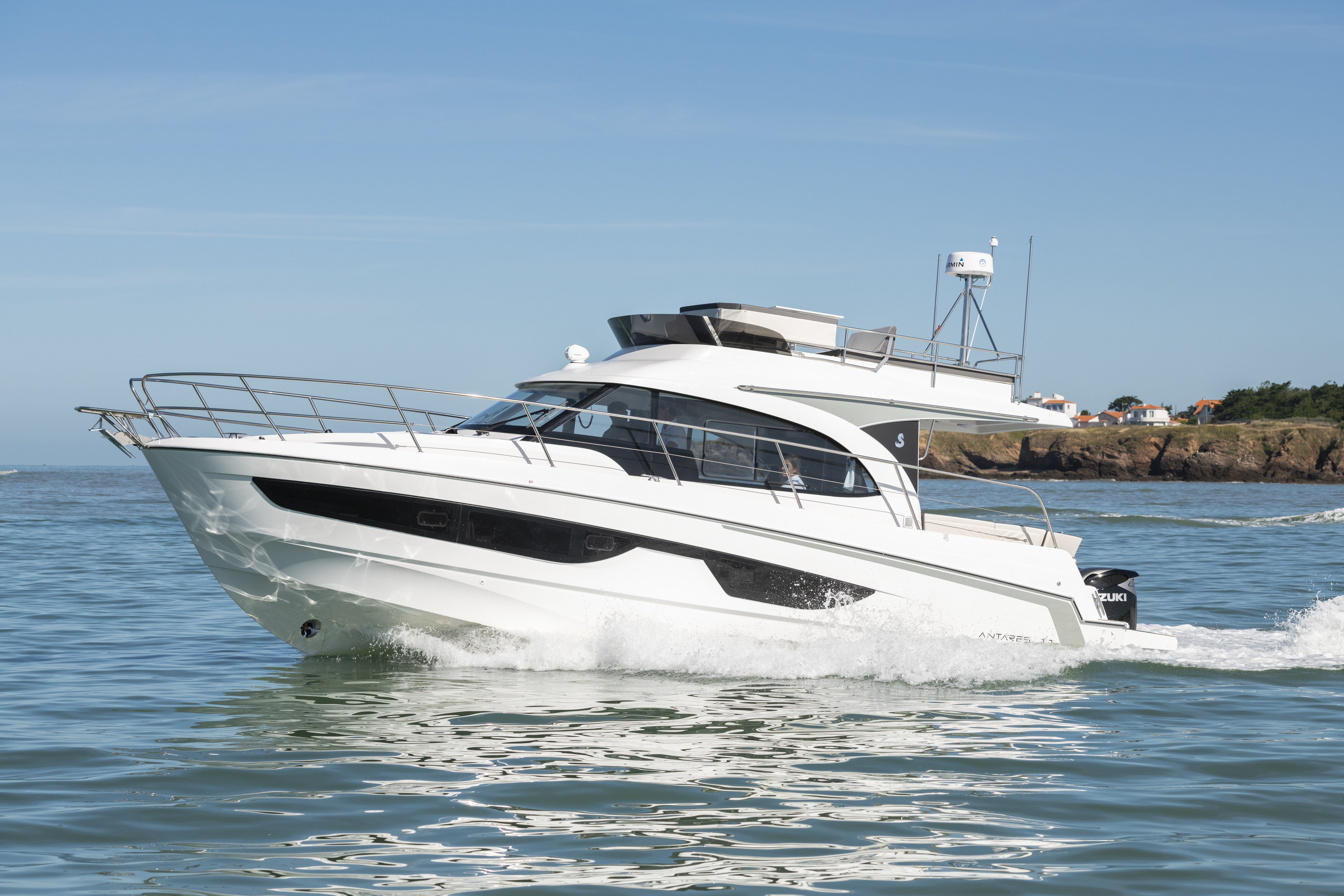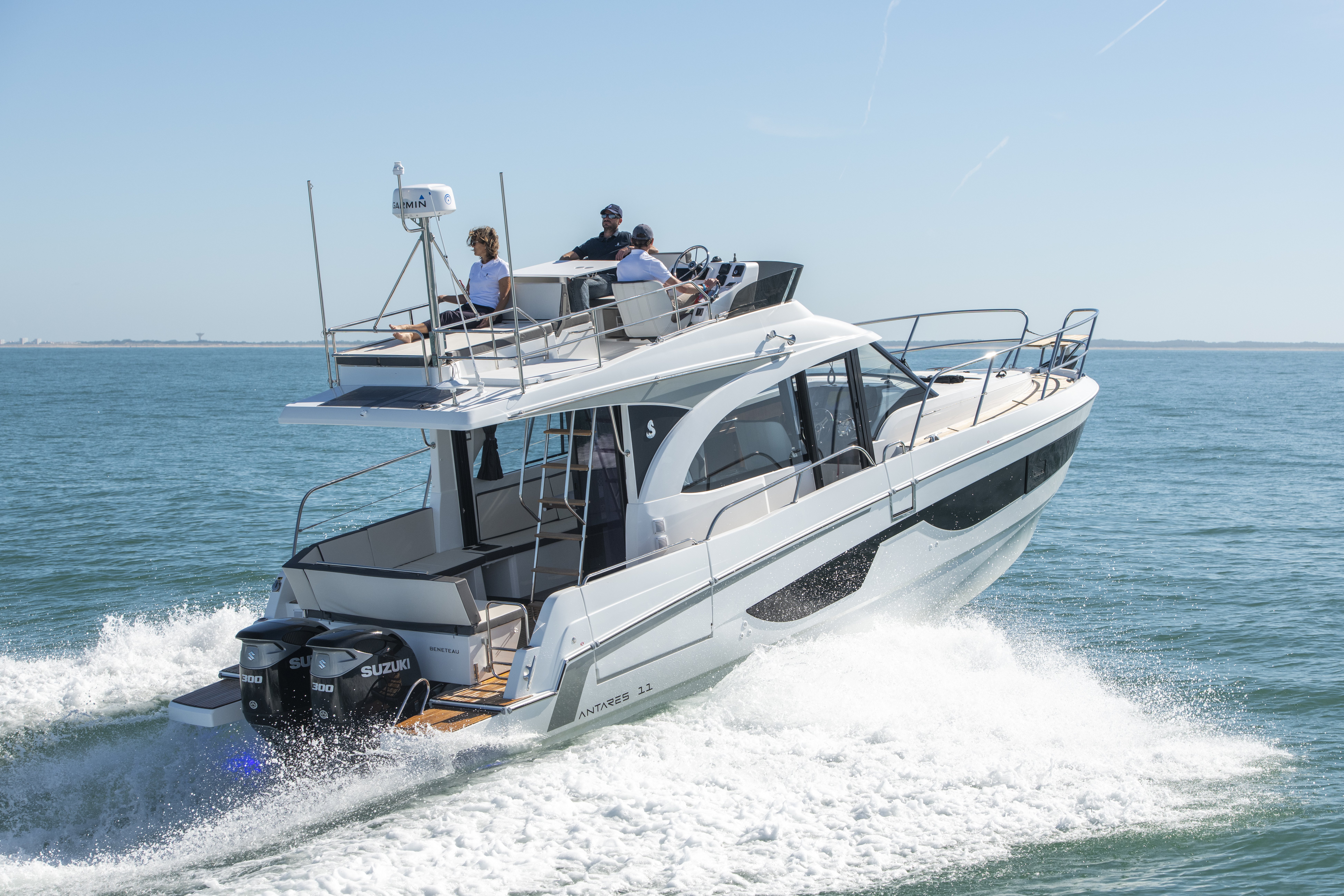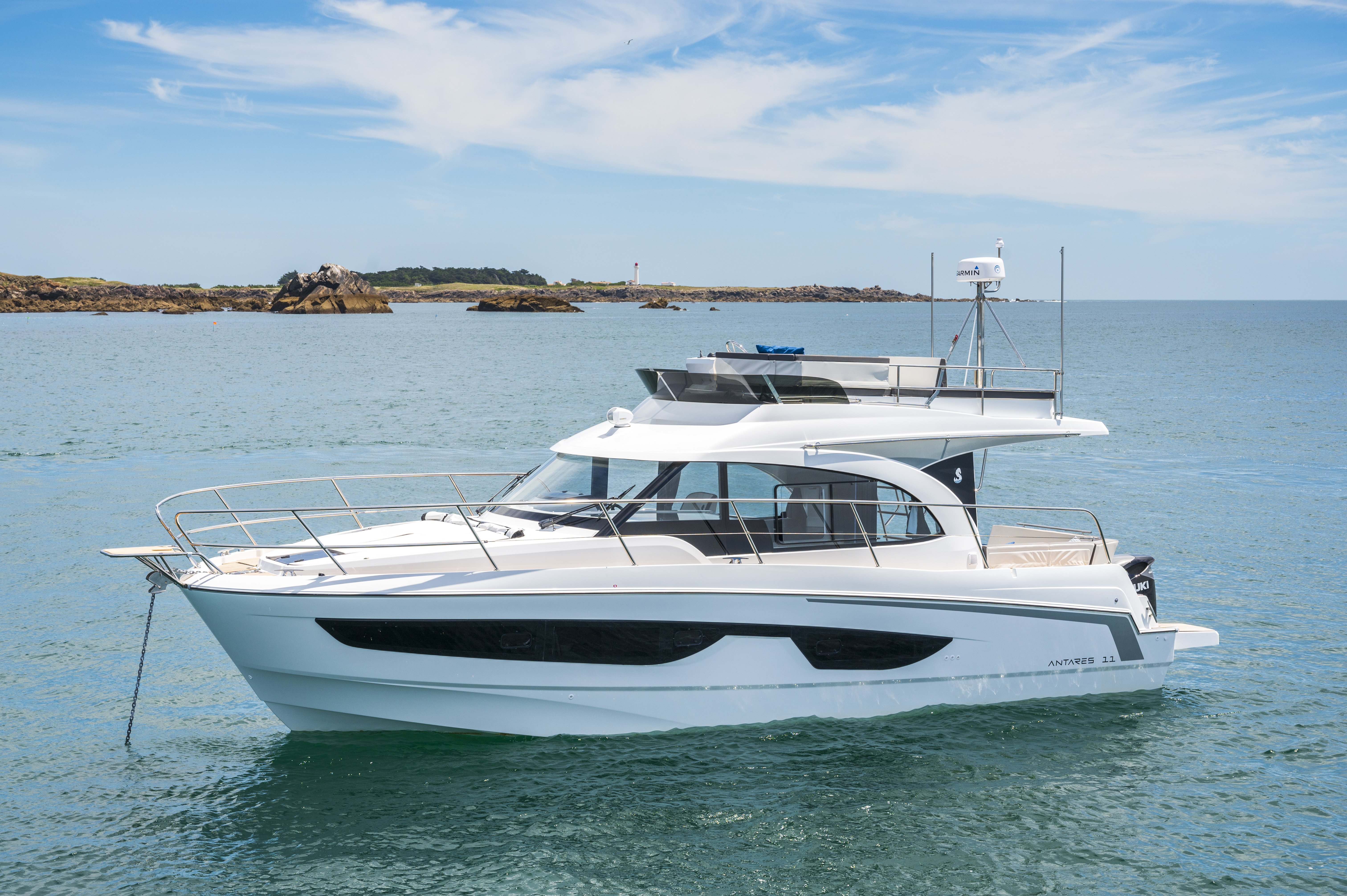 The Beneteau Antares 11 Fly is the flagship of the Antares outboard line — a contemporary 36-plus-foot flybridge cruiser that redefines comfort, style and versatility in its class. Designed for extended weekends, family cruising and coastal adventures, this boat pairs generous living spaces with refined performance and thoughtful ergonomic design.