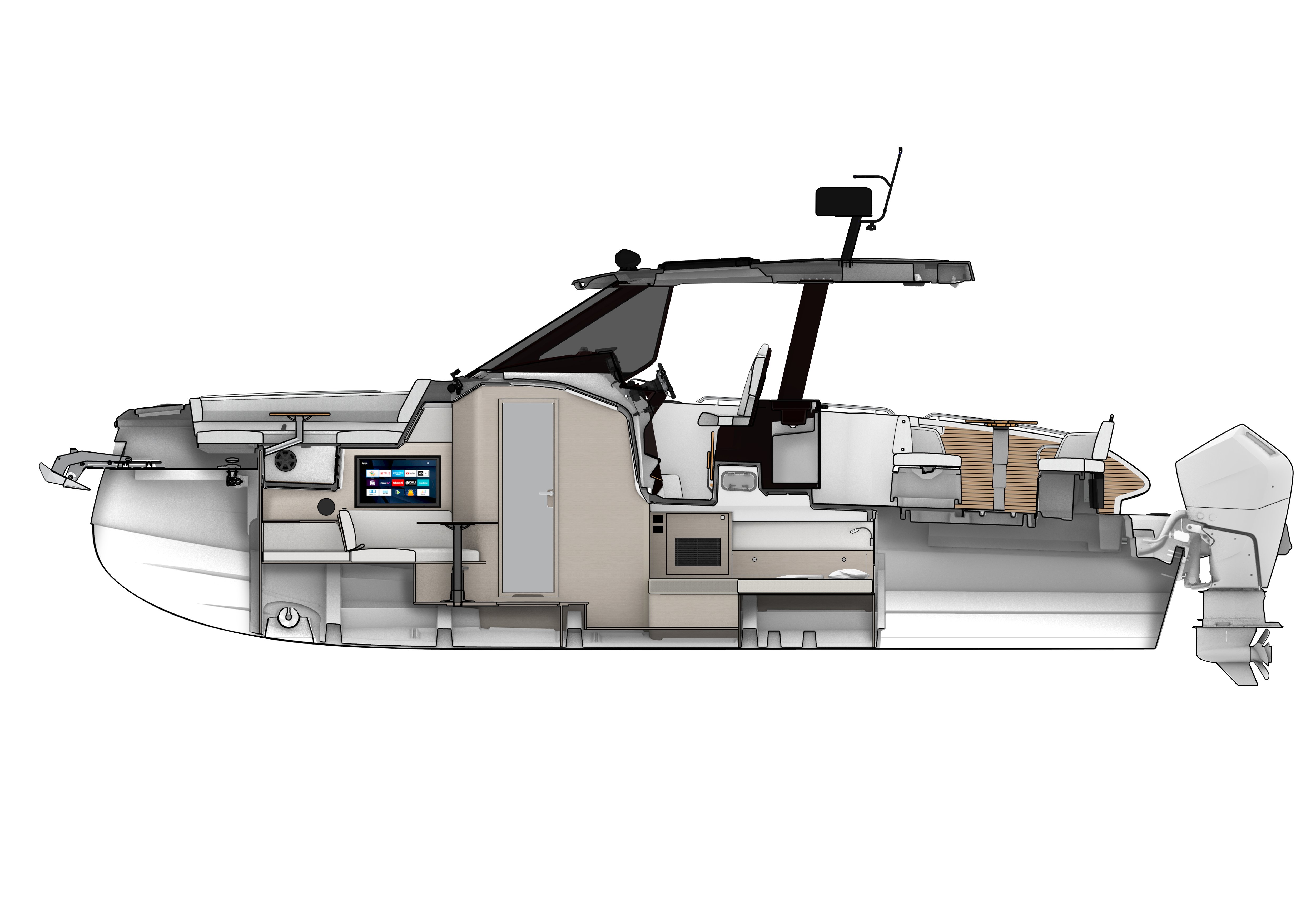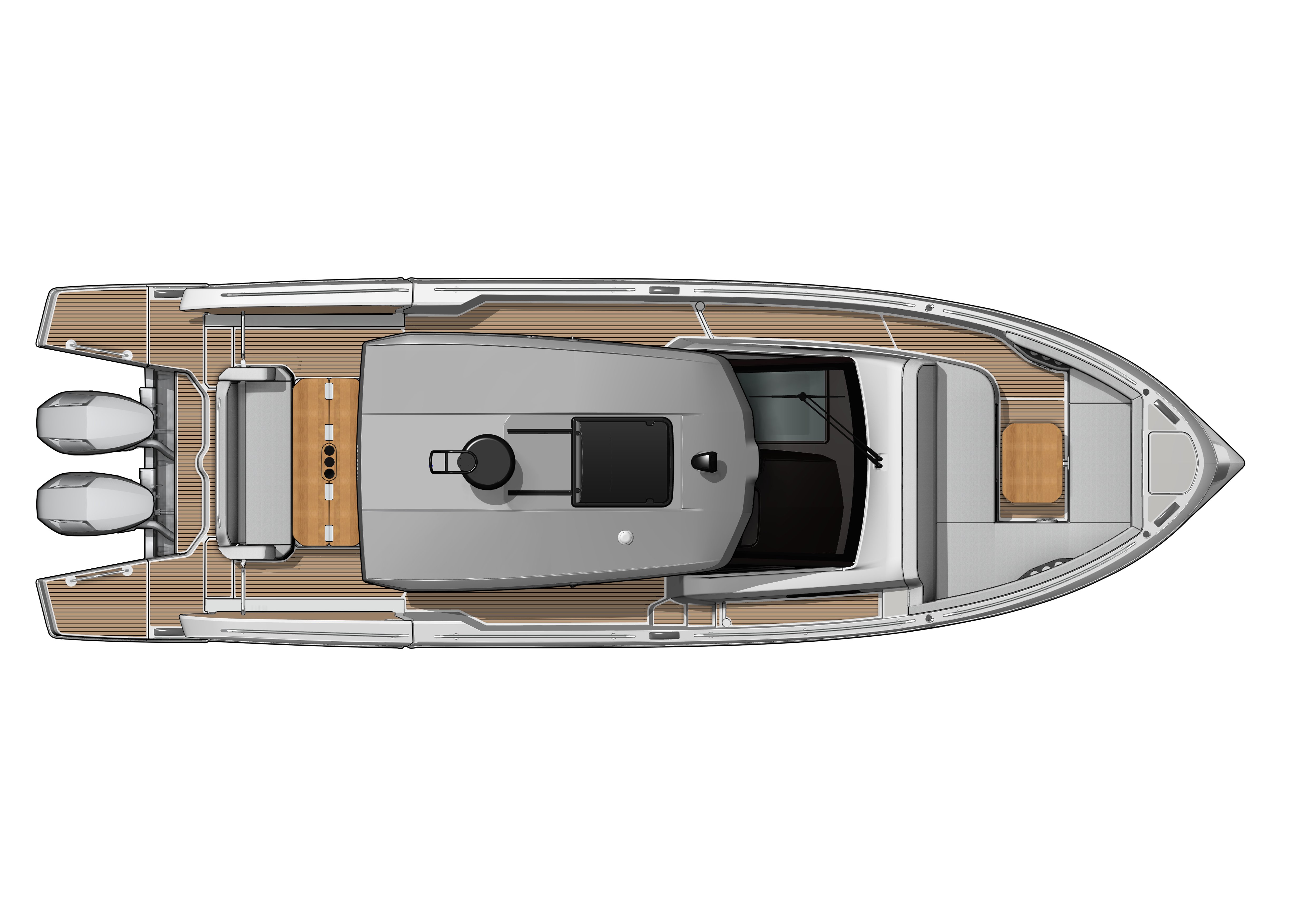 The Gran Turismo 35 stands out with its ultramodern hull and signature light blades, perfectly balancing capability with timeless style. Inspired by villa-style living, the modular cockpit layout offers a versatile space that is ideal for entertaining, relaxing, or a high-speed run towards the horizon. Hinge-down balconies expand the aft deck, enhancing your connection to the water, while convertible seating areas transform into expansive sun pads, providing a perfect outdoor retreat. Whether you're cruising at full throttle or hosting guests at the dock, the Gran Turismo 35 redefines the boating experience with a seamless integration into its natural surroundings.