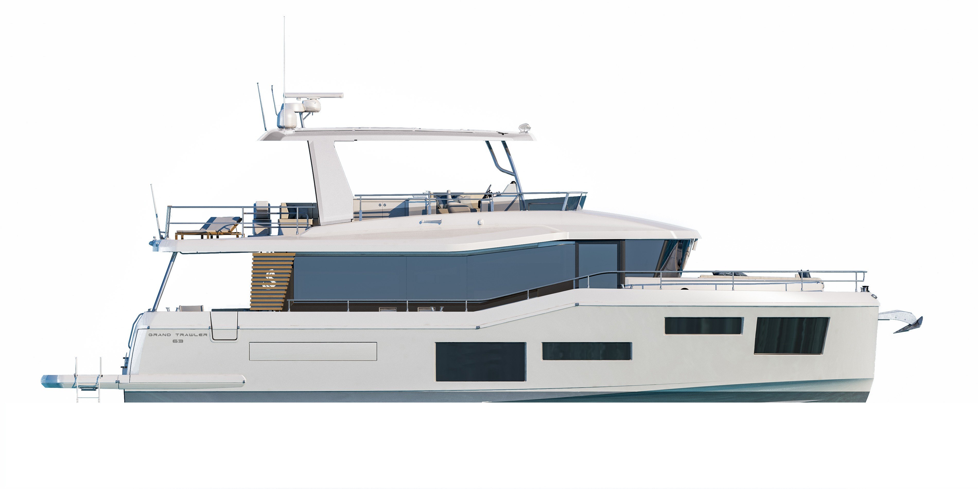 The Beneteau Grand Trawler 63 is the pinnacle of the Trawler range — a flagship displacement-hull motor yacht engineered for serious long-distance ocean passage-making. At 62 feet with an 18-foot beam, it draws on the accumulated knowledge of the entire Swift Trawler family combined with the Beneteau Group's experience in luxury yacht production. The displacement hull design prioritizes seakeeping and range above all else, making the Grand Trawler 63 a genuine bluewater vessel. Multiple staterooms, a fully equipped salon, and the amenities of a luxury yacht make this the ultimate live-aboard cruiser for owners who want to go anywhere, for as long as they choose.