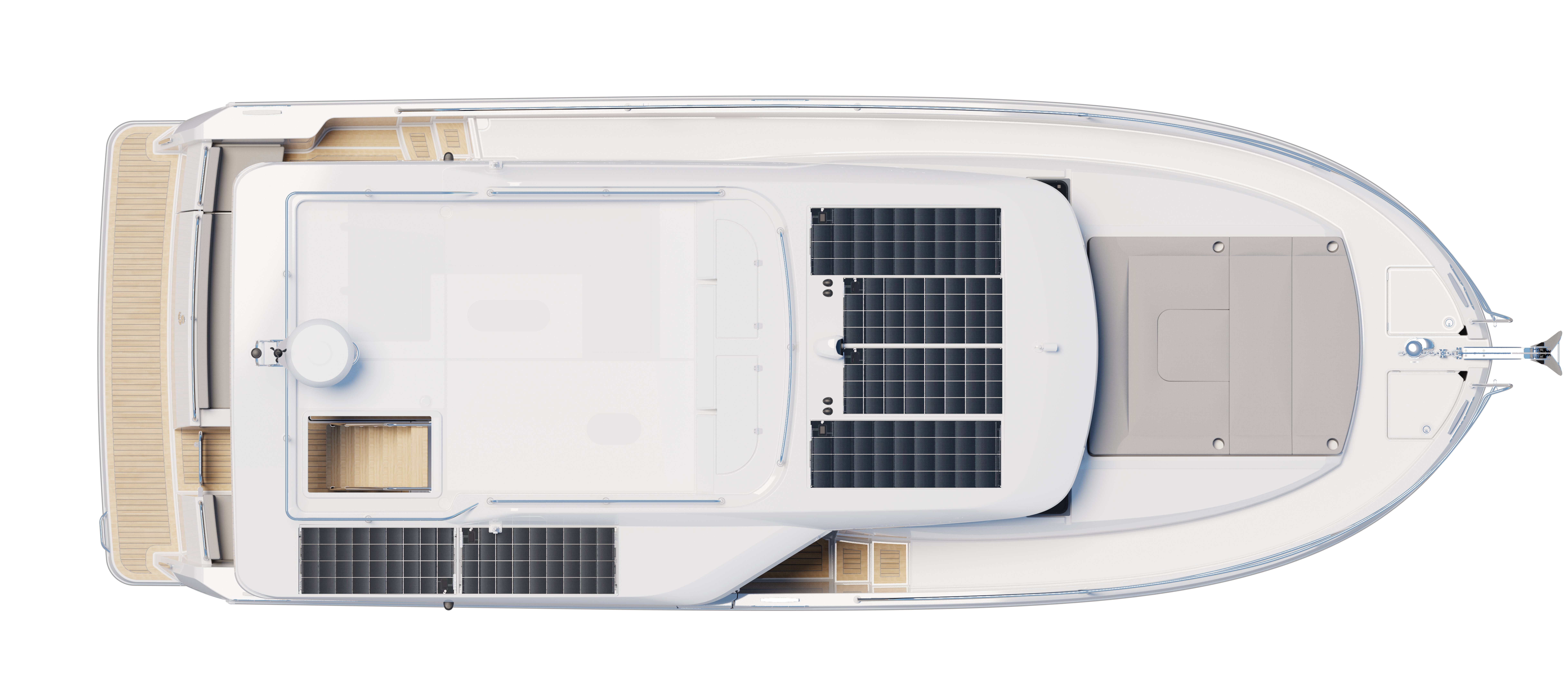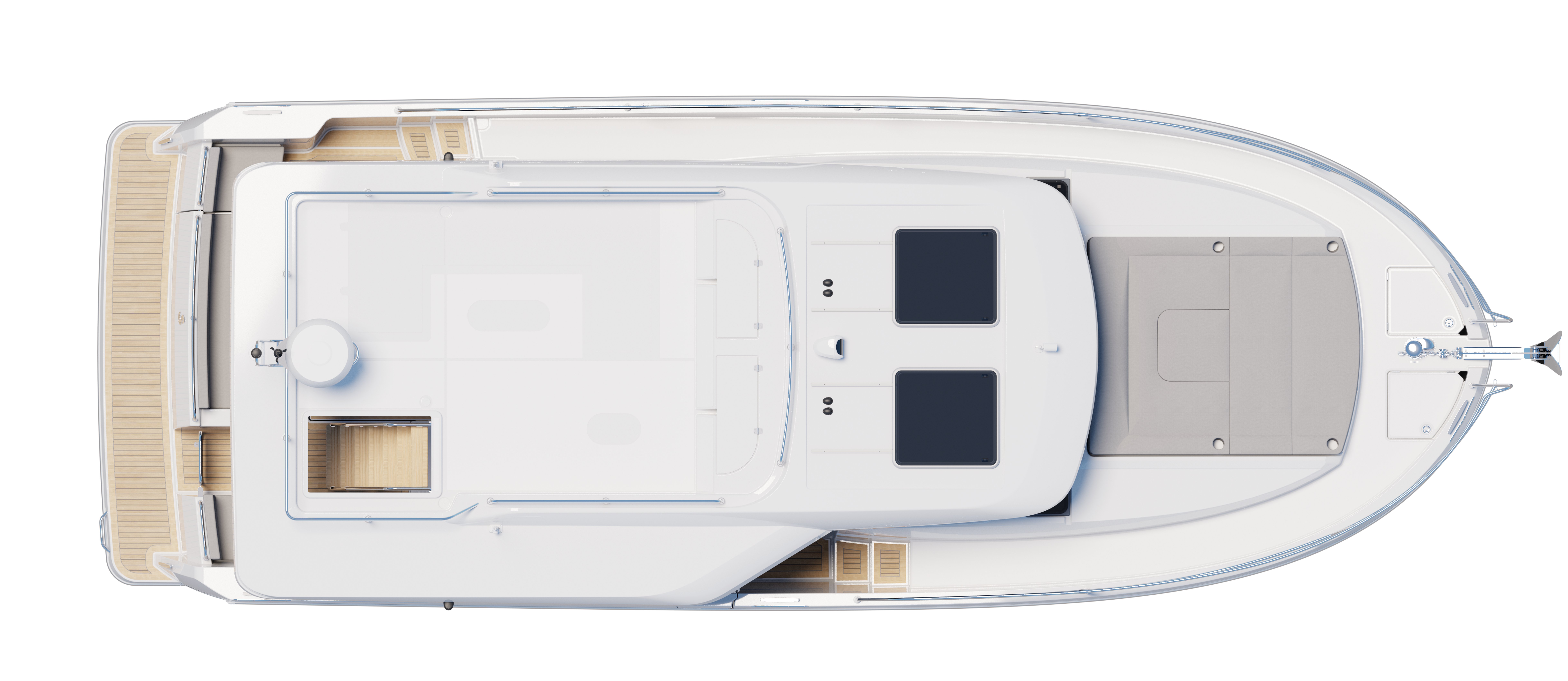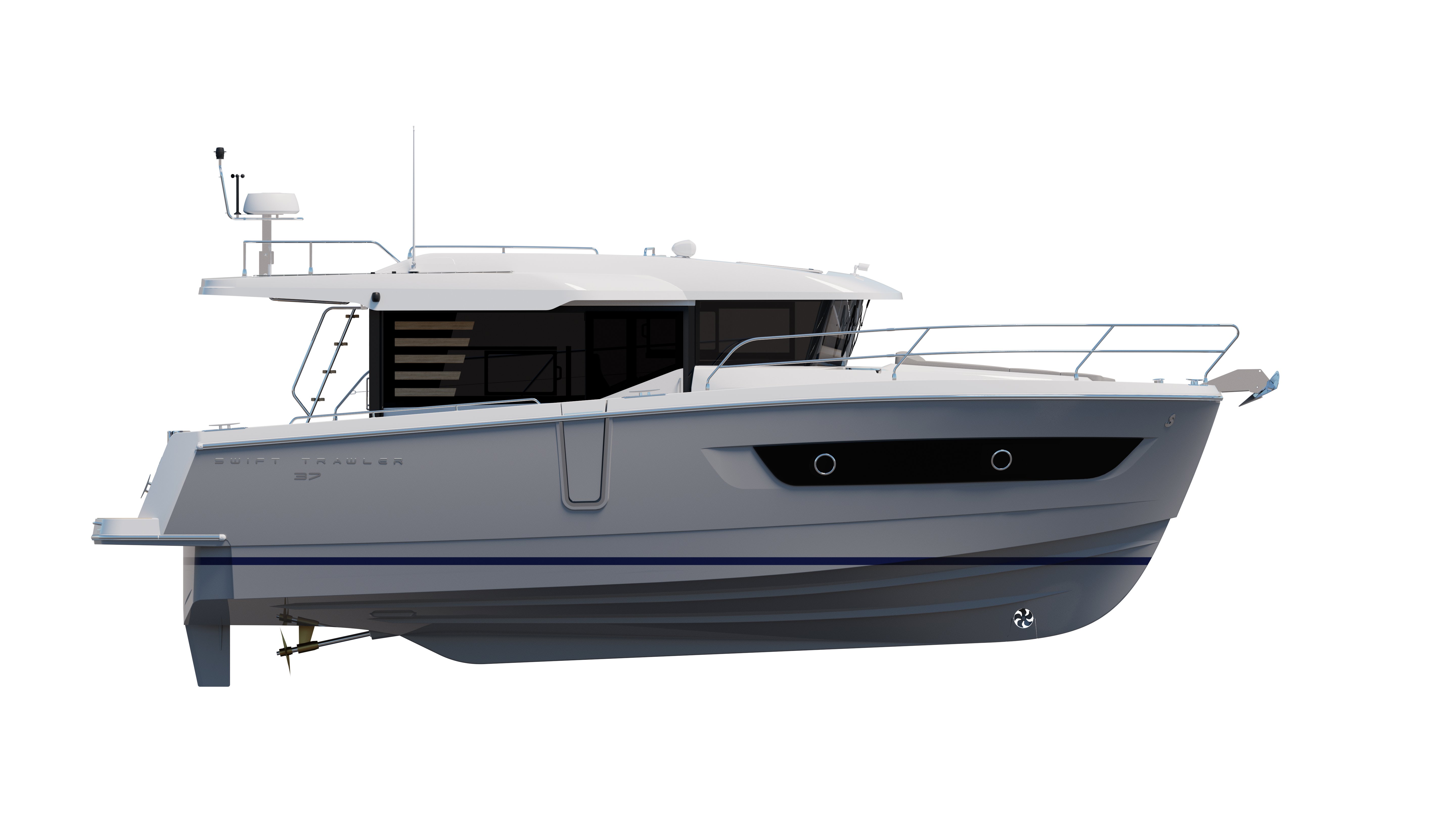 The Swift Trawler 37 Sedan is a bold step forward for Beneteau's popular line of passagemakers. After 140 years, we continue to innovate and have unleashed the full potential of the upper surface of this family cruiser. The space has opened a new world of possibilities which can be adapted and tailored to your unique needs on the water. The modern Sedan configuration introduces an entirely new concept of adaptive floorspace. Whether you enjoy an active lifestyle or are seeking pure relaxation, you can set up the space to suit your needs.