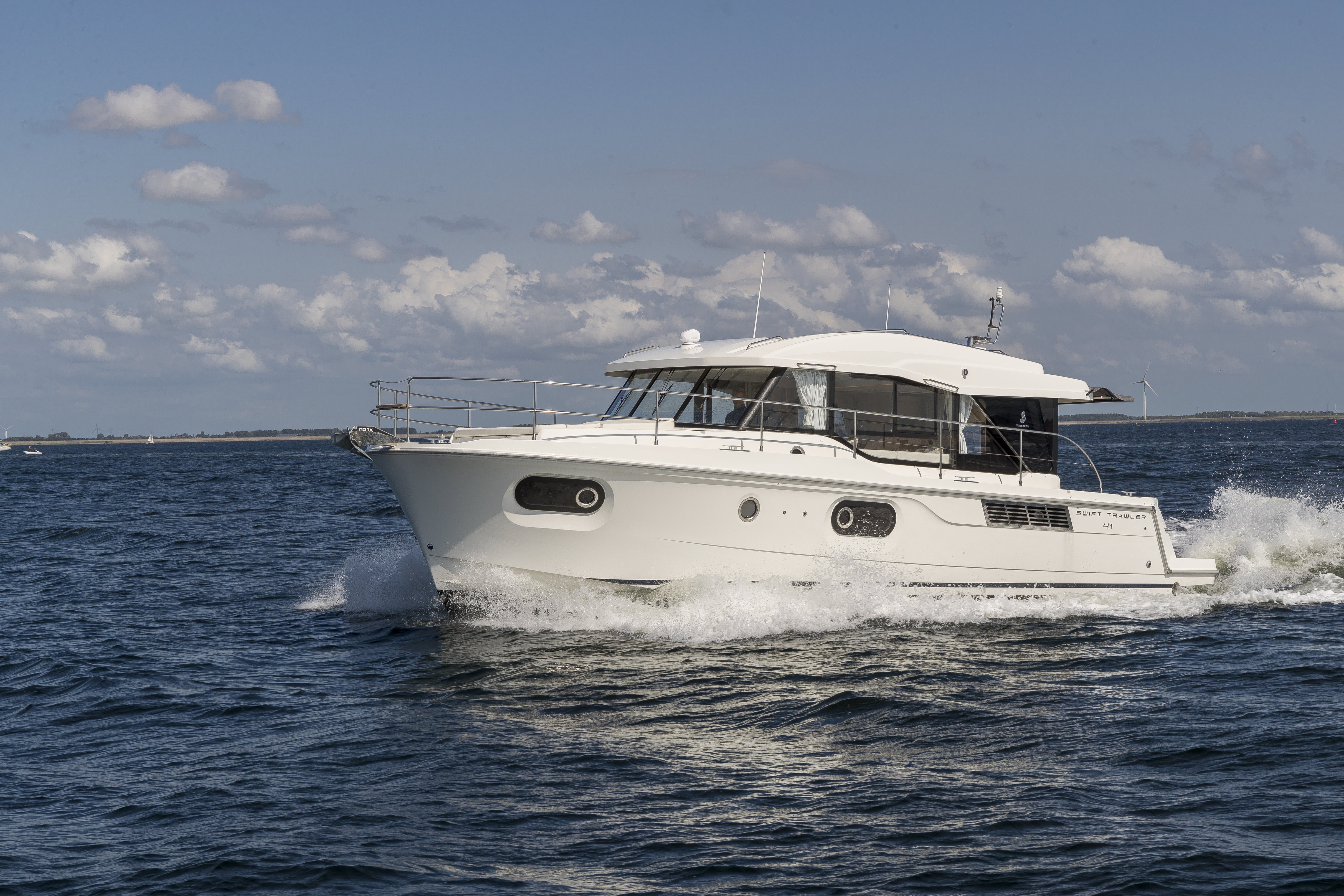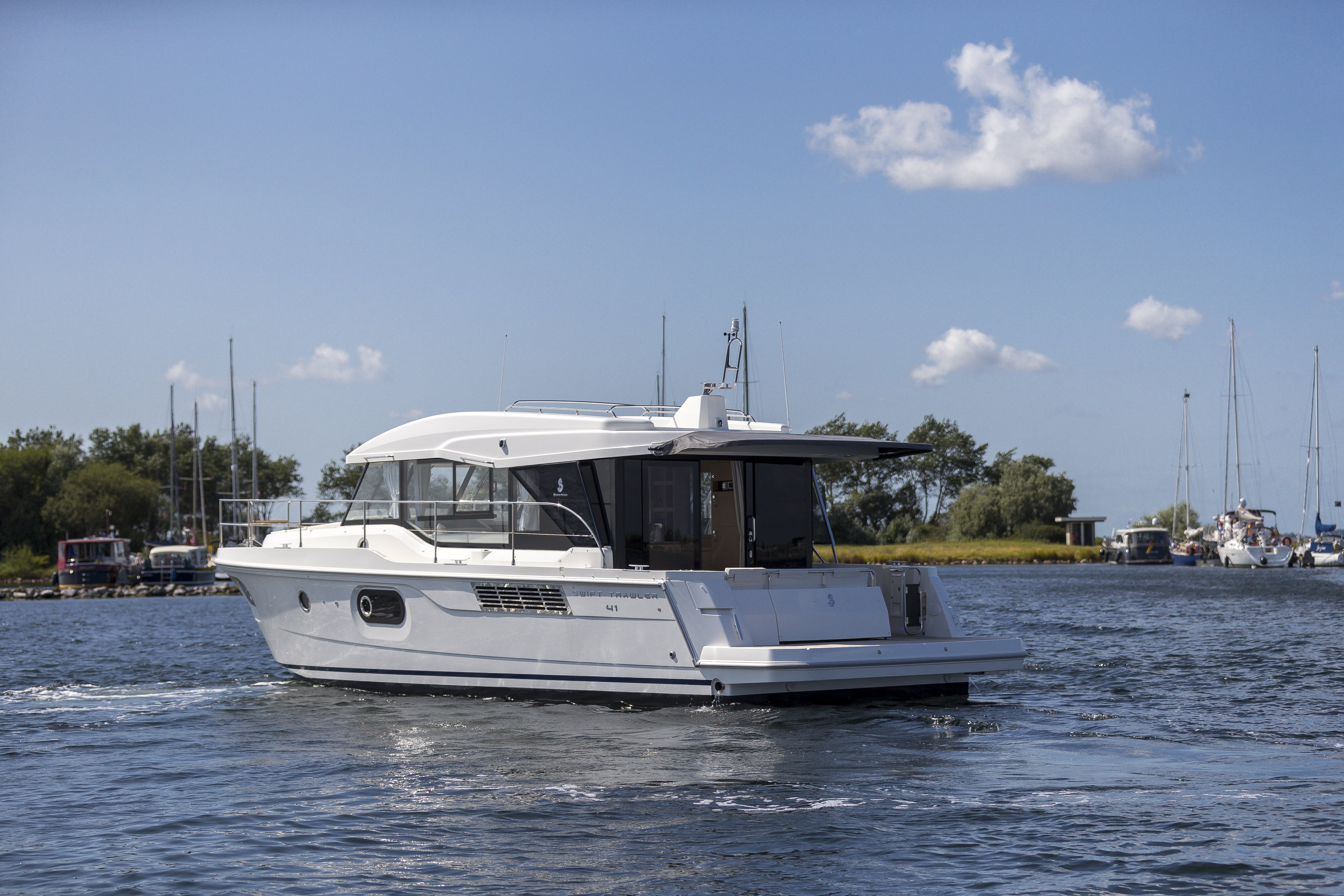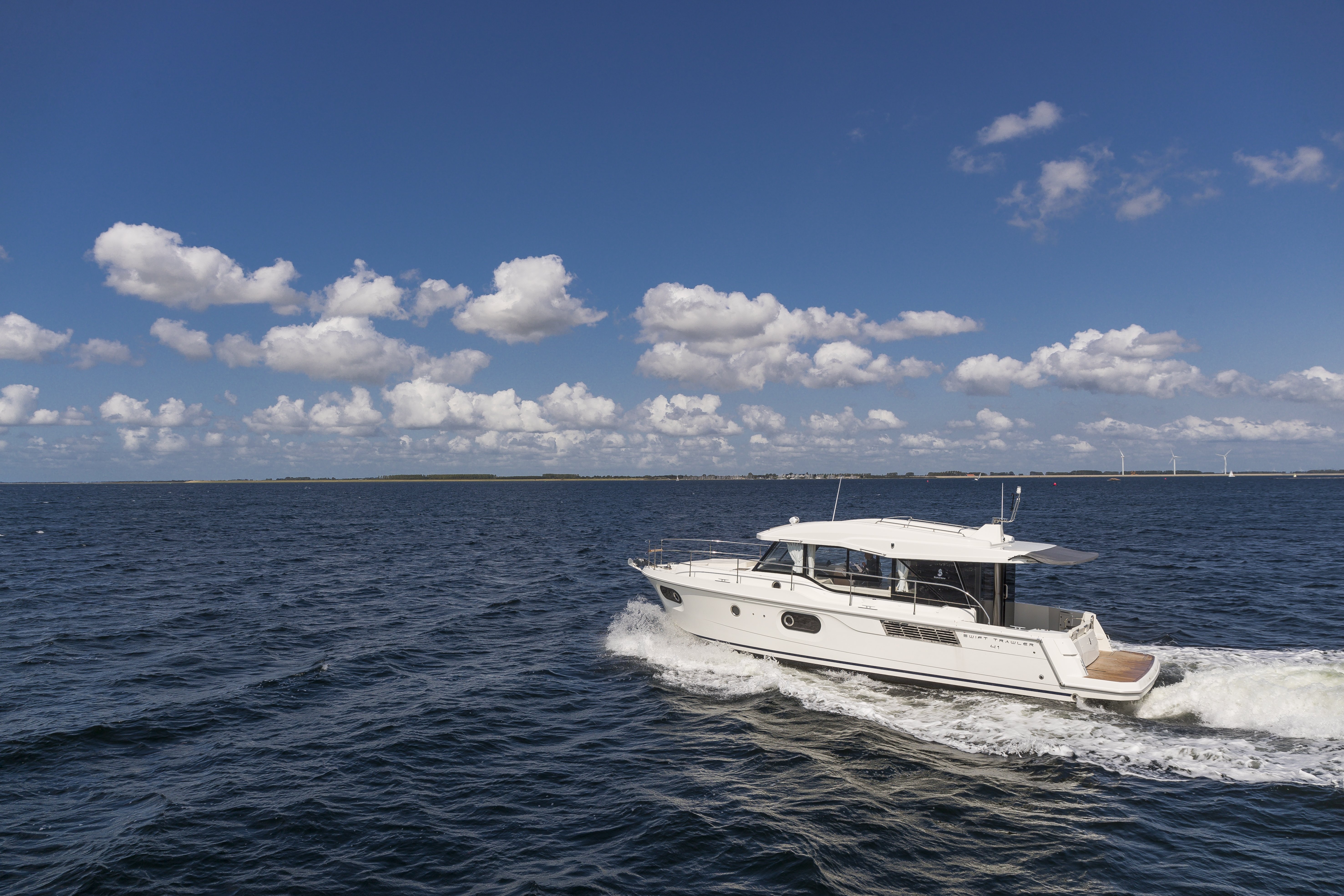 A generous passagemaker, the Swift Trawler 41 successfully renews the spirit and style of the trawler range. Ample living space, comfortable and practical, this new innovative 40-foot powerboat, available and both Fly and Sedan versions, has an on-board capacity of up to 7 passengers.