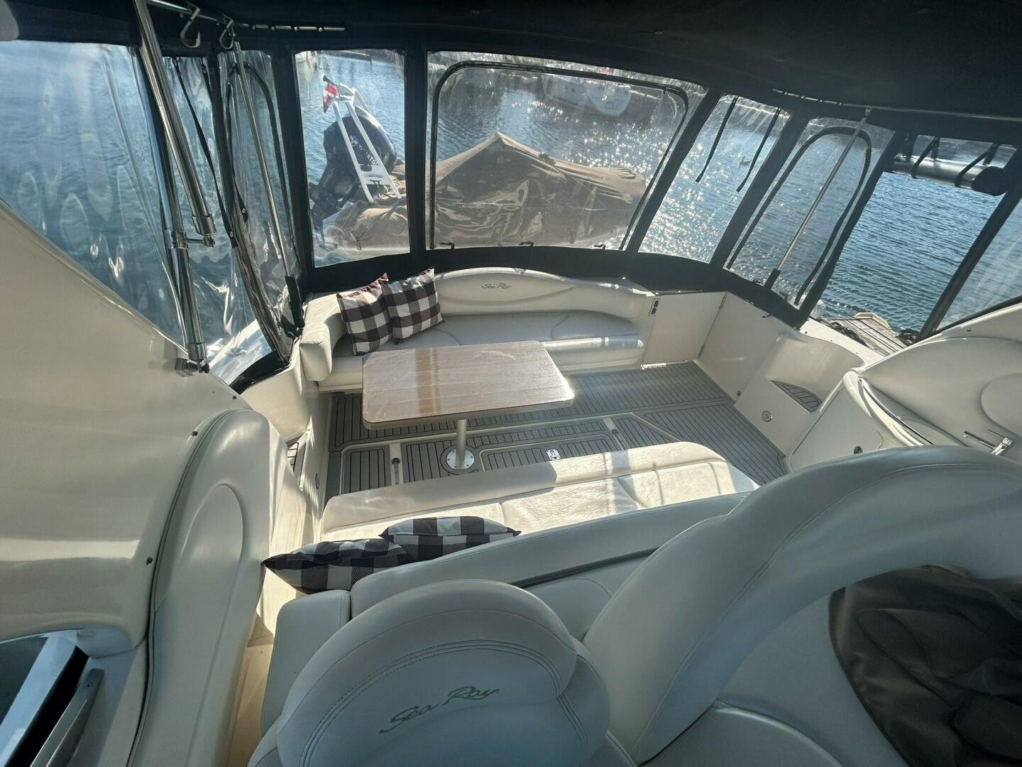 There is new (2022) isinglass above the windshield and also down both sides of the helm area with custom windows where both the window and the screen can open for much improved cockpit ventilation.