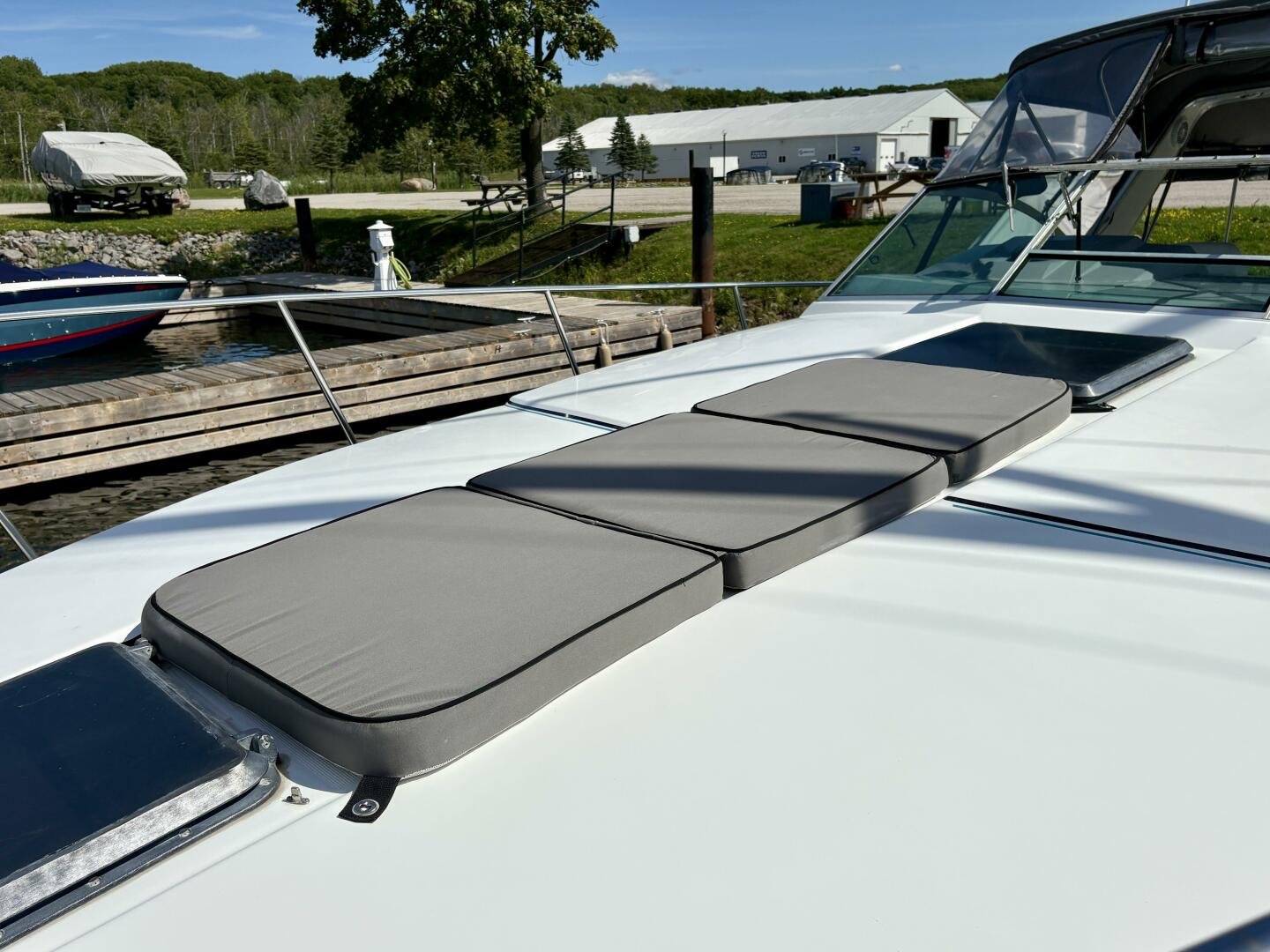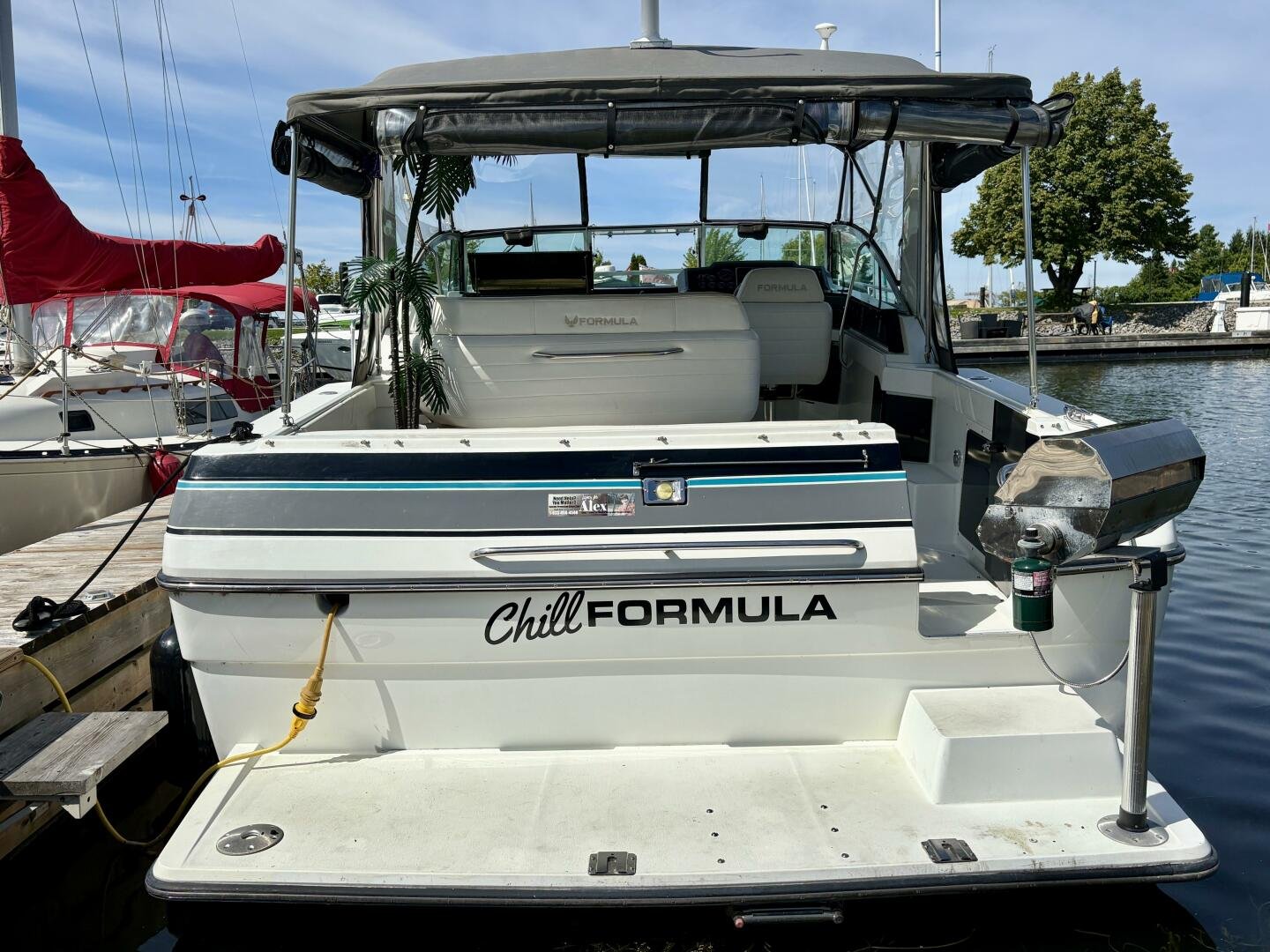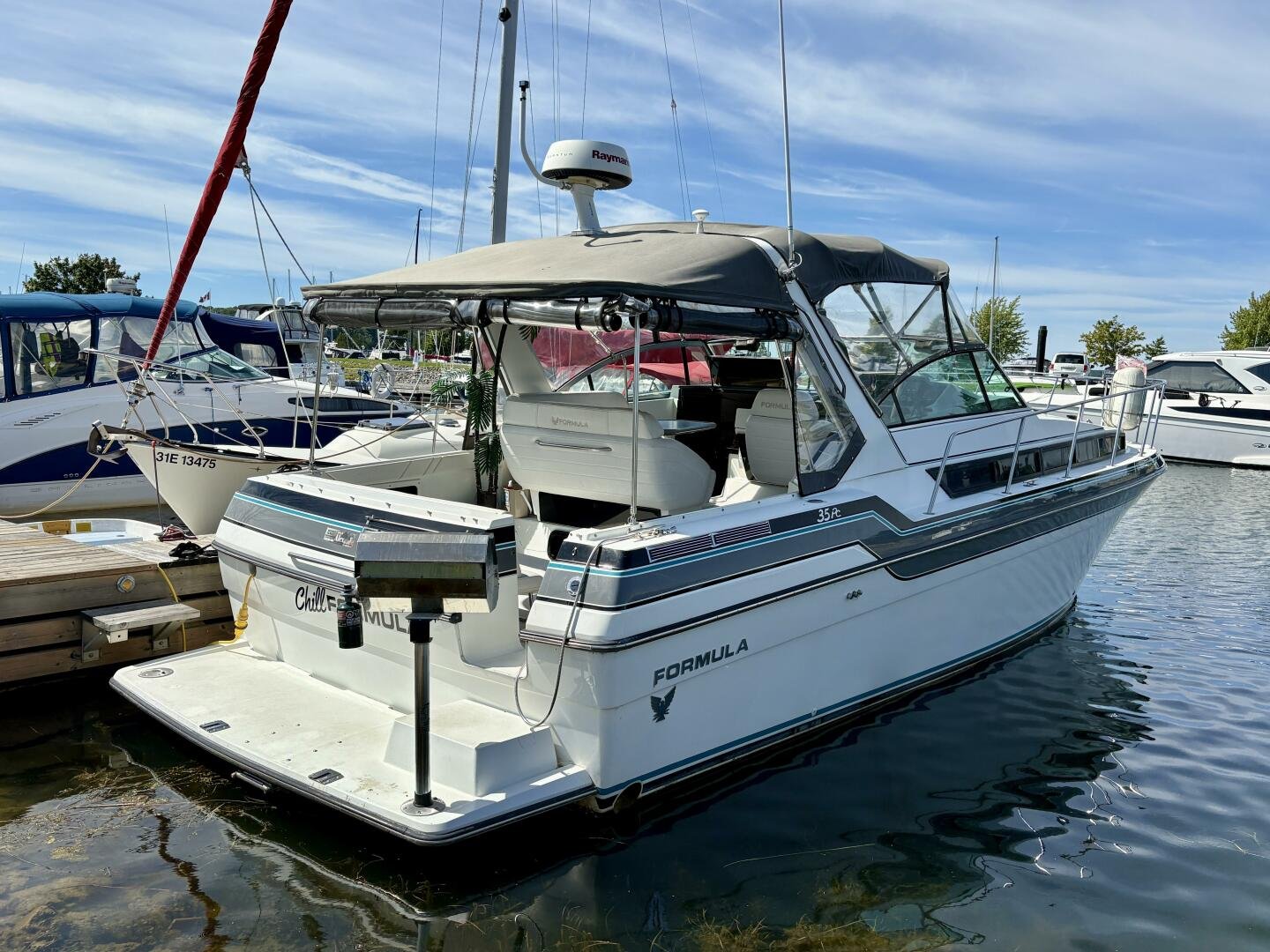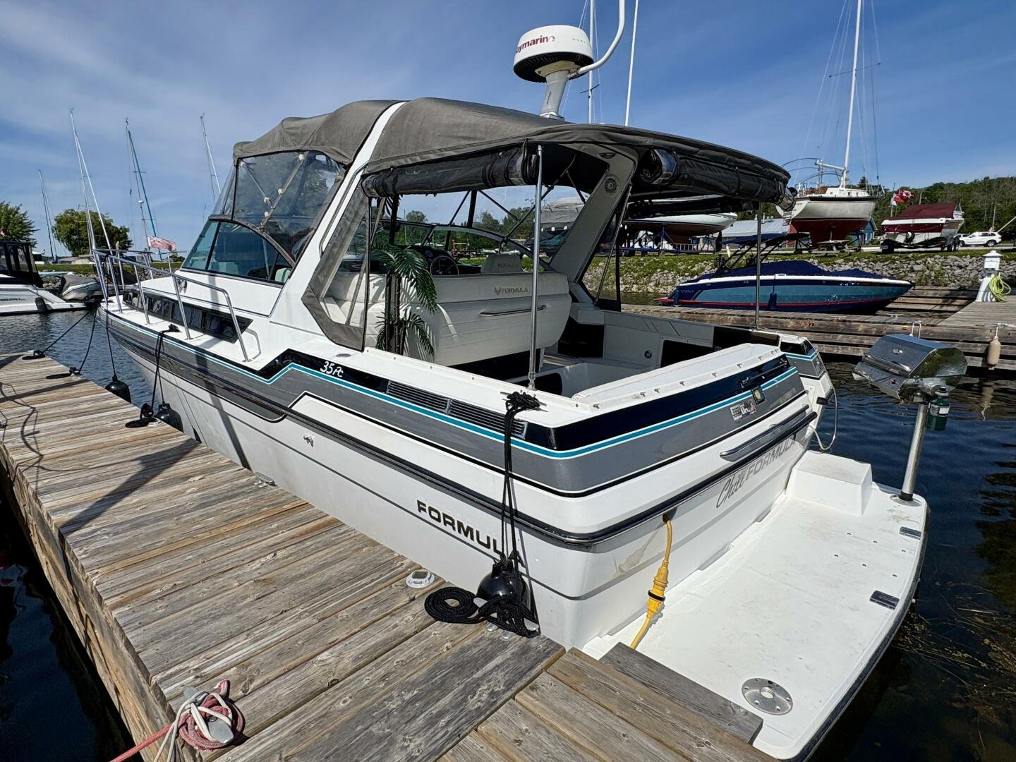 This 1989 FORMULA has been extremely well cared for with many updates over the years including; A custom made cherry wood interior, Newer canvas with full camper back and bow sun pad done by Canadian Yacht Tops, 10kg plow anchor with Maxwell windlass and 200ft of chain, Vacuflush head with custom built STAINLESS STEEL holding tank, NEW 16k BTU Dometic air-conditioner, NEW cockpit upholstery, NEW Raymarine 9" aSeries Touch-Screen, NEW Raymarine Quantum Digital Radar, NEW Standard Horizon VHF, Carburetors rebuilt, NEW stereo, speakers and amps.