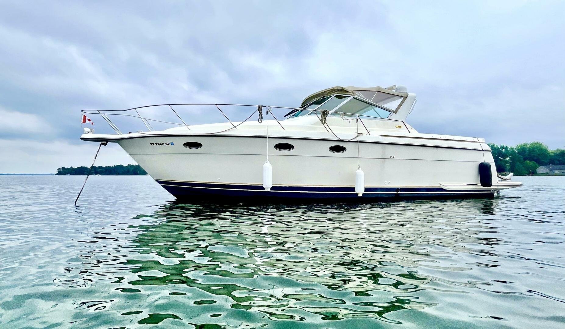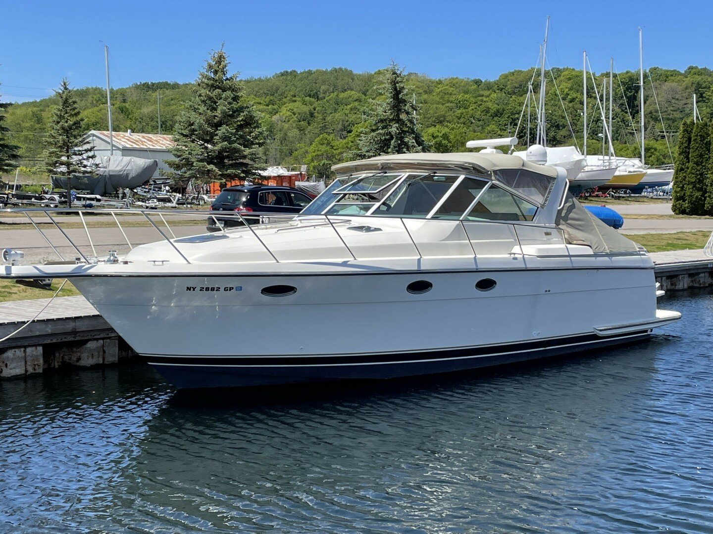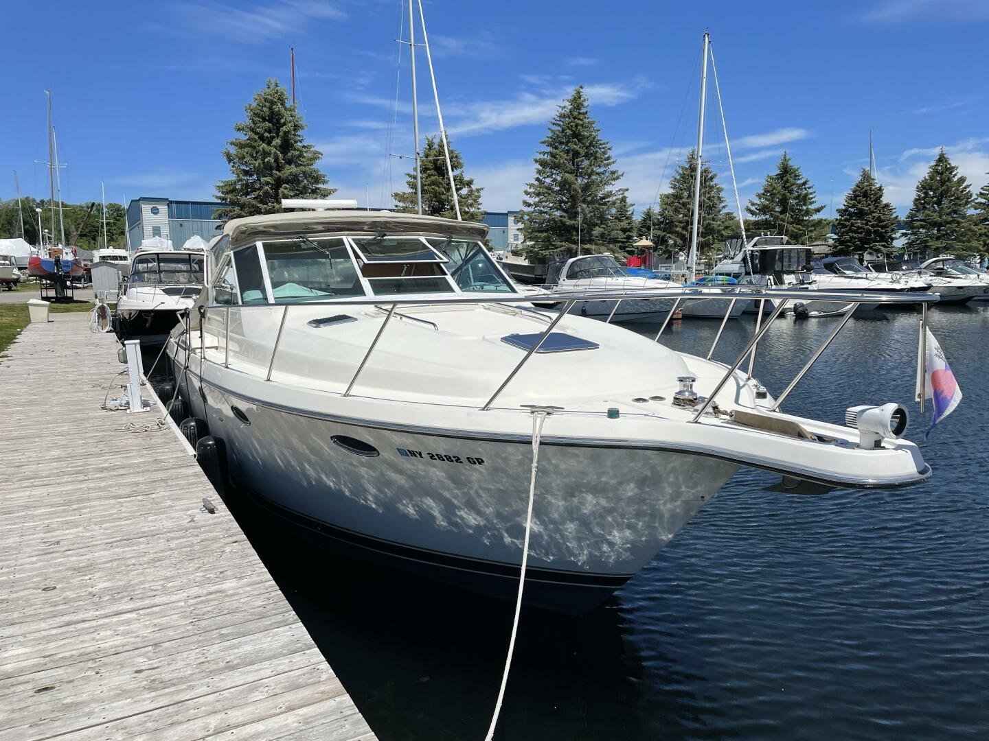 This particular 1995 Tiara 3500 Express has been thoughtfully updated and maintained, with twin fuel injected, 380hp - 502 Crusaders completely rebuilt in 2020/2021, a custom hydraulic swim platform, and all-new canvas (2025). Access to the engines is effortless with the hydraulic lift deck, making service and inspection simple. The wide beam makes this 35-footer feel much larger than her size, both topside and below. The cockpit is ideal for entertaining with single-level seating for eight, abundant storage, and Tiara’s signature transom trunk. The hydraulic swim platform adds both functionality and luxury, whether for stowing a tender, or enjoying time at anchor. Below deck, the interior is regarded as one of the best in any midsize express. The forward master stateroom is complemented by a large lounge that converts into a private cabin at night, while a removable pedestal seat allows the dinette to seat five comfortably or convert into a double bed.