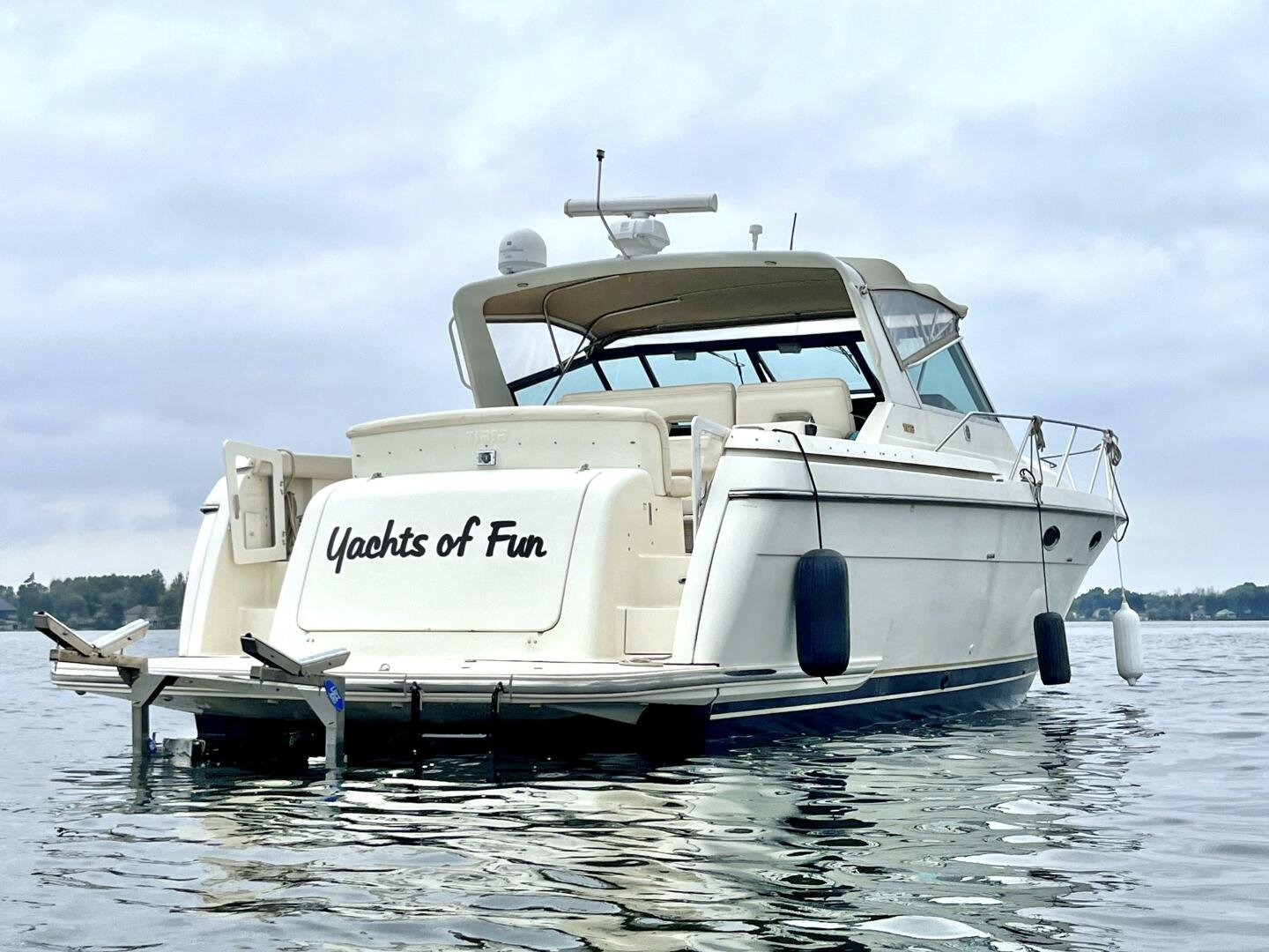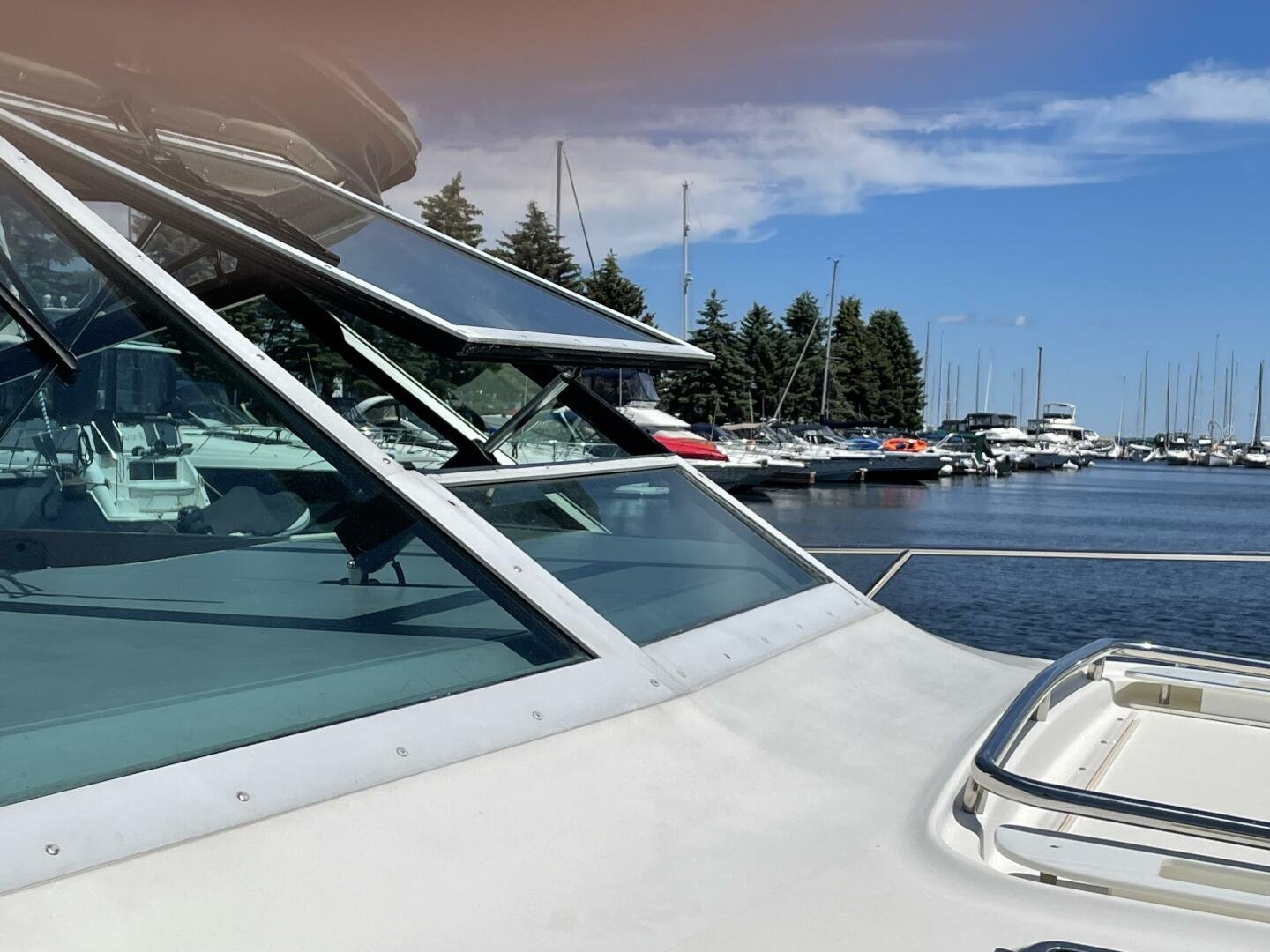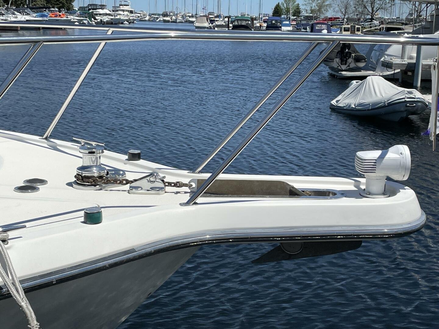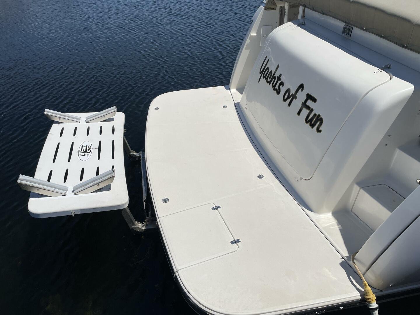 This particular 1995 Tiara 3500 Express has been thoughtfully updated and maintained, with twin fuel injected, 380hp - 502 Crusaders completely rebuilt in 2020/2021, a custom hydraulic swim platform, and all-new canvas (2025). Access to the engines is effortless with the hydraulic lift deck, making service and inspection simple. The wide beam makes this 35-footer feel much larger than her size, both topside and below. The cockpit is ideal for entertaining with single-level seating for eight, abundant storage, and Tiara’s signature transom trunk. The hydraulic swim platform adds both functionality and luxury, whether for stowing a tender, or enjoying time at anchor. Below deck, the interior is regarded as one of the best in any midsize express. The forward master stateroom is complemented by a large lounge that converts into a private cabin at night, while a removable pedestal seat allows the dinette to seat five comfortably or convert into a double bed.