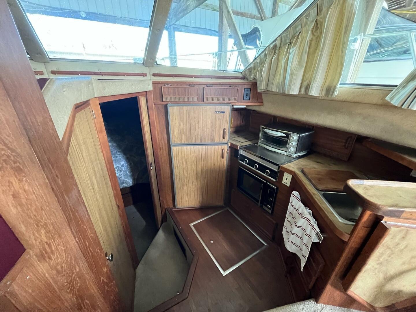 - Fully Equipped Galley: Full-size refrigerator, stove, microwave – all set for meals aboard.