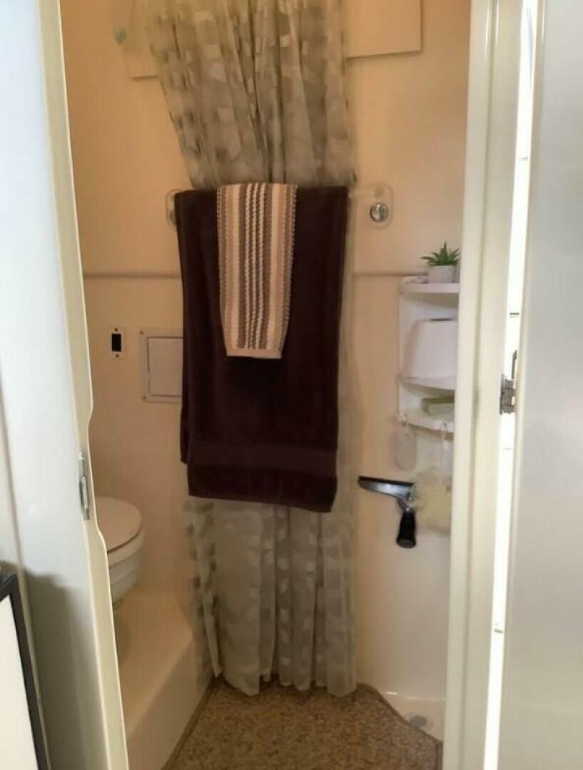 head with shower. Storage is excellent, and the three overhead