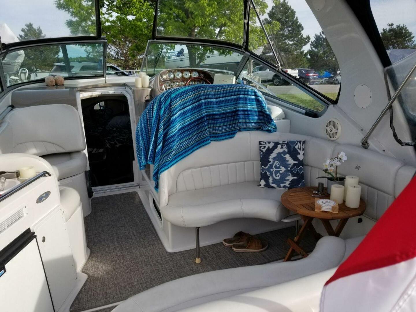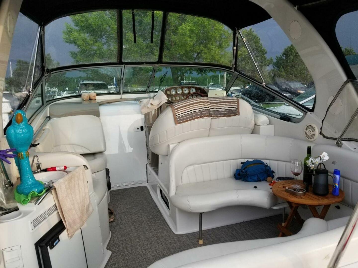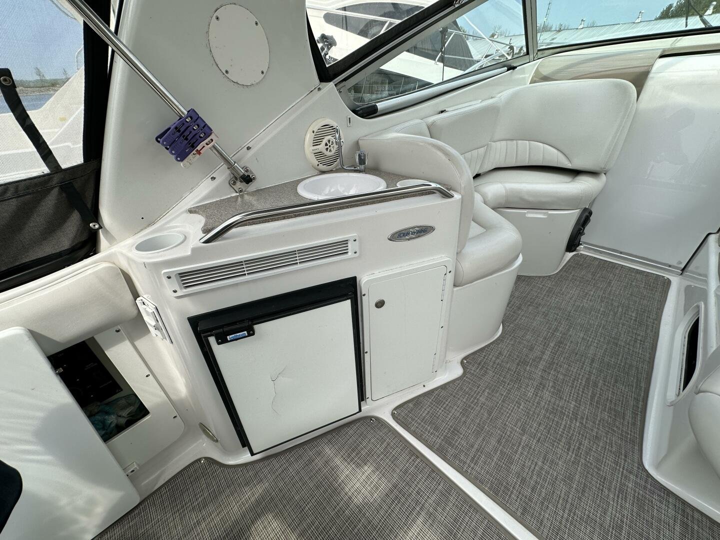 Step down into the well-appointed cabin, where you'll find a cozy V-berth, full galley, and enclosed head with shower. Whether you're enjoying a sunset cruise or an overnight adventure, the Four Winns 298 Vista ensures comfort and convenience at every turn.