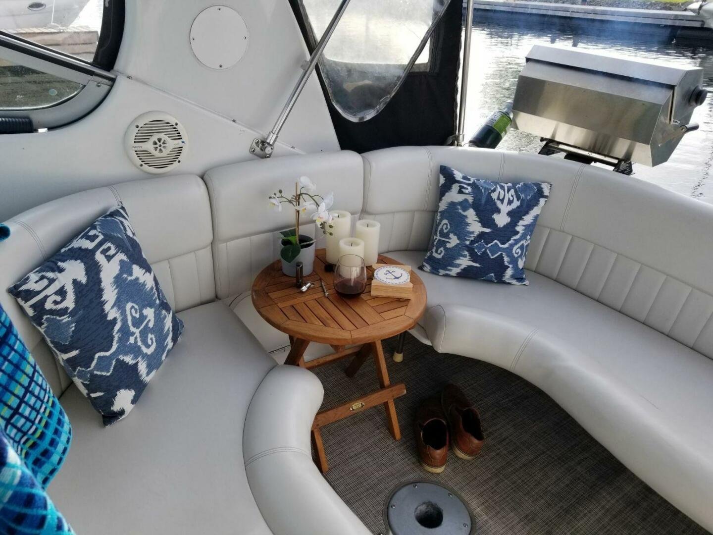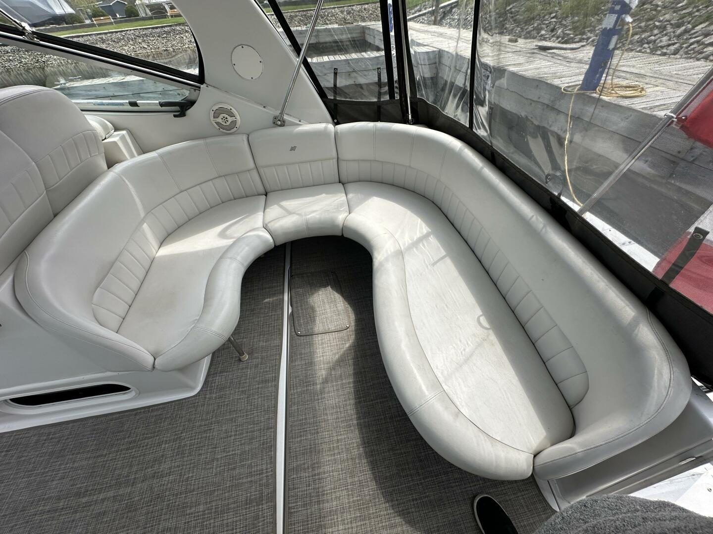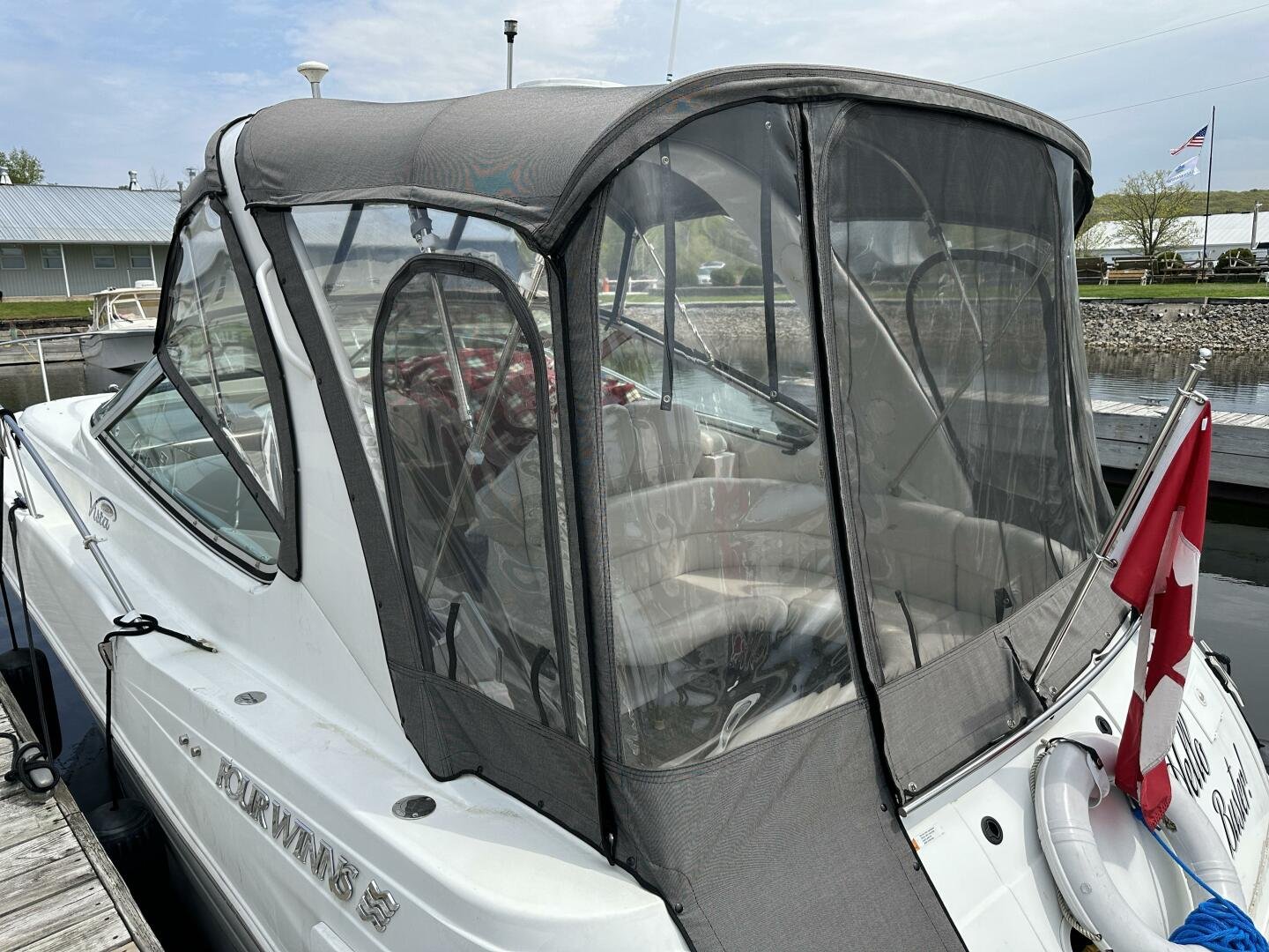 Step down into the well-appointed cabin, where you'll find a cozy V-berth, full galley, and enclosed head with shower. Whether you're enjoying a sunset cruise or an overnight adventure, the Four Winns 298 Vista ensures comfort and convenience at every turn.