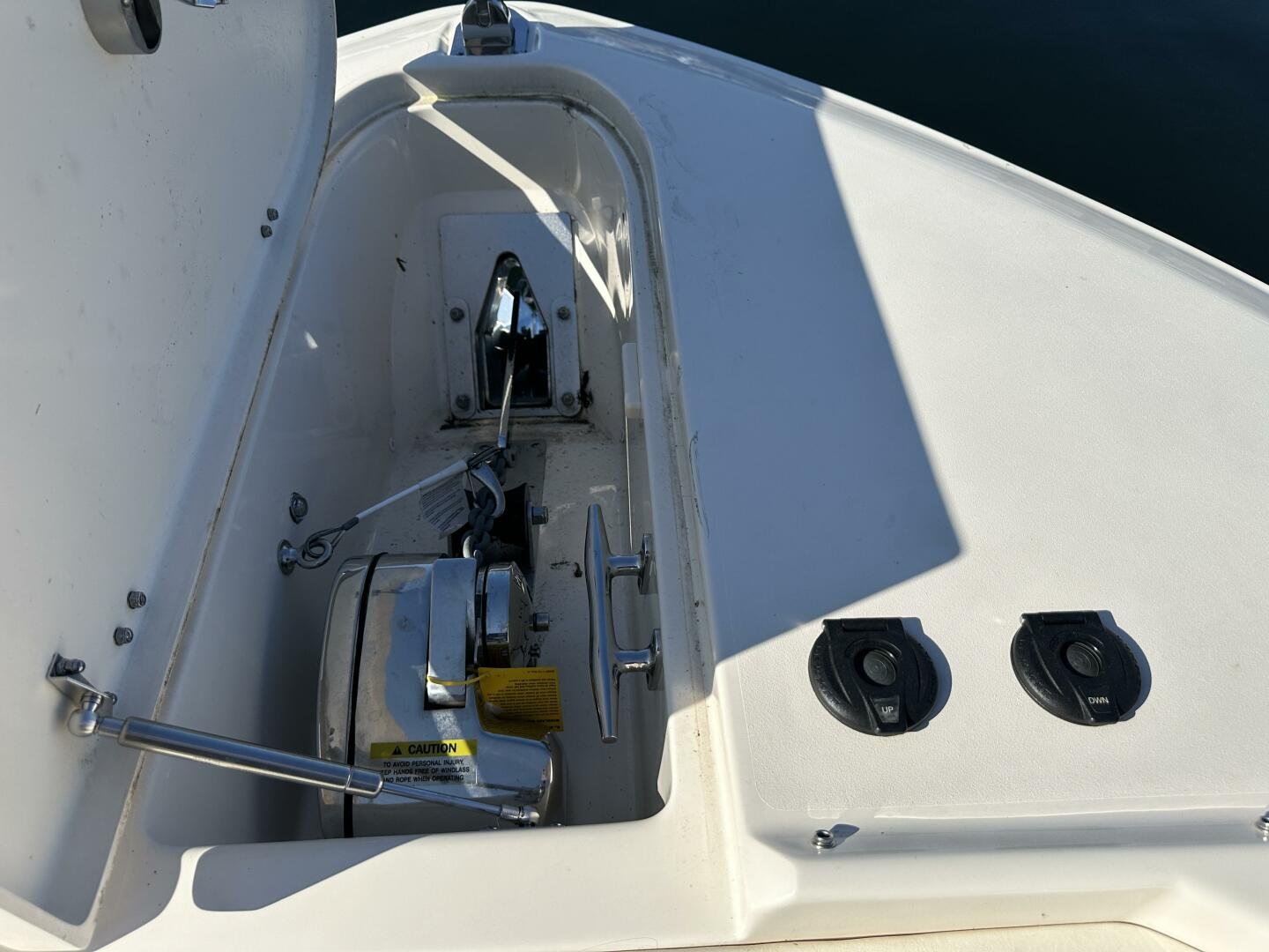 Fishing Ready: Outfitted with rod holders, a spacious livewell, and ample storage spaces, the boat is ready for the avid angler.
