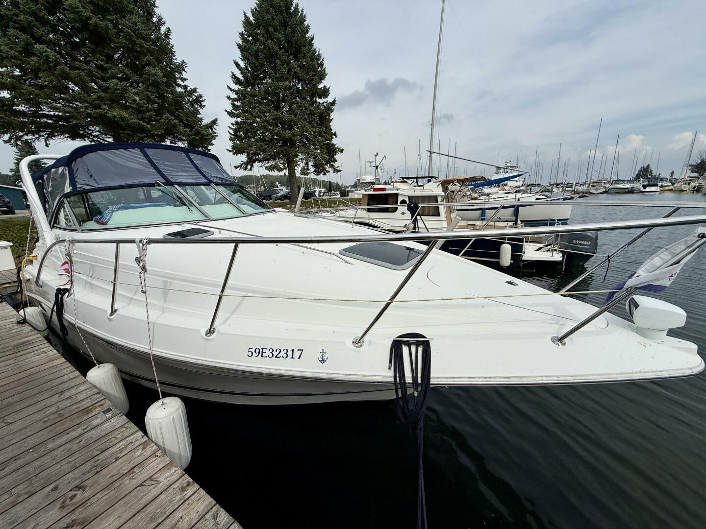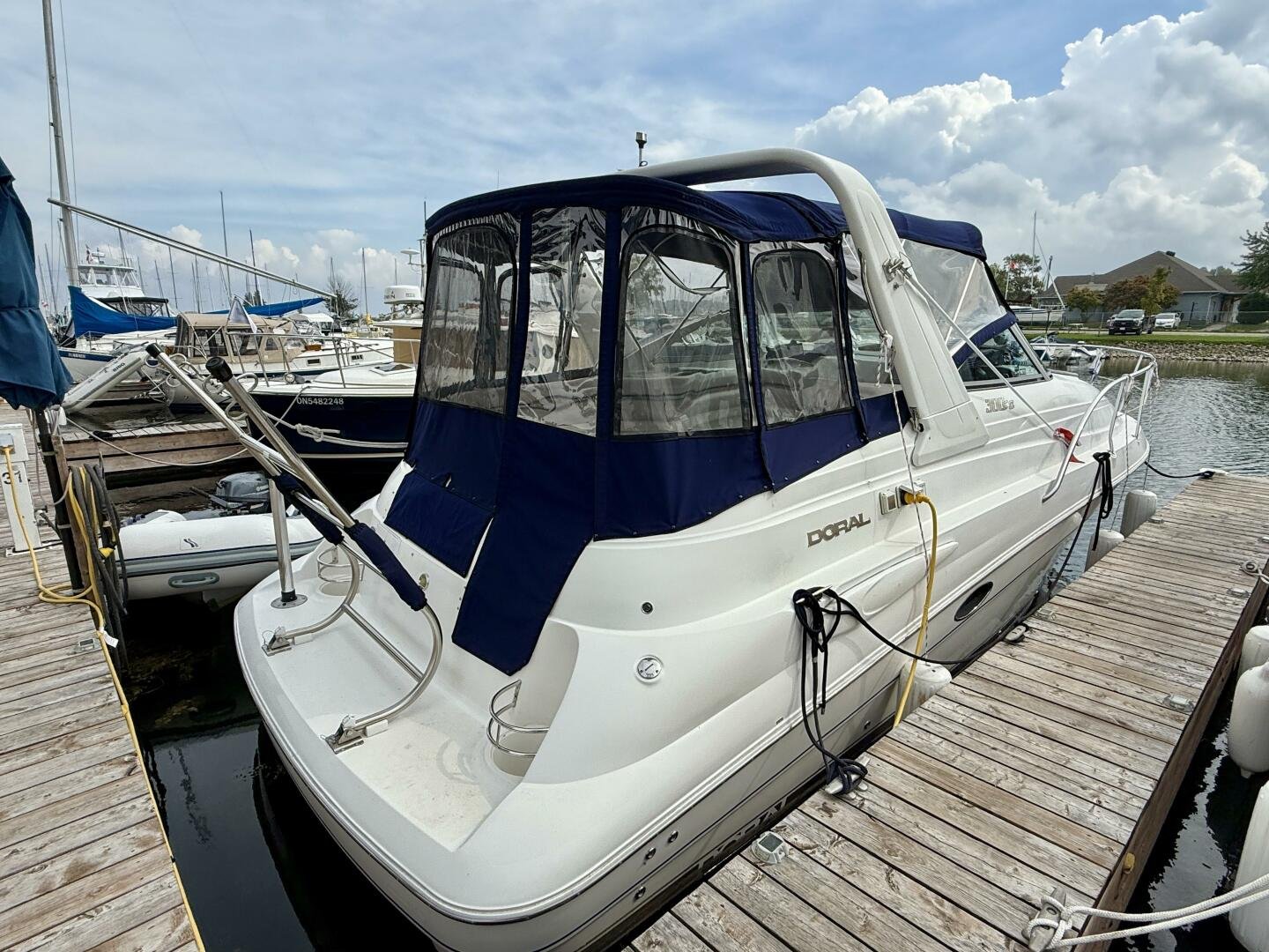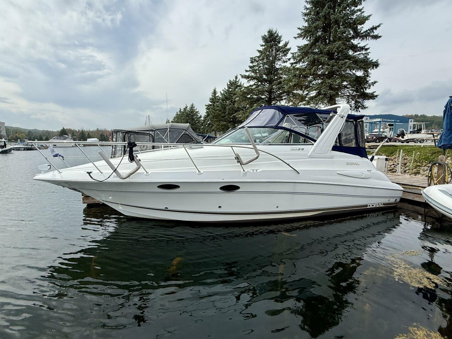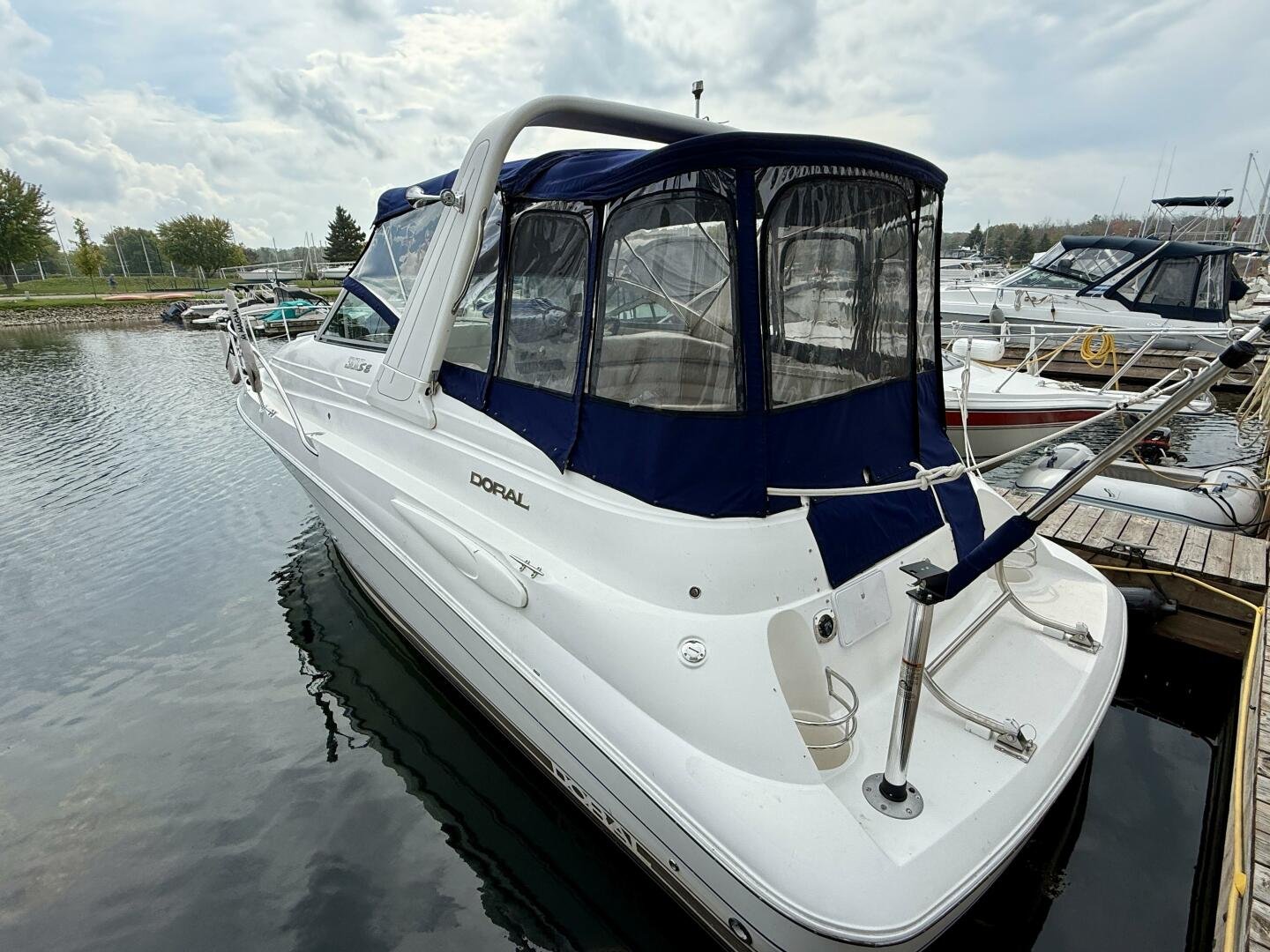 New listing September 2025! A clean two-owner Doral 300 SE with only 506 hours. This vessel has had the full canvas enclosure recently replaced and comes paired with a tri-axle aluminum trailer. The cockpit offers exceptionally large seating for a 30ft boat, with sleeping accommodations for four down below. You won't find many boats in this size range with a generator and AC/Heat, making this a great package.