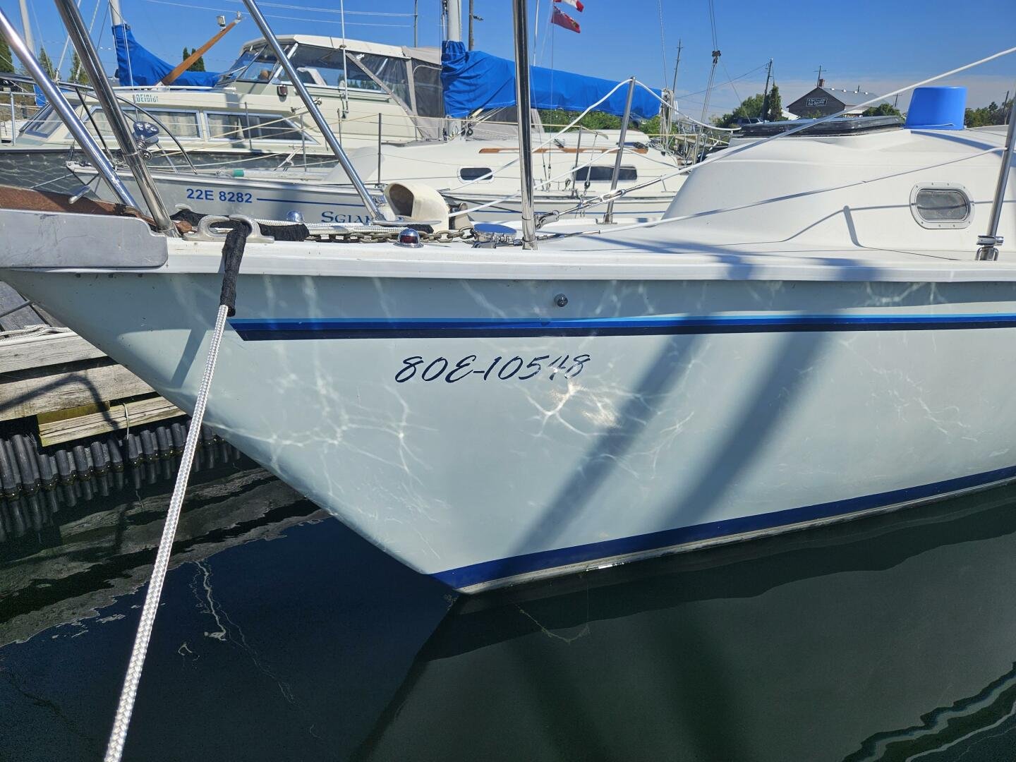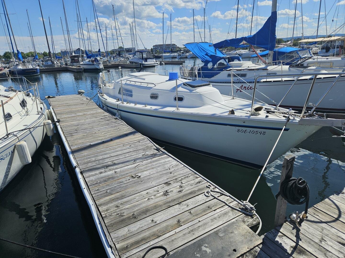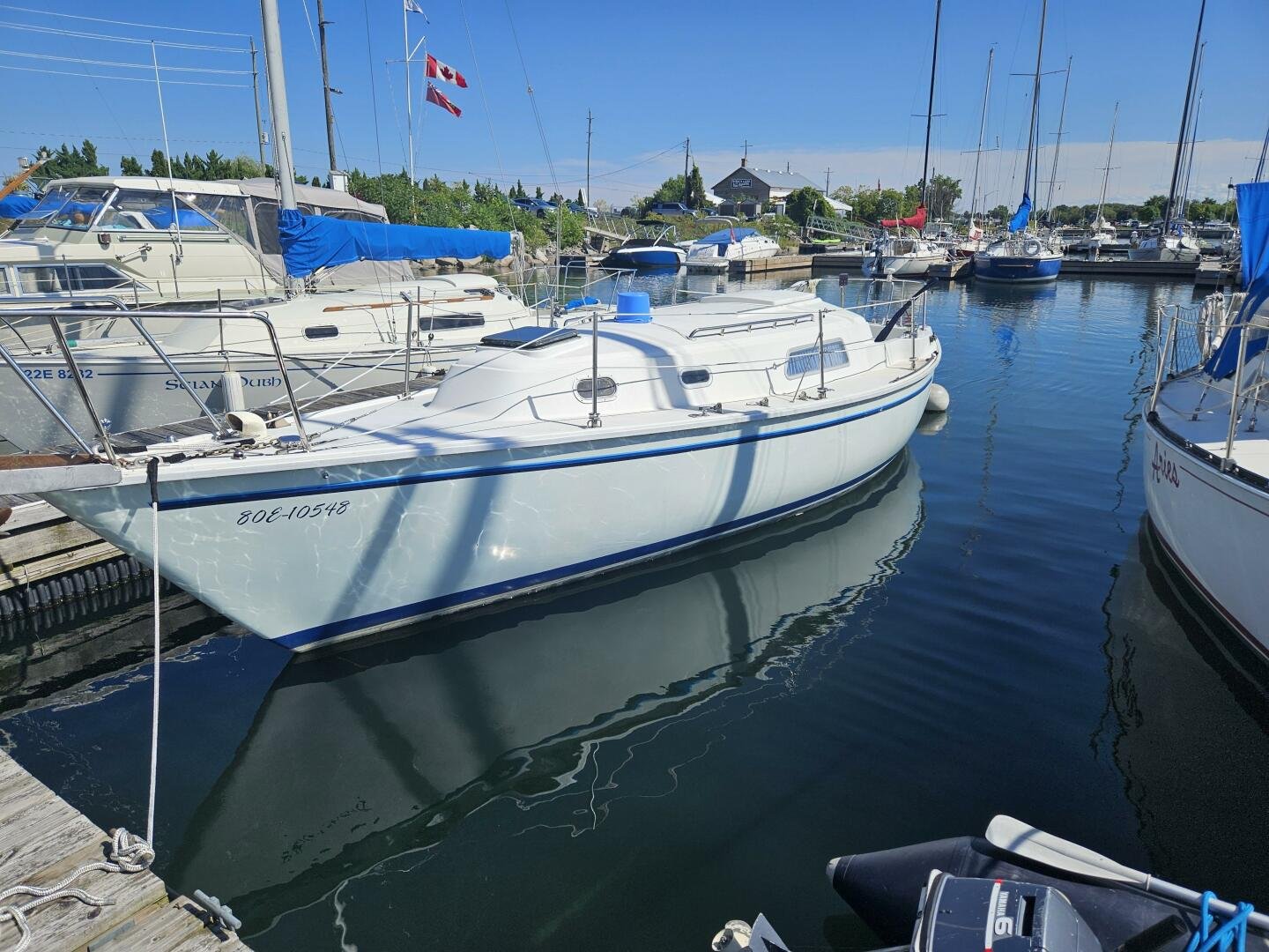 This is a safe roomy, fun to sailboat, prized for cruising and racing from the Great Lakes to the Bahamas. Boat is in great condition, topsides as well as underwater. Sleeps 6 and comes with; a Dual Axel Trailer/Cradle, Roller Furling, Tiller Steering, 12 volt Direct Current, with Auto Battery Charger, 110v AC Shore Power, New Holding Tank and Head, 30hp Gasoline Engine with Electronic Ignition and Folding Prop, Raymarine ST60 – Dept, Speed & Wind, Autohelm, GPS, Battery Monitor, VHF, Radio/Sterio with 4 Speakers, Sails – 2 Mains, 1-155, 1-130, 1-100, 1-Spinnaker with Pole, Sail Cover, 14lb Danforth Galvanized and 10lb Bruce Anchors, Cockpit BBQ with Tank, New Salon Upholstery, and New LED Lighting Throughout.
