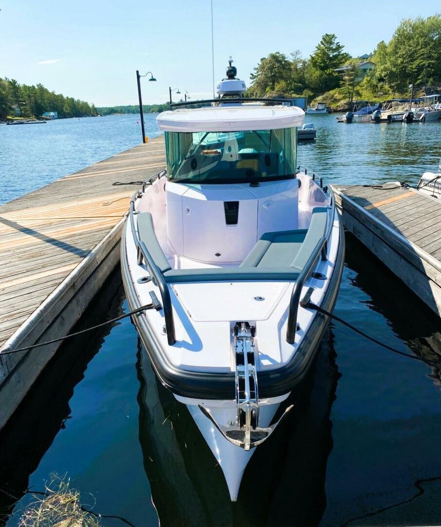 The sleek, clean, and sharp lines of the Axopar 28 AC (aft cabin) are striking— and that’s just the start. From bow to stern, this new offering is a refreshing departure from the norm.