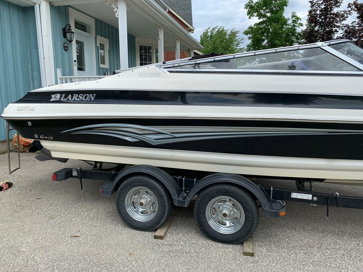In a sea of cookie-cutter bowriders, this one stands out with Larson's signature quality construction, Volvo reliability, and versatile features that punch above her weight class. Ideal for first-time buyers or seasoned skippers – tow it easily, store it simply, and own it outright. Comparable boats sell fast at this price point, especially with low hours and the trailer bundle.