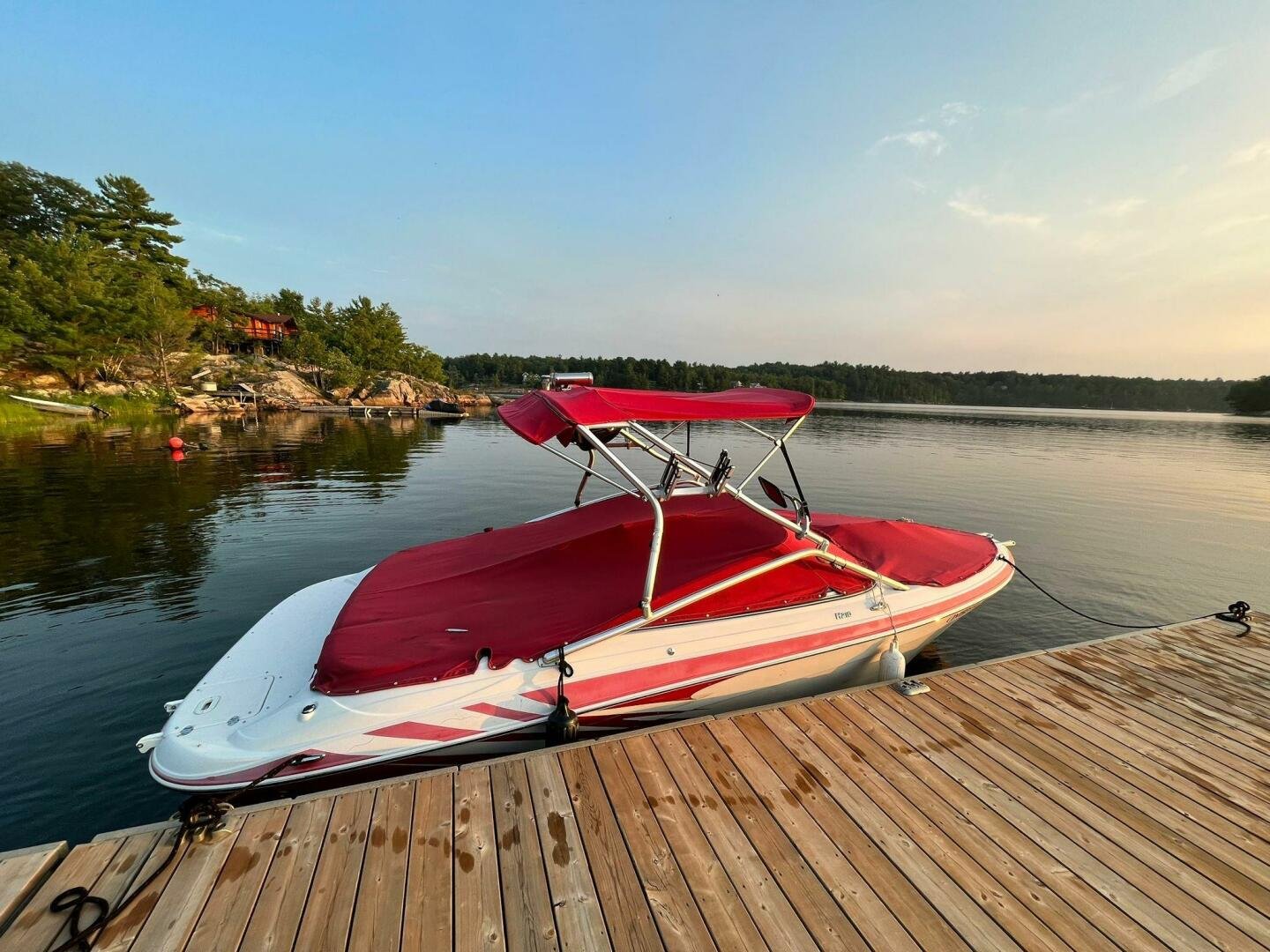 - Convenient Amenities: Includes a bimini top for shade, swim platform with ladder, and plenty of storage for gear and essentials.