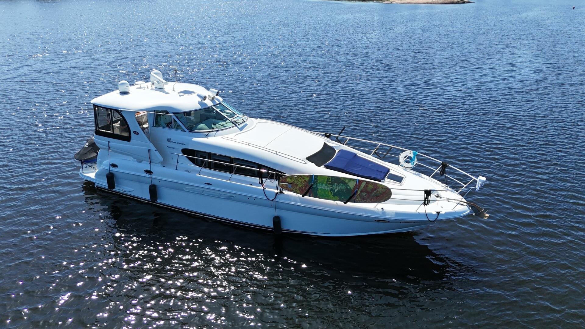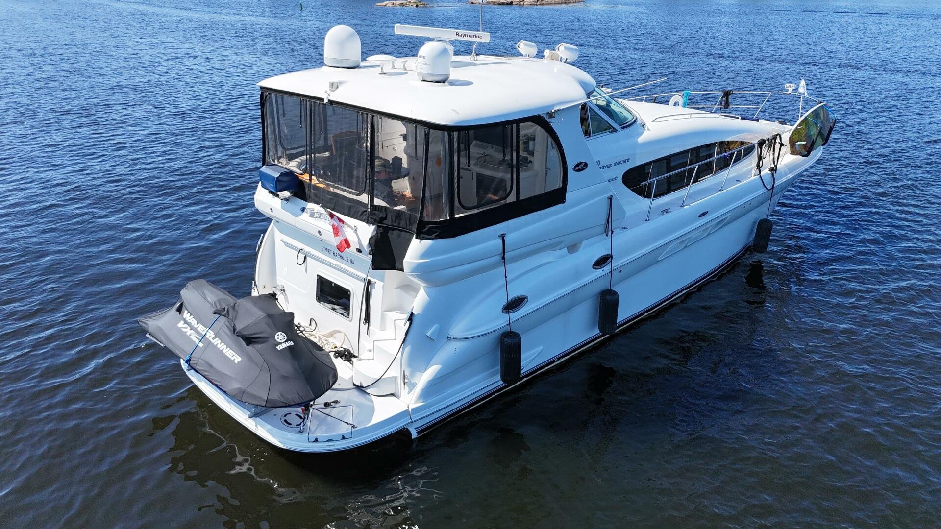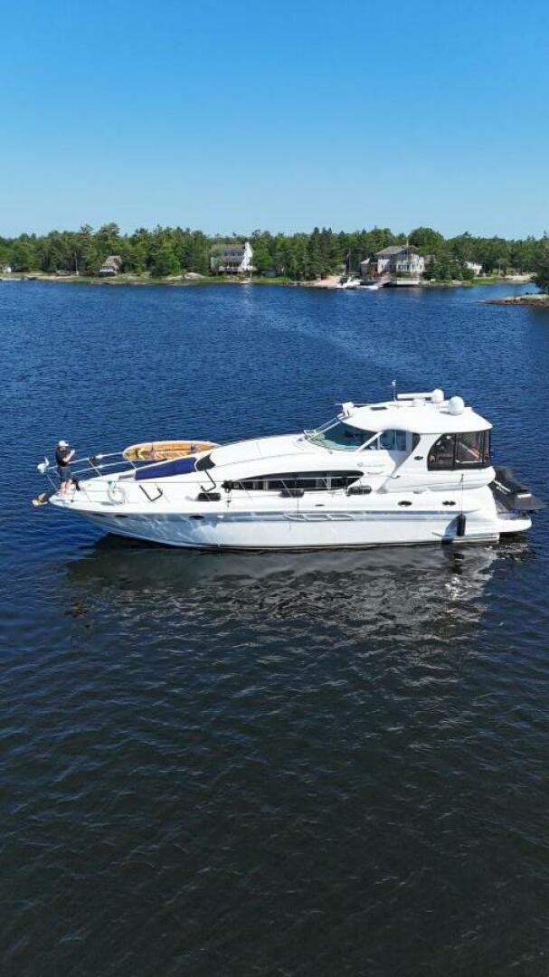 Check out this 2004 Sea Ray 480 MY sitting in the beautiful Freshwaters of Georgian Bay. This is a rare find that's loaded with Standard and Optional Features. Very clean and marina maintained. The 480 MY encompasses all that you expect from Sea Ray DNA, quality, performance, and a 3 stateroom layout that is second to none. Reliable Cummins QSM-11 Diesel motors are a perfect fit propelling this yacht like a runabout. The Optional Bow Thruster will make docking this yacht a breeze. The Optional Hydraulic Swim Platform will allow you to bring your favorite water toy. Keep comfortable in the enclosed cockpit and helm area with Optional Air Conditioning and Heat.