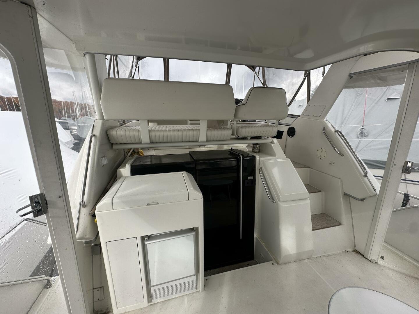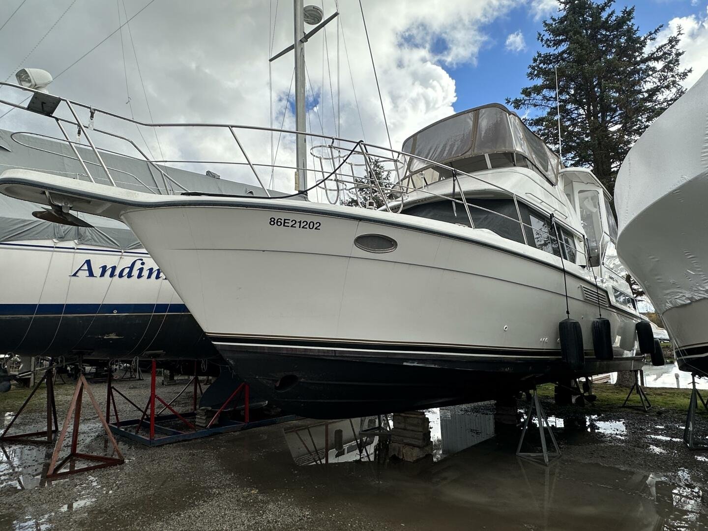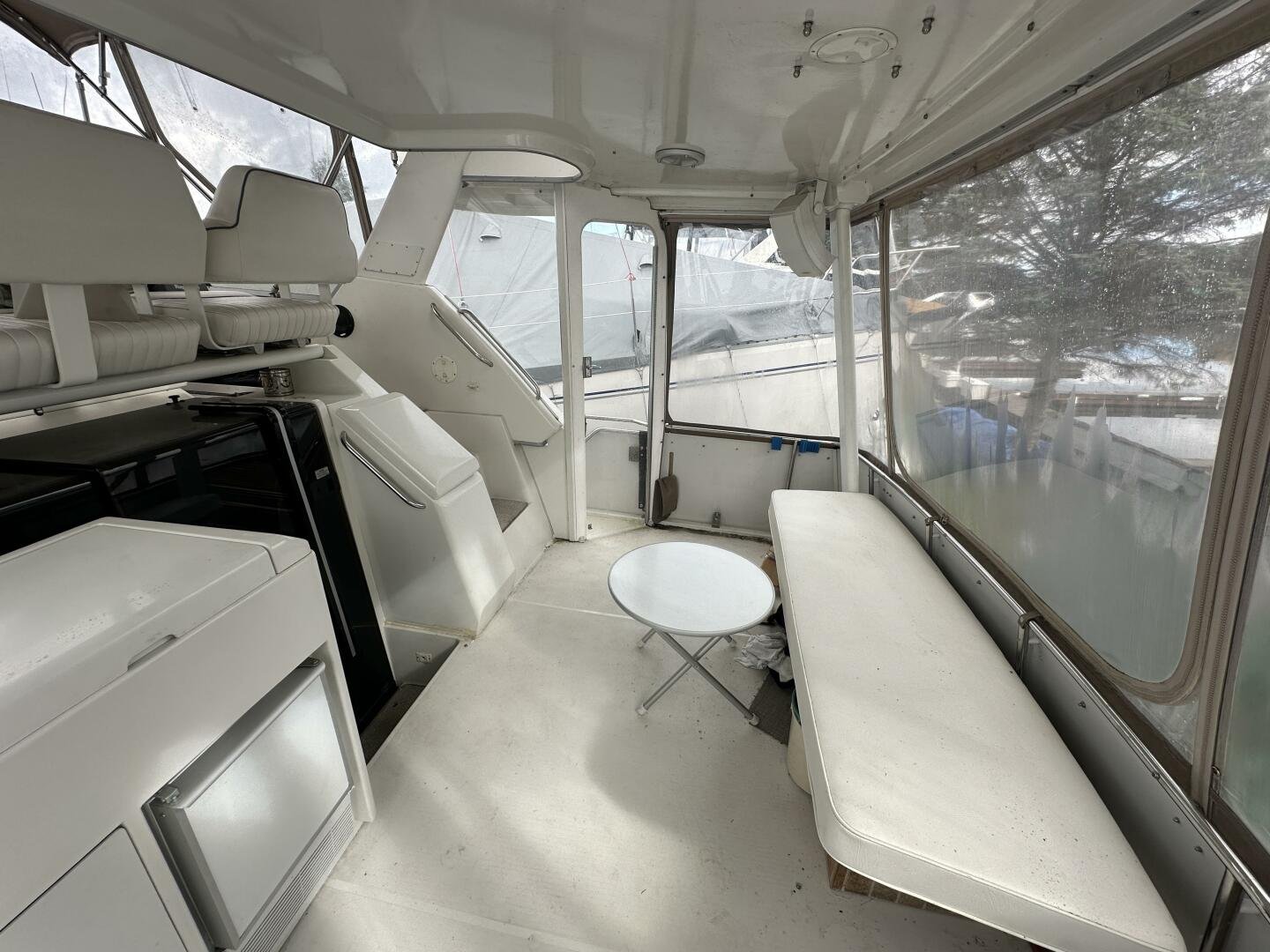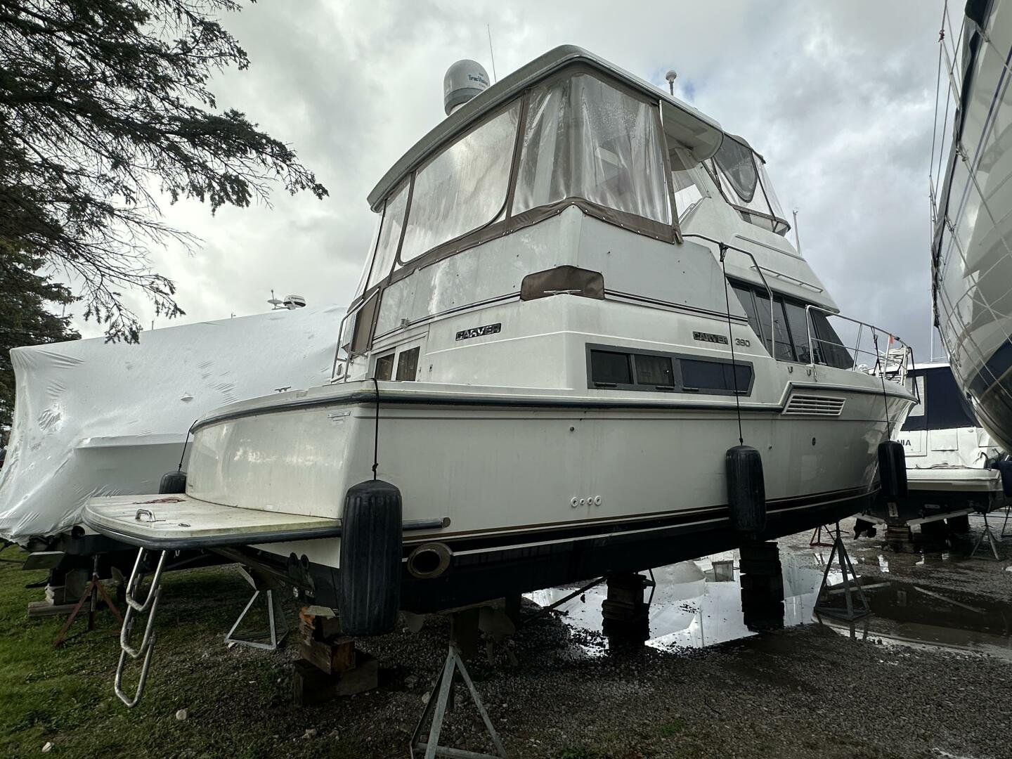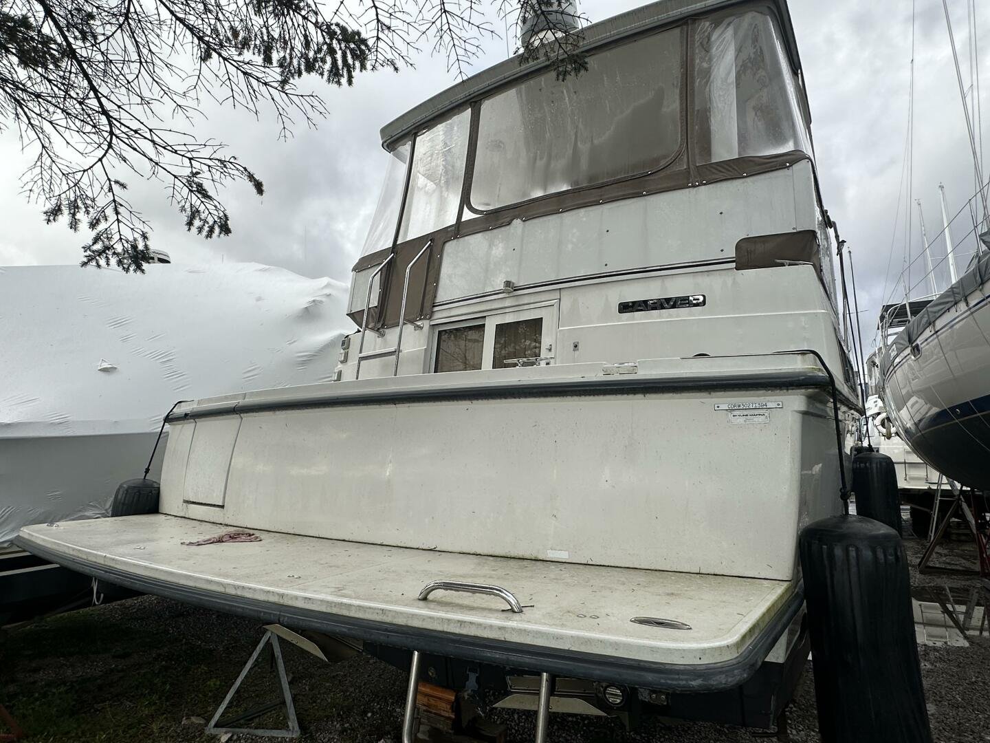 This Carver 390 CPMY has been owned by the current owner for over 15 years and has spent its time cruising the freshwater of Georgian Bay. The 390 CPMY is a desirable model with a large platform and aft cabin entrance through the cockpit. The aft area is fully enclosed letting you enjoy the space in all weather conditions.