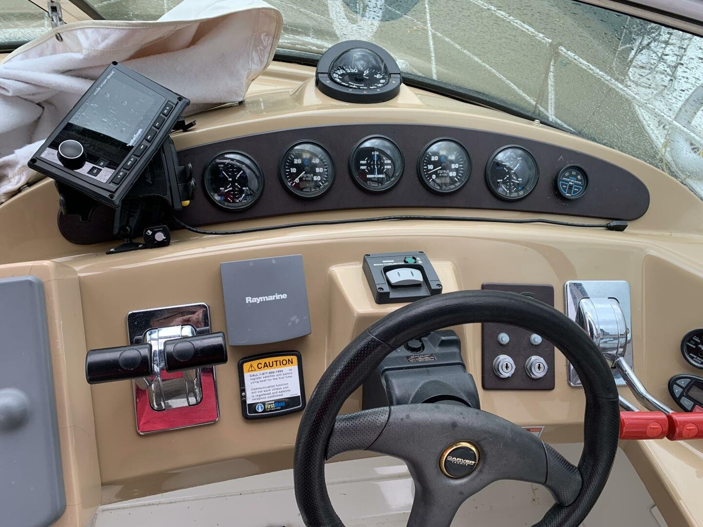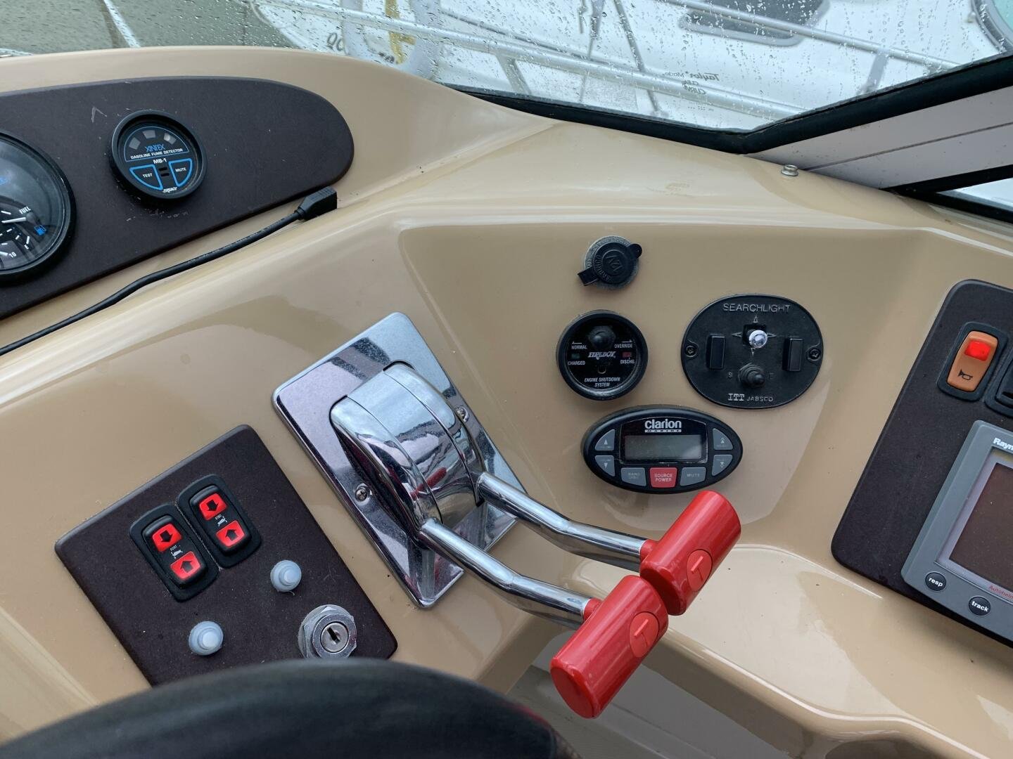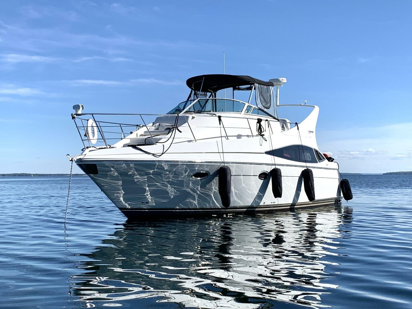This freshwater boat is clean and ready to go for summer 2025, with a 2023 survey available! The Carver 360 Mariner has an extremely desirable layout. With a large extended swim platform (with a swivel carrier rack), entering through the starboard transom door you are met with an open cockpit, and large molded steps on both sides to the bridge. The bridge is fully enclosed and provides comfortable seating for up to 10 guests. You enter the main cabin through sliding doors and are met with a large couch to port (pull-out), and a dinette with seating for four to starboard that converts to an additional sleeping area. The galley is well appointed with a sink, twin electric burners, microwave, and fridge/freezer. There is a large head and separate shower with a separate entrance from the main salon, as well as an en-suite entrance. The main cabin has a center-line island bed with twin hanging lockers and ample storage.