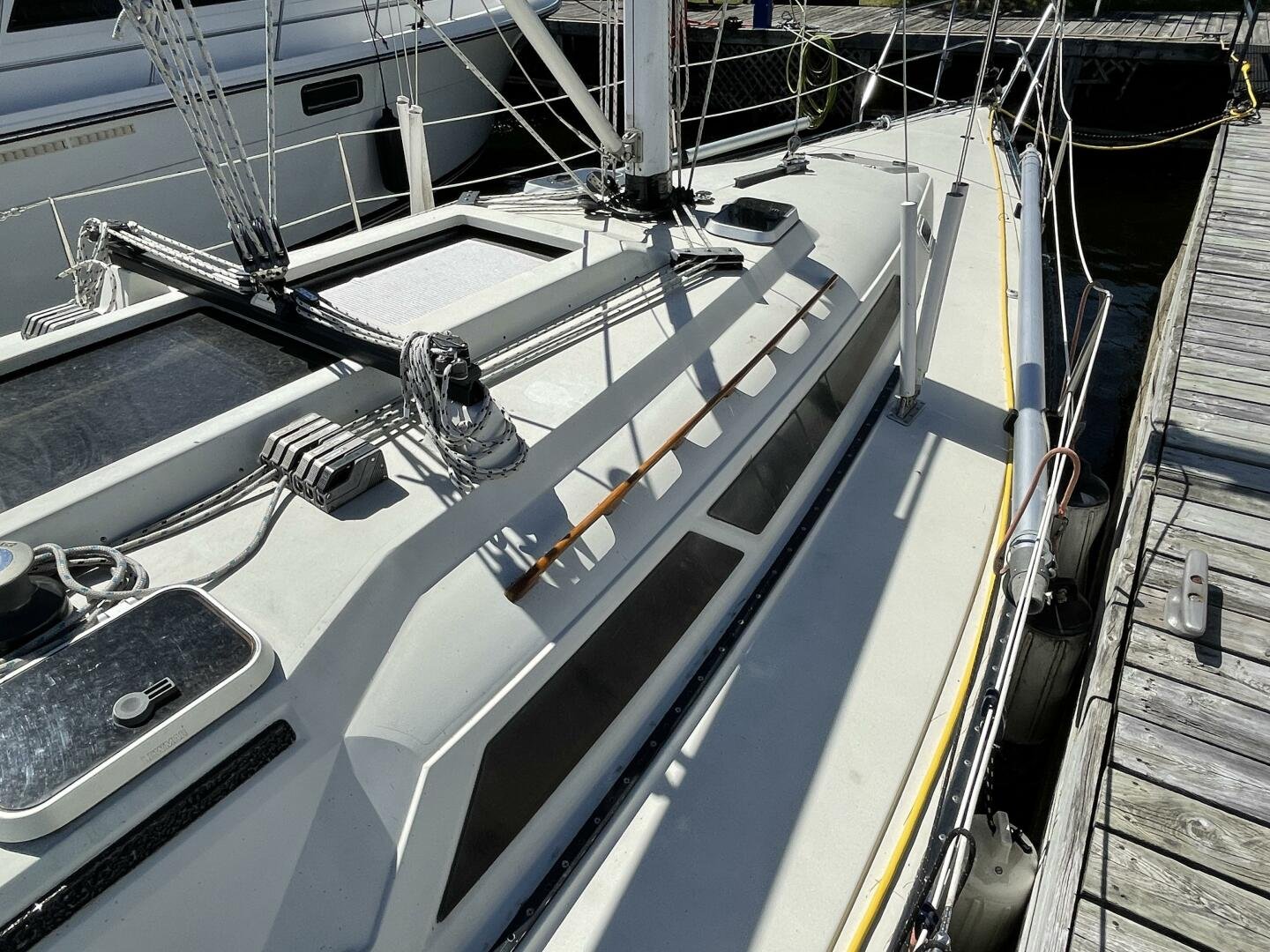 Designed with both racing capabilities and cruising comfort in mind, this boat has been lovingly maintained upgraded and sailed by the current owner. It features an In-Boom mainsail furling system along with a Harken Head Sail furling unit. Recent enhancements include B&G instruments, Raymnarine autopilot and Precision Sails, ensuring both reliability and ease of use on the water. With two Jibs and two spinakers complementing the mainsail, you're equipped for thrilling adventure's on the water.