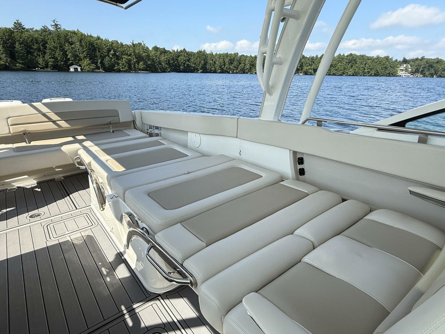 This Boston Whaler 320 Vantage is clean, low hour, and lift. You will be hard pressed to find another one in this shape.