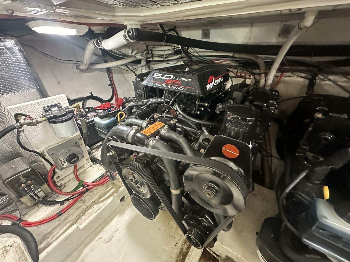 At the helm, all the electronics have been updated. Featuring a Garmin 7610XSV plotter, Garmin autopilot & electronic compass, VHF. At the controls, the shift cables have also been recently replaced.