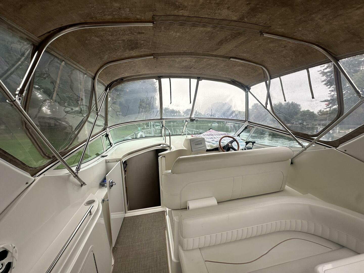 The 3075 Cruisers has a very desirable layout, with a large platform, spacious U-shaped seating that converts to a sunbed, a large helm bench seat, and a center line walkthrough.