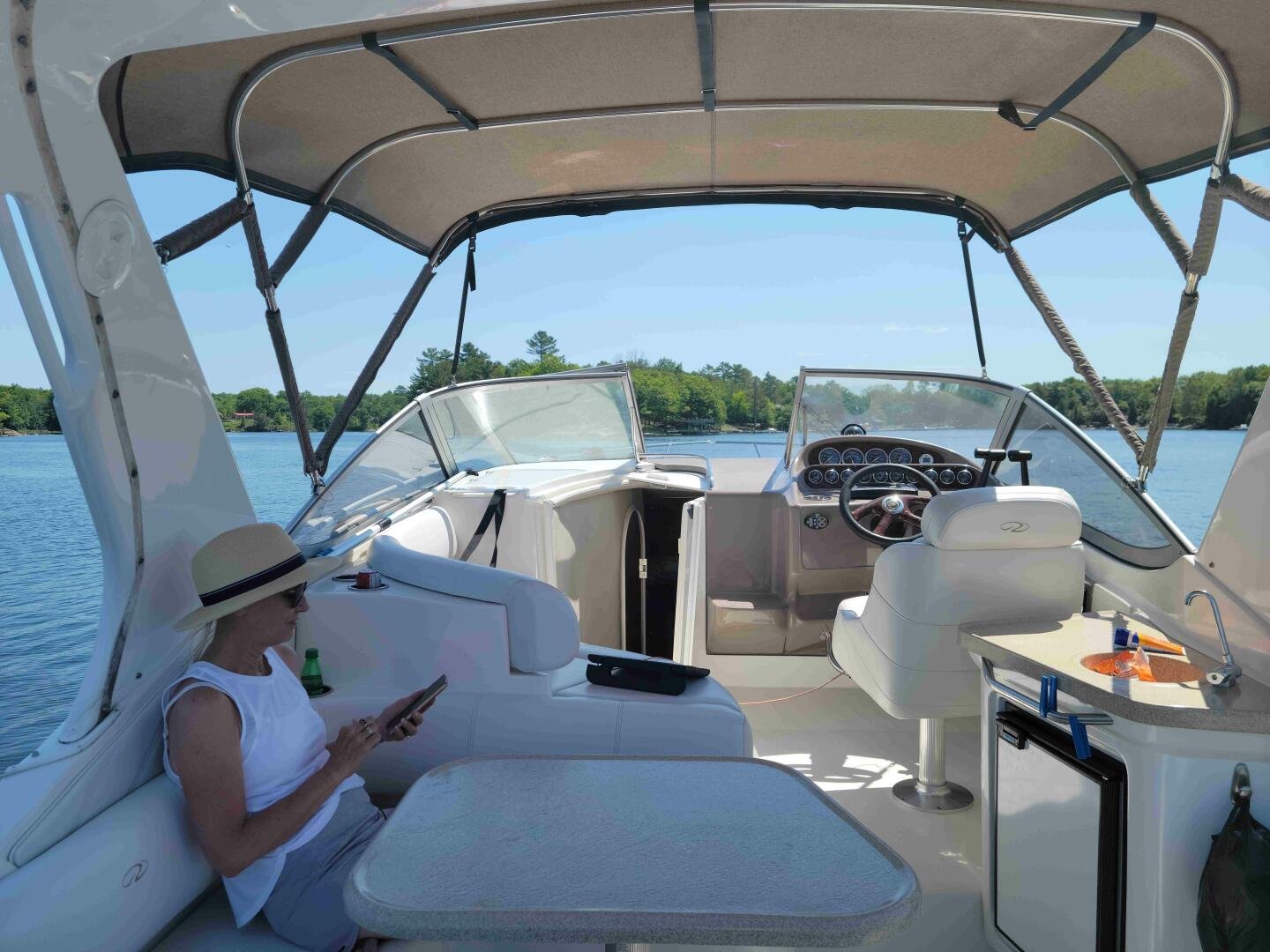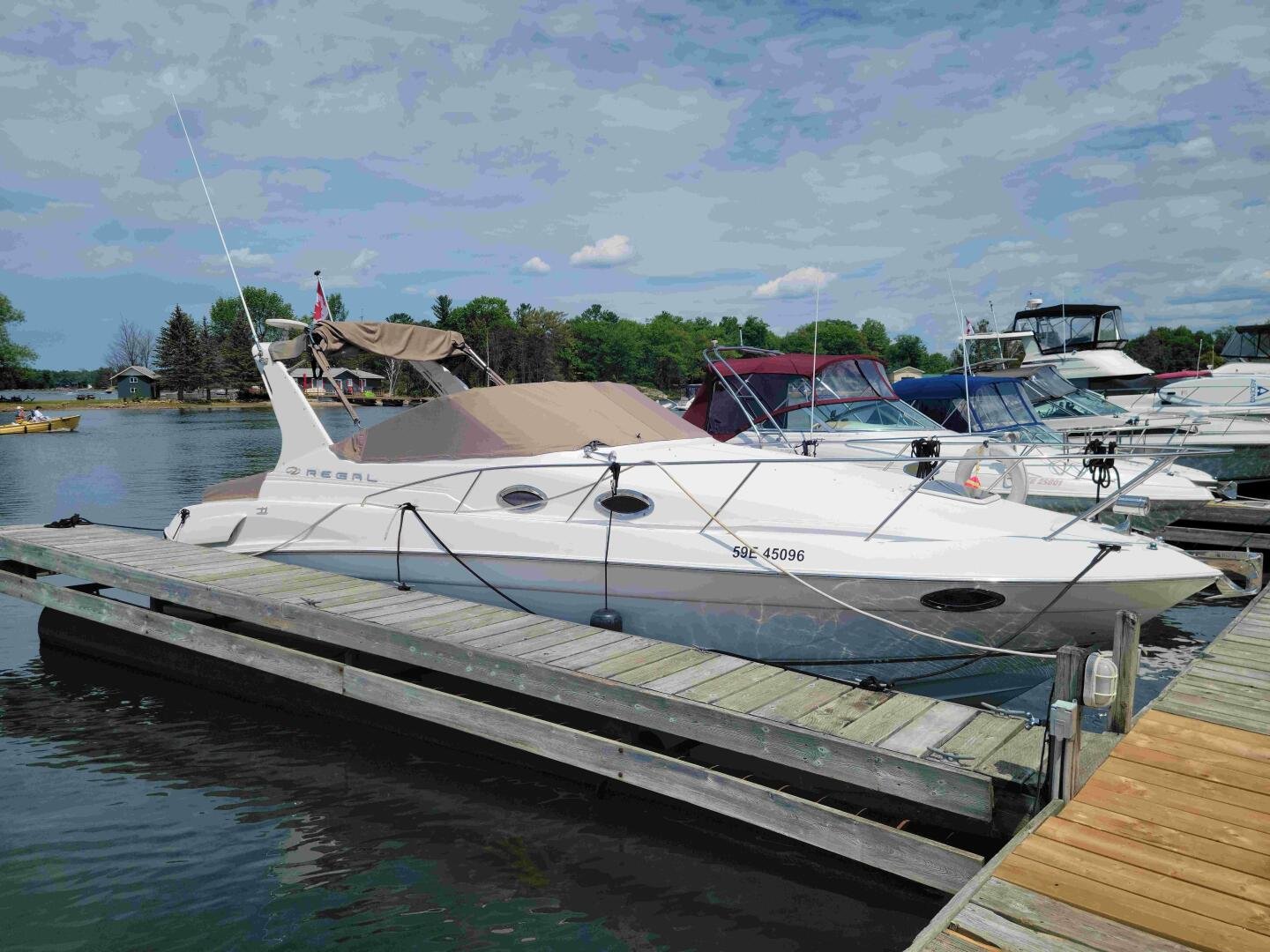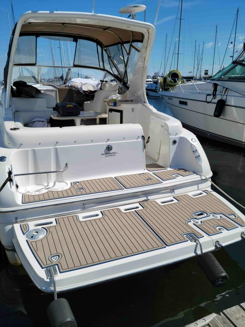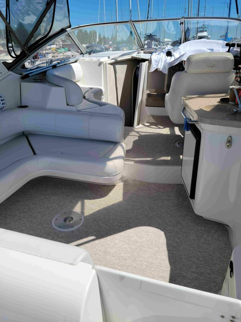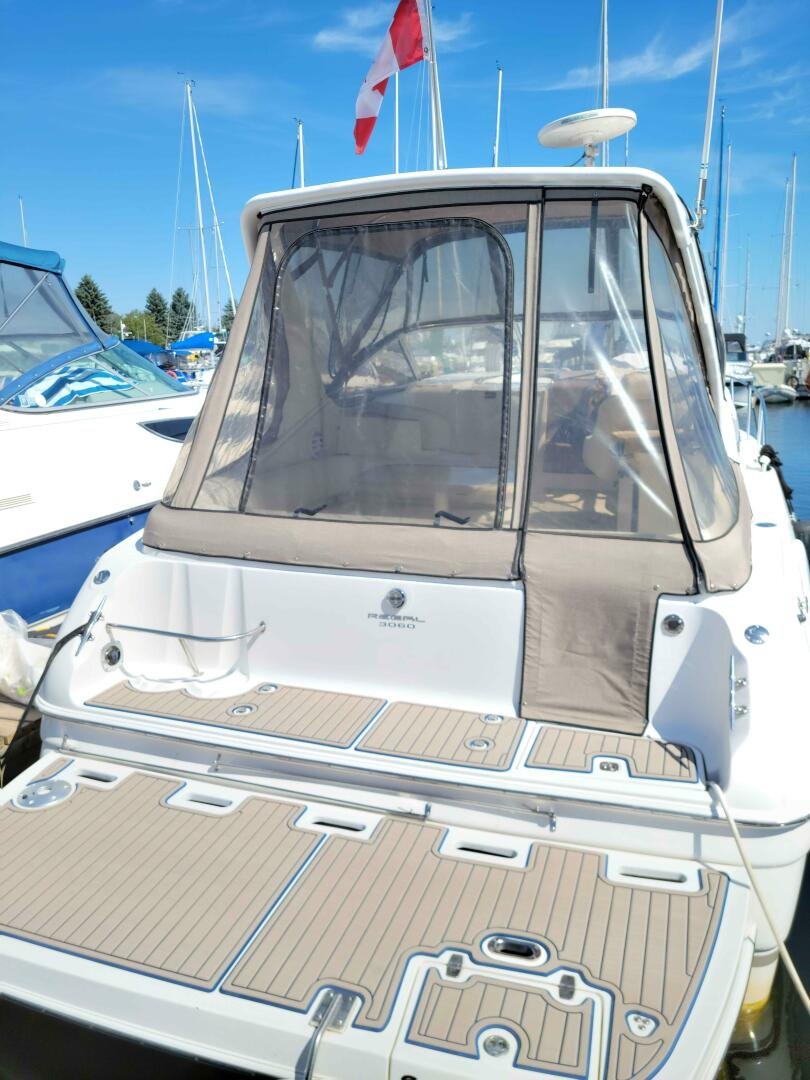 The 2003 Regal 3060 is a nicely laid out family cruiser, perfect for weekending on the bay. Only 500 hours on a pair of duo-prop Volvo Penta 5.0L. A large extended swim platform with new sea-deck, and full enclosure canvas gives you plenty of space. The main cockpit has plenty of seating, a wet bar, a fridge, and a centre bow walk-through. The helm has upgraded Standard Horizon GPS. Down below you will find the convertible aft bed/couch, wet head with vaccu-flush toilet, well-appointed galley, dinette, and v-birth.