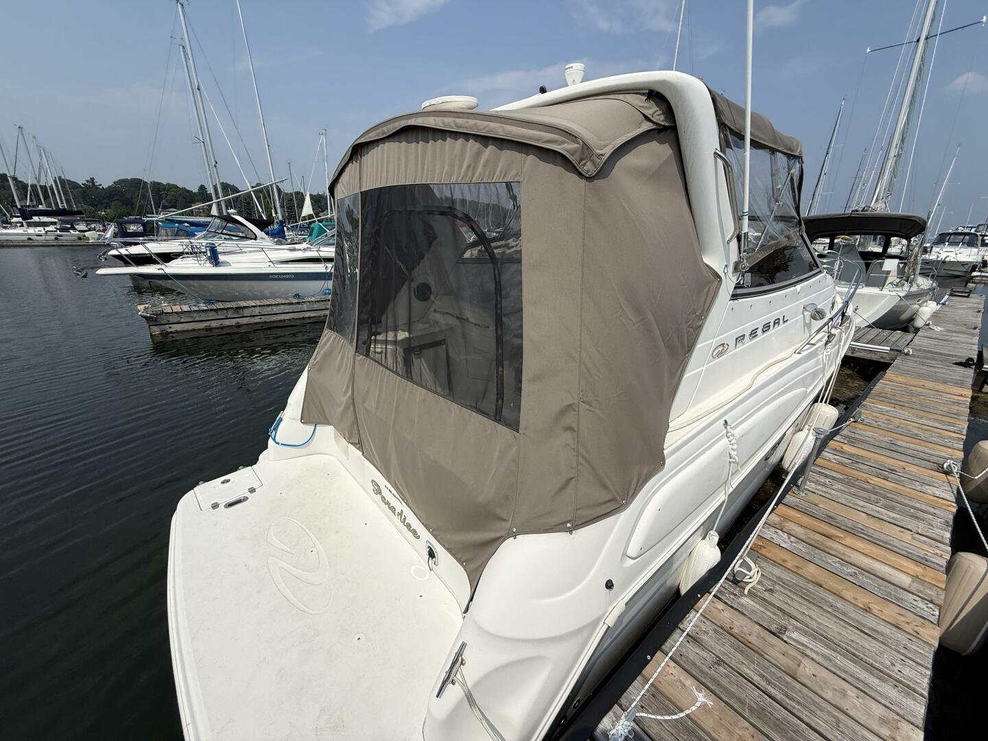 New listing for August 2025. A 2003 Regal 2860 with low hours, and an oversized tri-axle trailer!