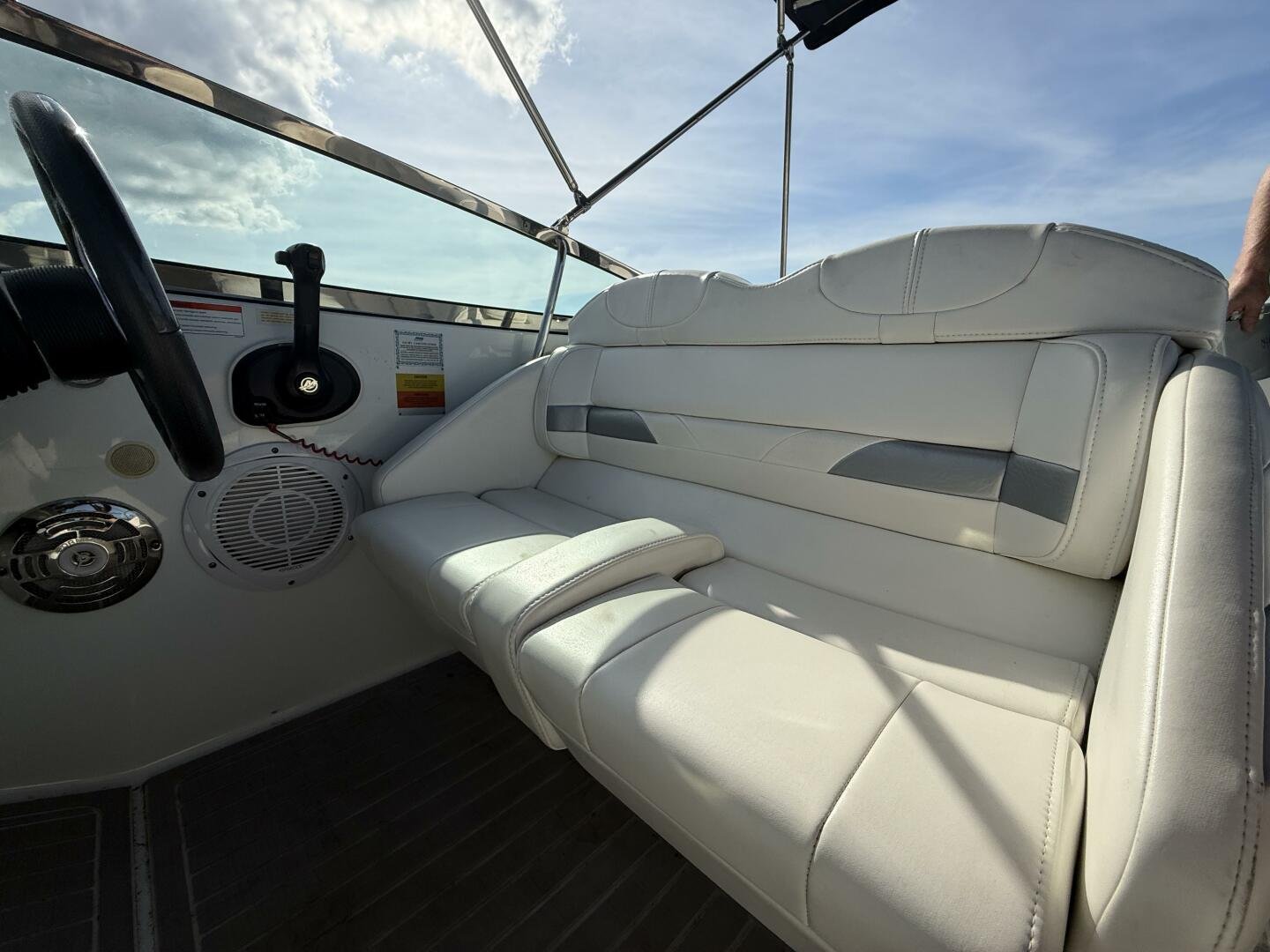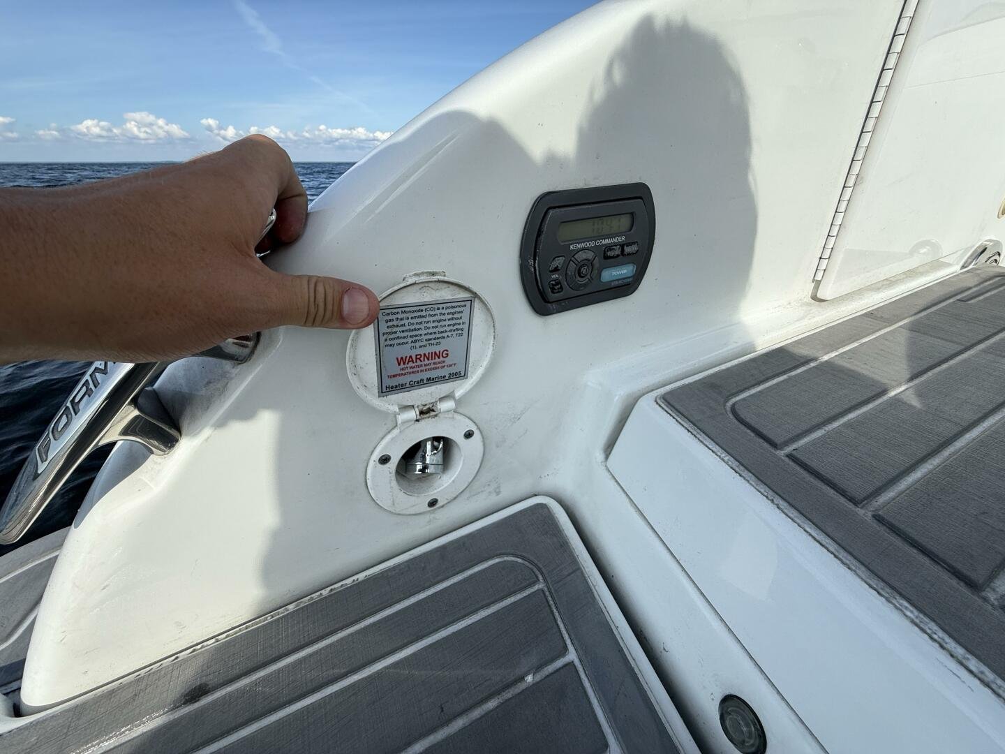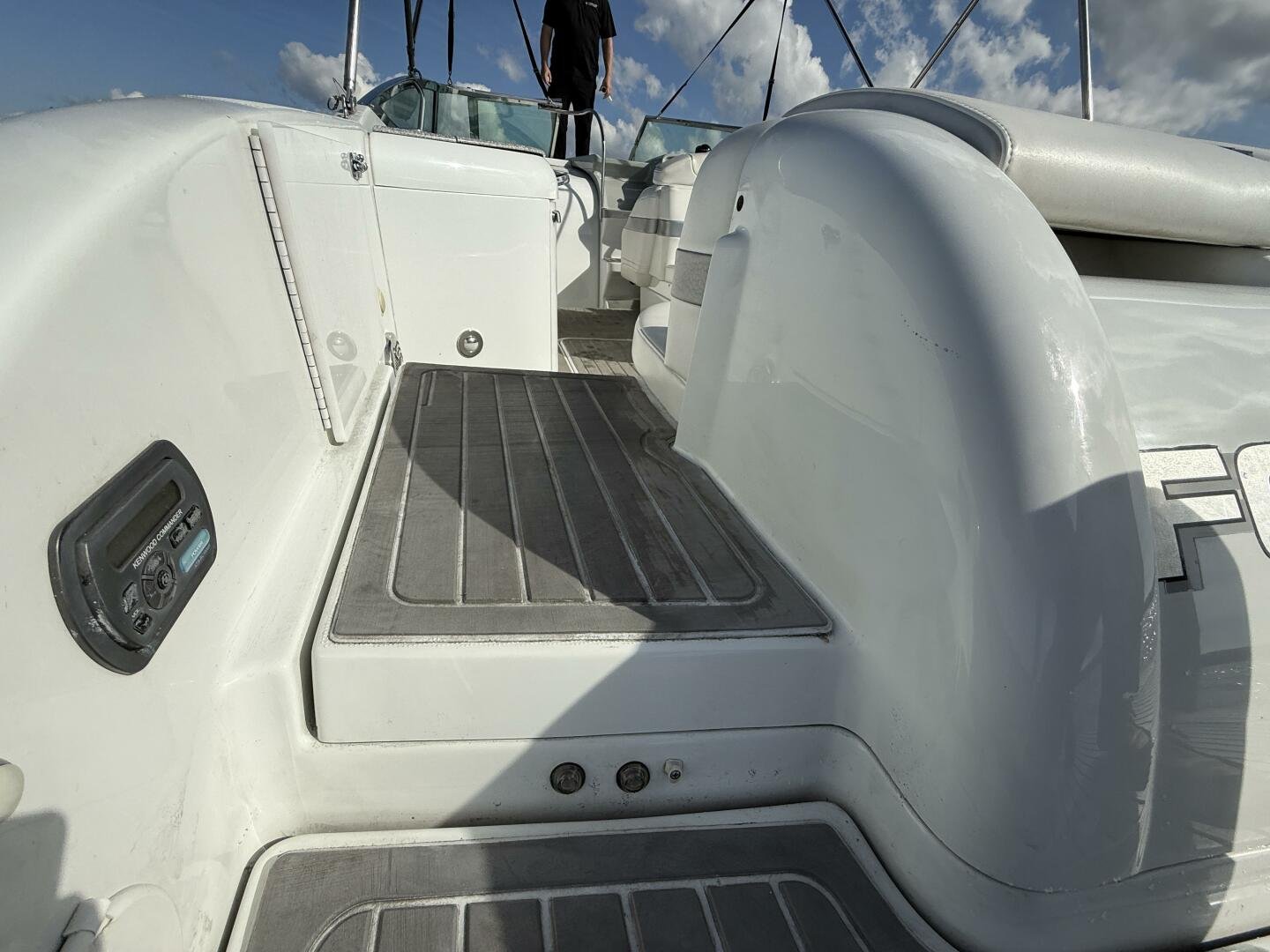 Kenwood stereo with controls at helm & transom