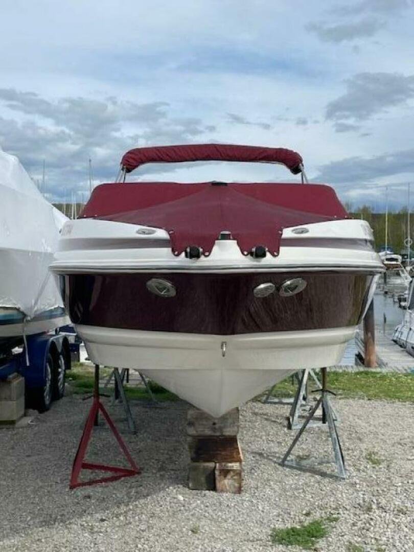 - Bimini Top: Burgundy Bimini top provides ample shade and comfort.