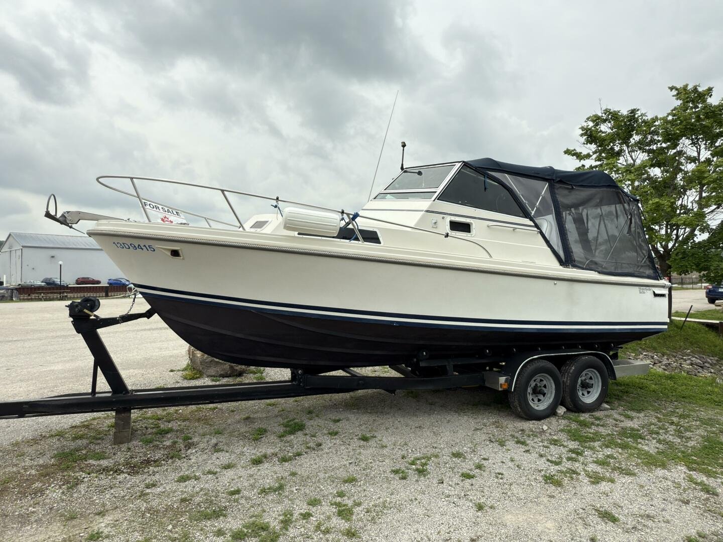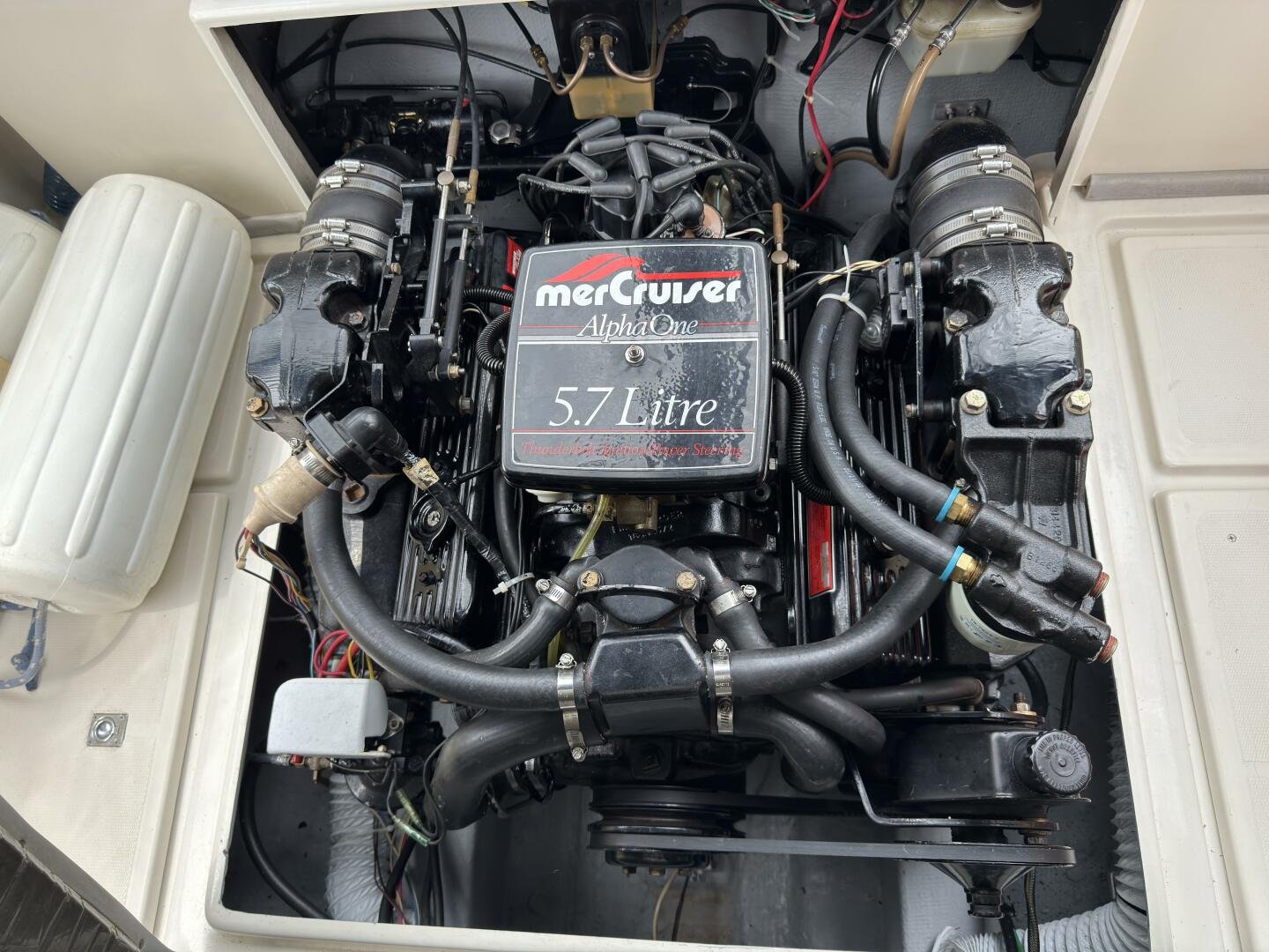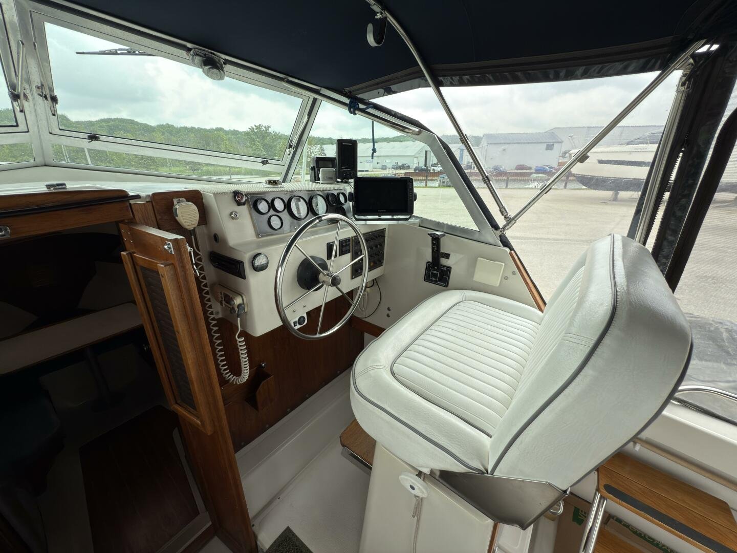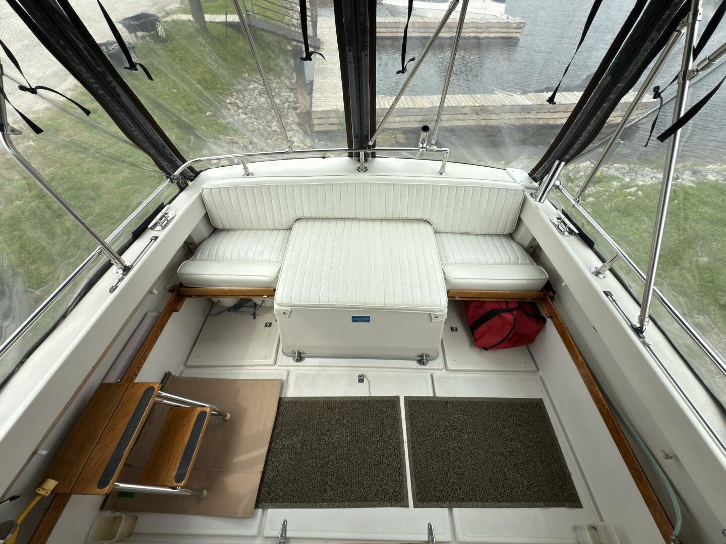 This particular boat has been lovingly maintained and it shows — the gelcoat, canvas, upholstery, and overall condition present very well inside and out.