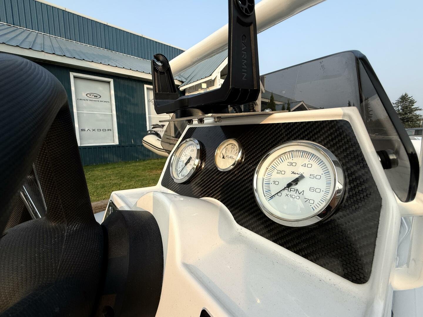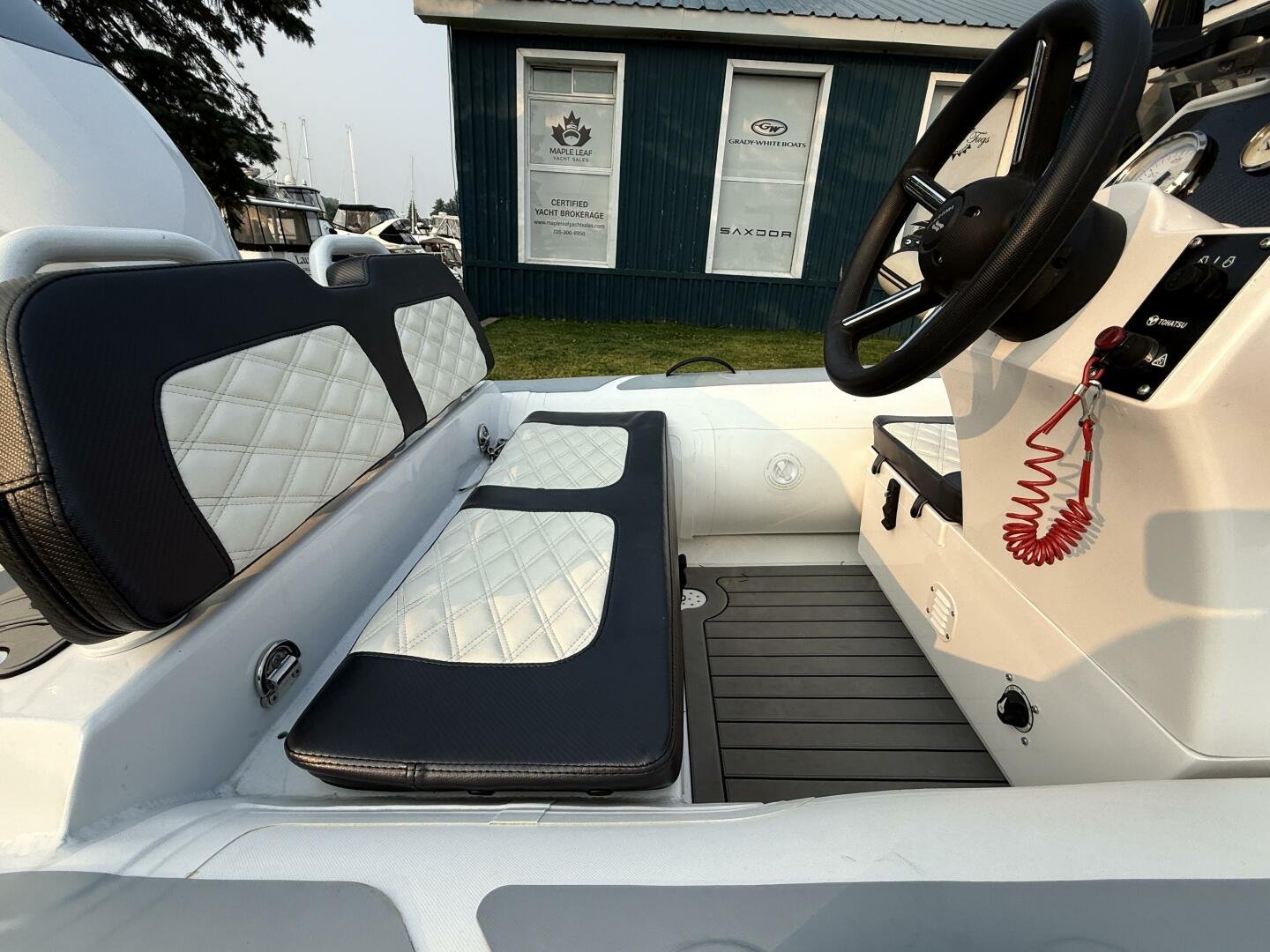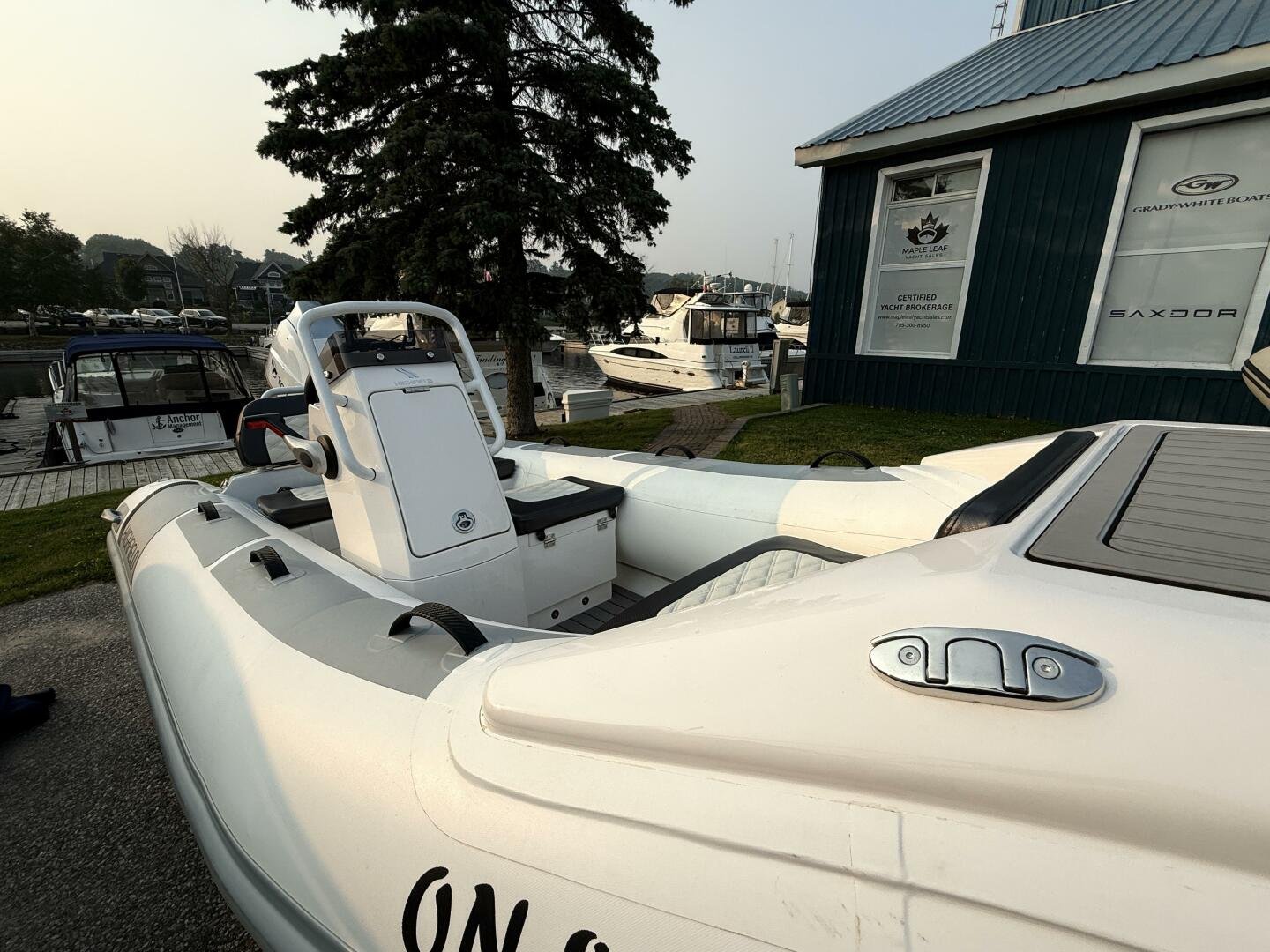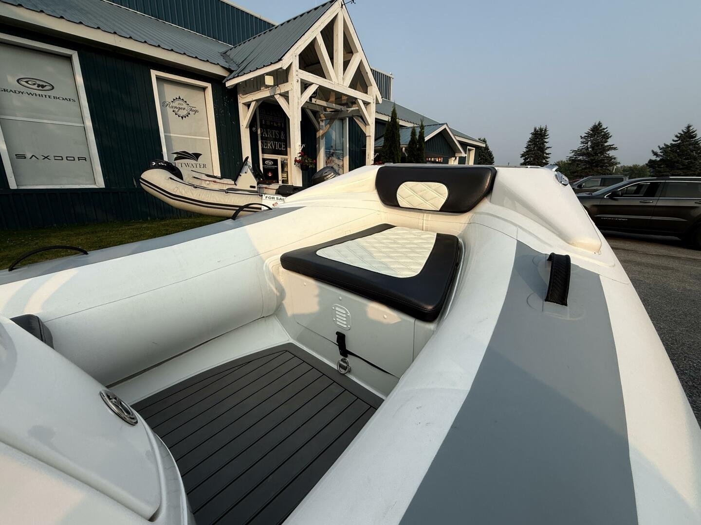 A clean tender on the trailer and ready for immediate delivery. Equipped with a 50hp Tohatsu, and an added Garmin Echomap Chartplotter.