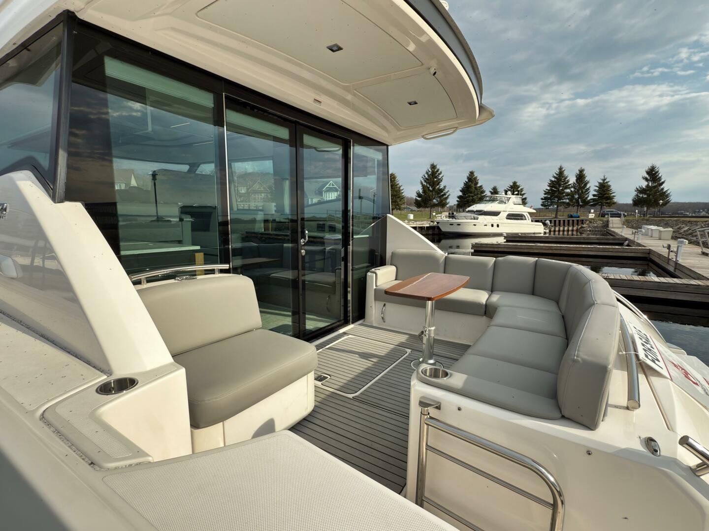 Immaculately maintained 2019 Tiara C49 Coupe offering sophisticated coastal cruising in supreme comfort. This vessel seamlessly combines luxurious accommodations with exceptional performance, powered by twin Volvo IPS drives. The spacious salon features panoramic windows and seamless indoor/outdoor living with a retractable sunroof and opening glass walls. Below deck, find three well-appointed staterooms, including a full-beam master suite. The gourmet galley and entertainment spaces make entertaining a pleasure.