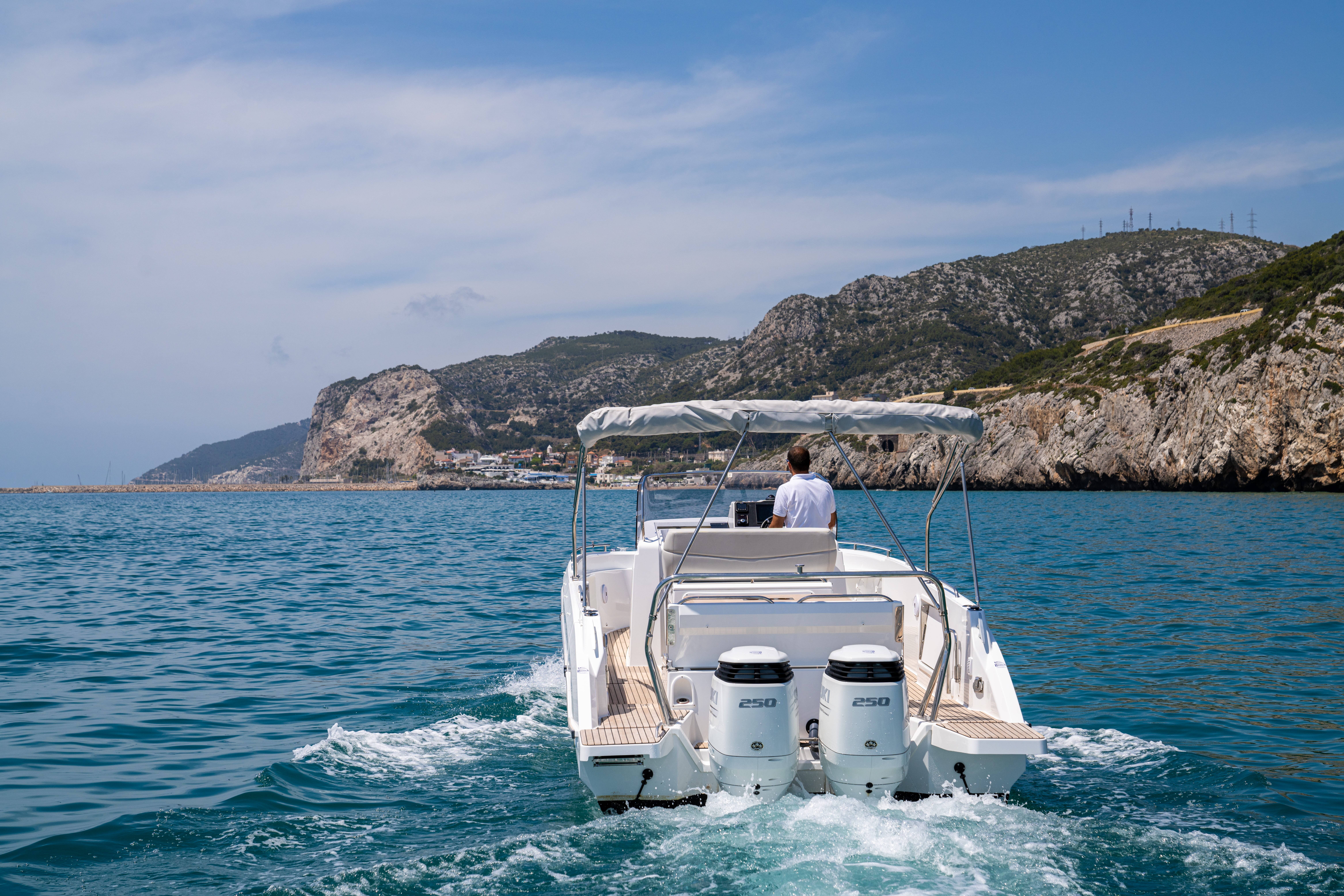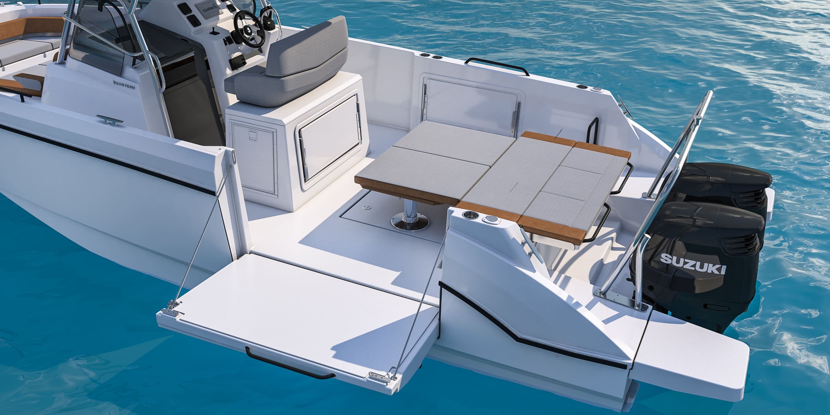 Functional and ergonomic, the Flyer 9 SPACEdeck displays impressive modularity, fulfilling the expectations of anyone who enjoys boating, whether it is for sunbathing, water sports with friends, sharing a meal with family, or fishing.