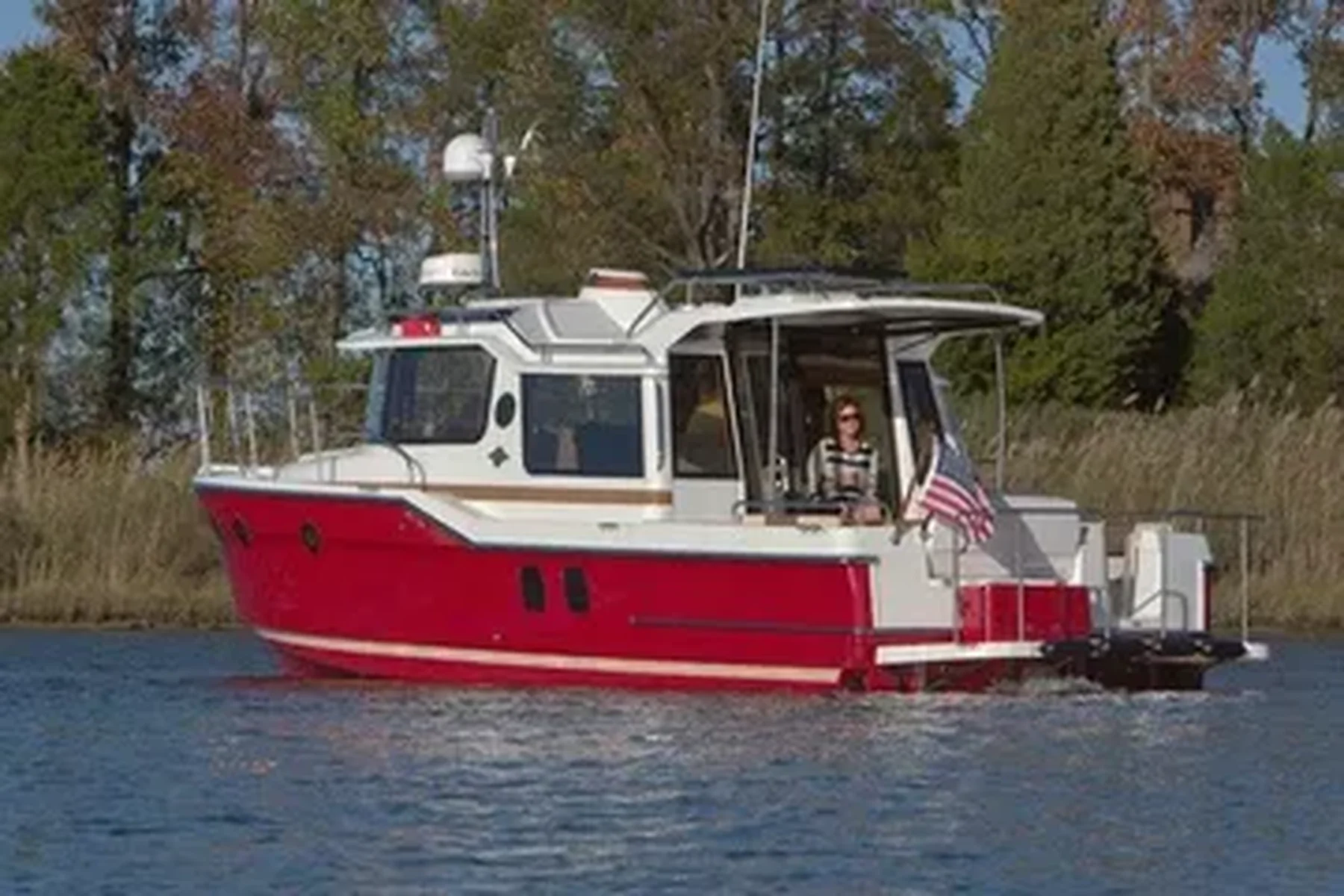 The Ranger Tug R-29 S accommodates up to six adults on three separate berths, including the forward island berth with en-suite head. The R-29 S is powered by a fuel efficient 320 HP Volvo Inboard Diesel engine that is located completely outside of the cabin for quiet cruising. Standard stern and bow thrusters make docking exceptionally easy.